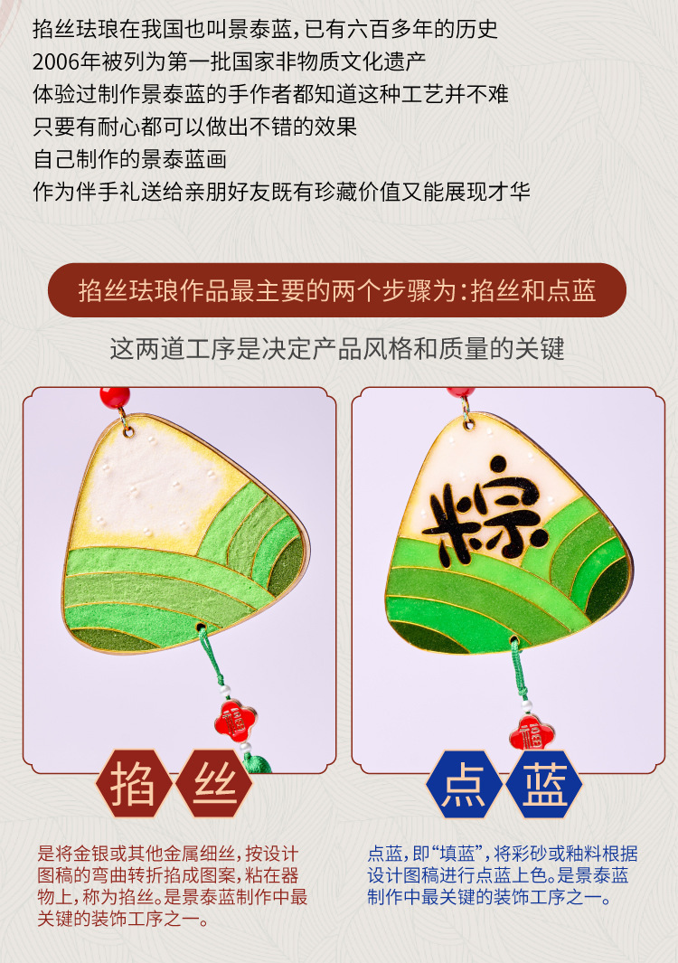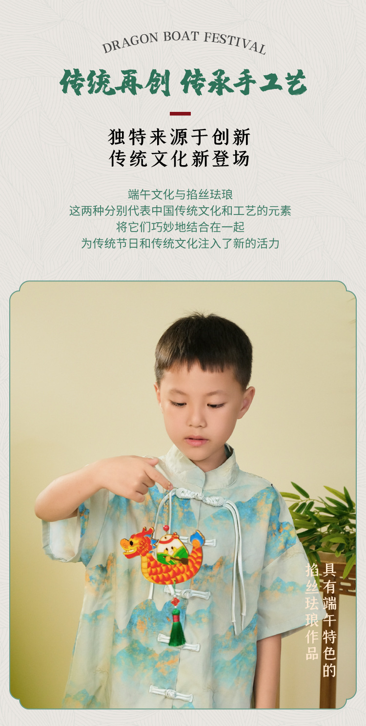 端午节礼物手工diy景泰蓝掐丝珐琅挂饰粽子龙舟儿童材料包幼儿园