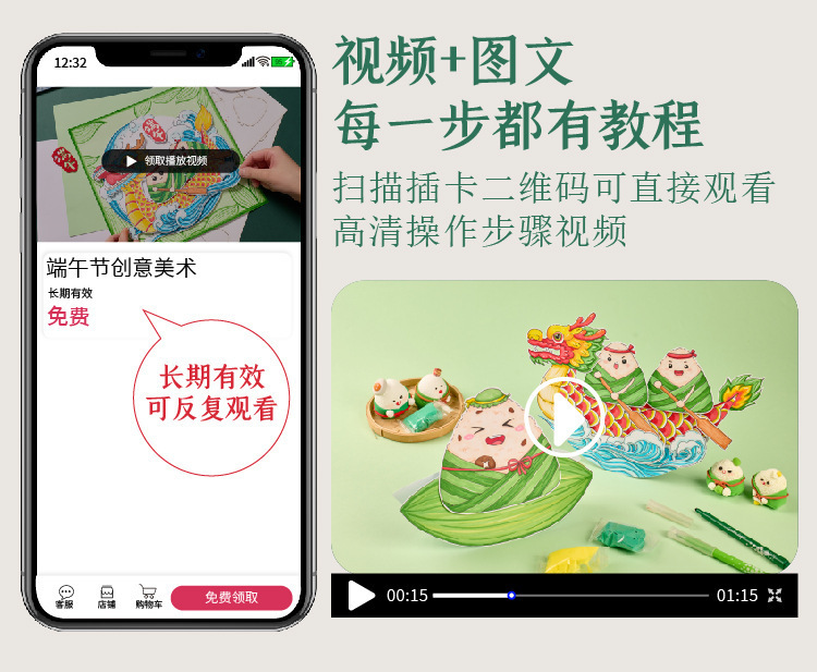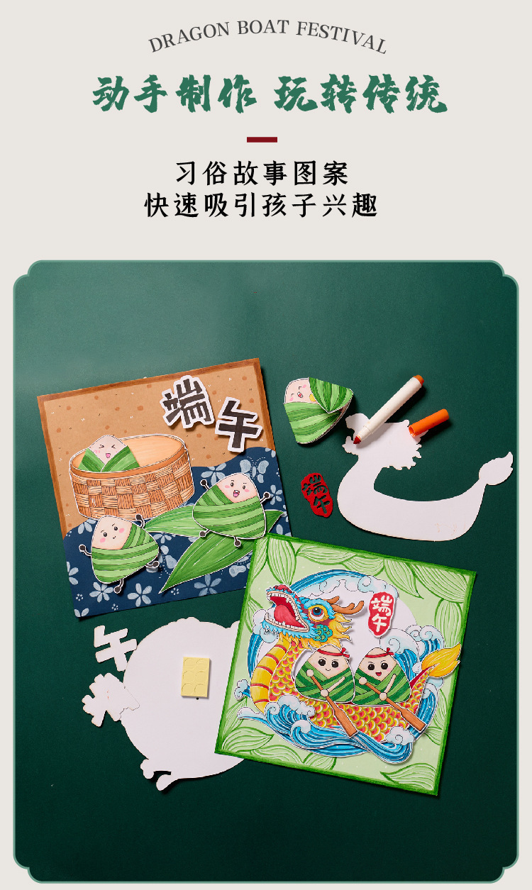 端午节礼物手工diy端午创意美术儿童制作材料幼儿园涂鸦龙舟粽子