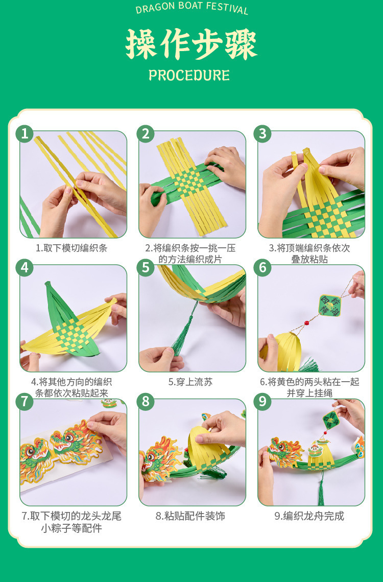 端午节礼物手工diy编织龙舟挂饰儿童制作材料幼儿园环创活动装饰