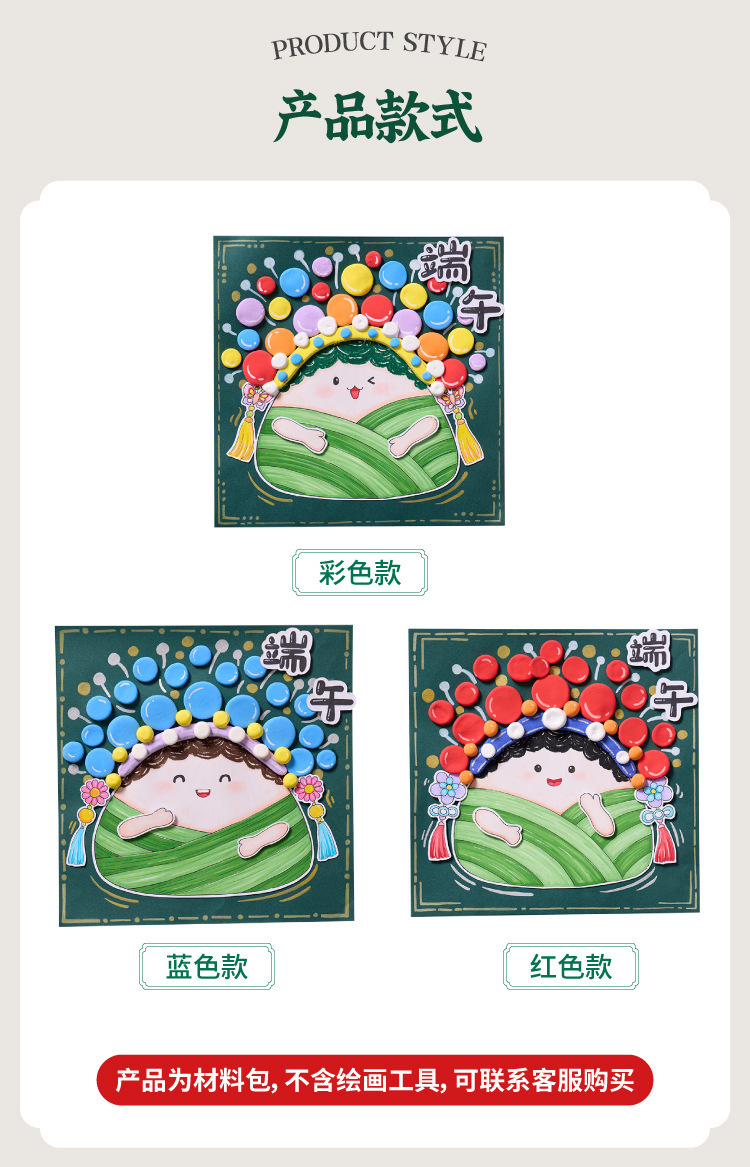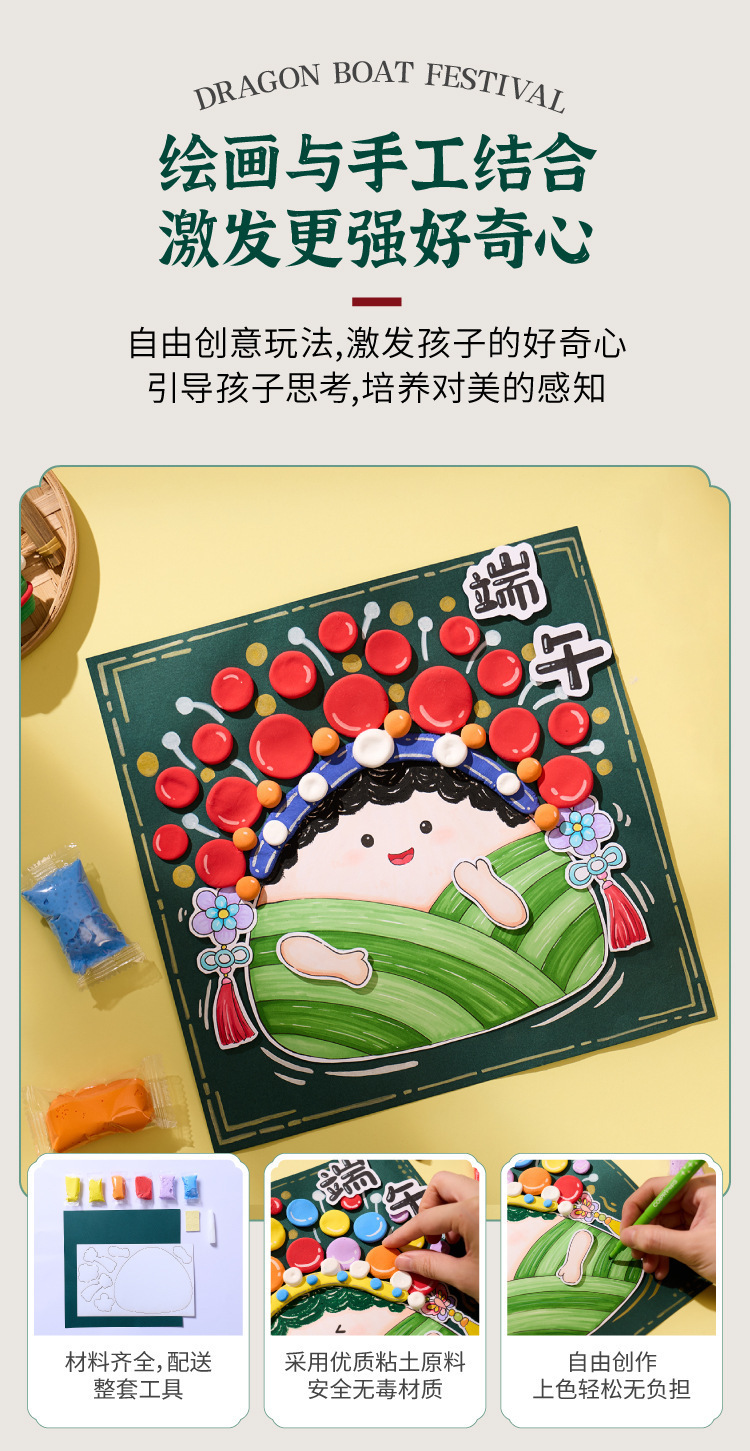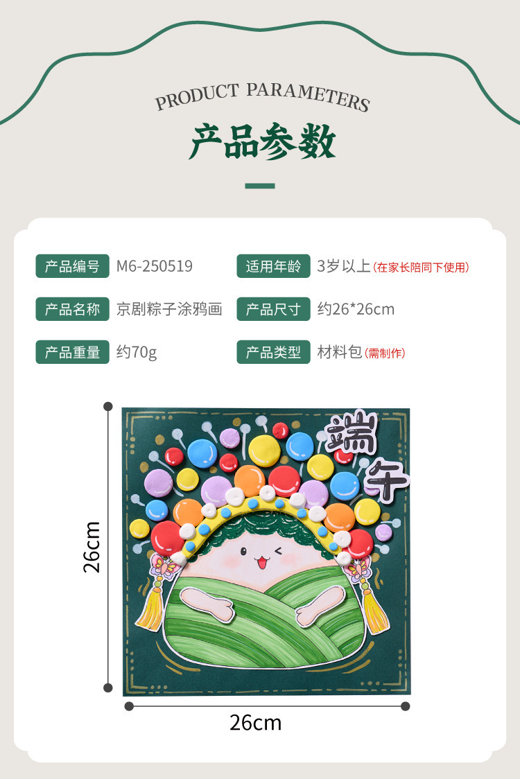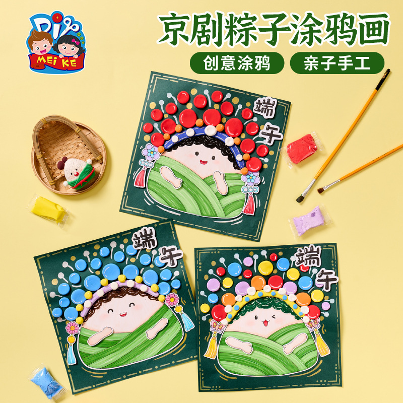 端午安康传统京剧粽子涂鸦画diy材料幼儿园亲子活动暖场趣味手工