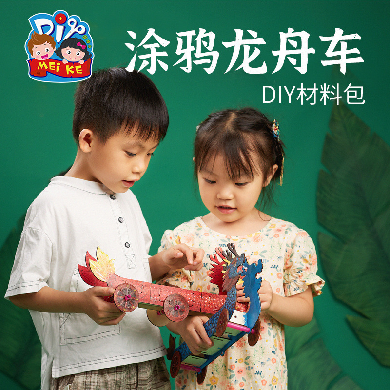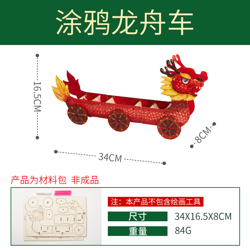 端午节马年礼物手工diy创意涂鸦龙舟车幼儿园儿童玩具制作材料