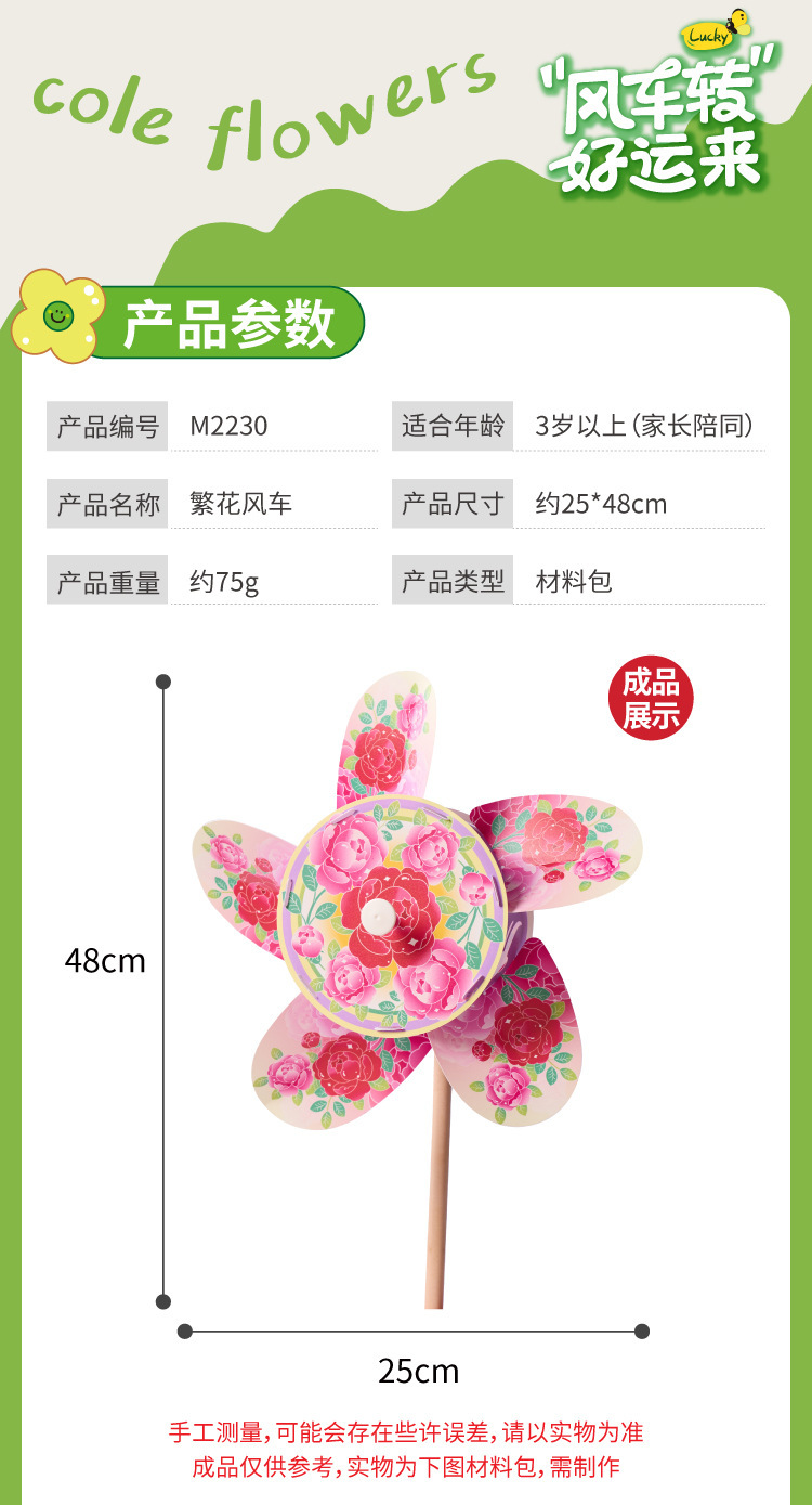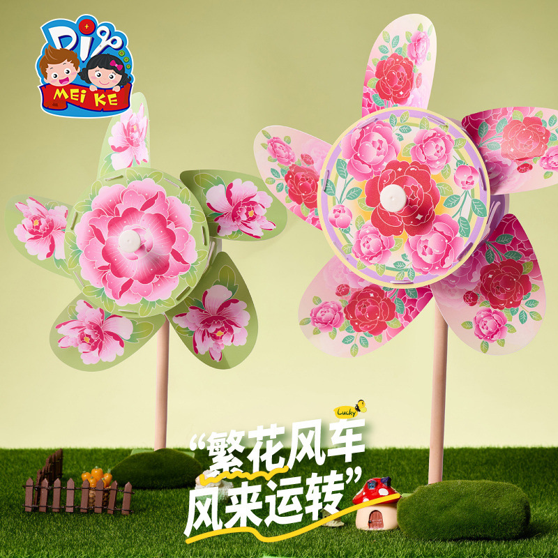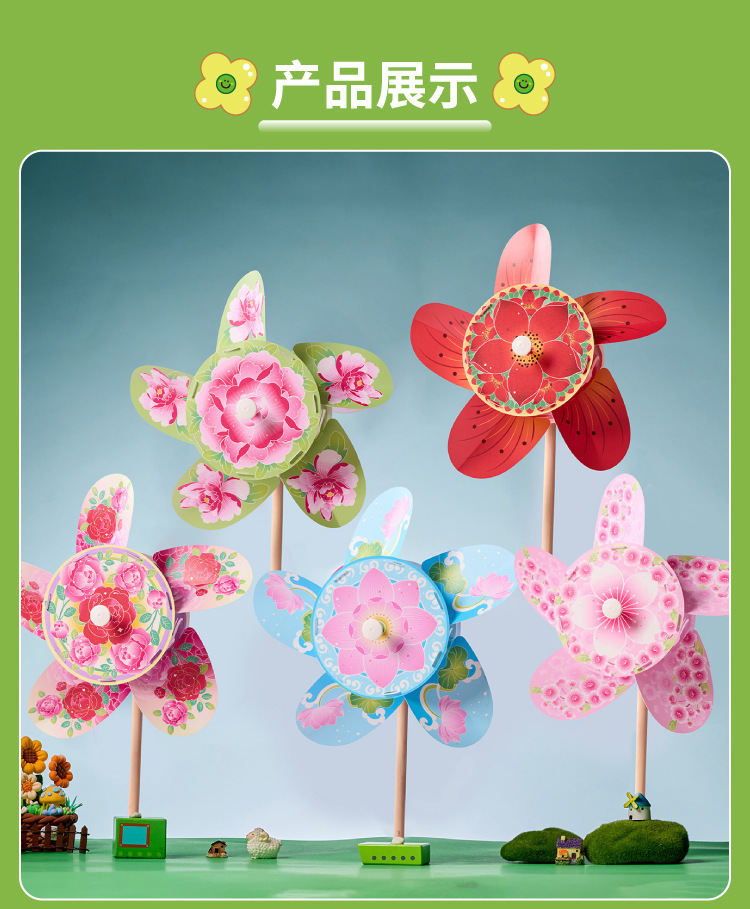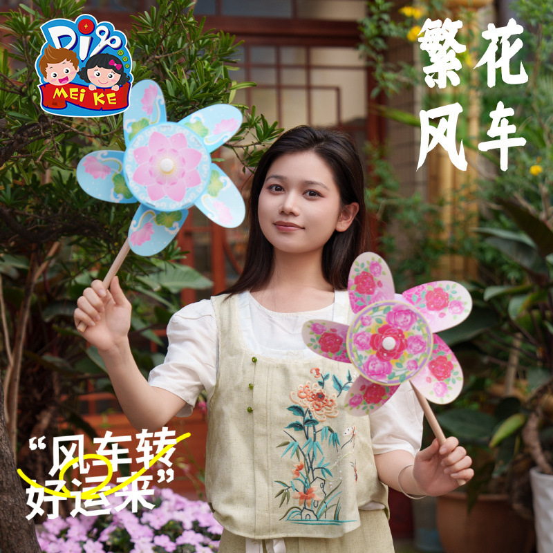 户外春天繁花风车手工diy儿童制作材料包幼儿园玩具旋转装饰环创