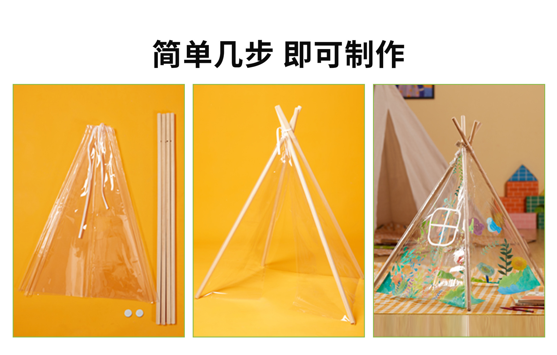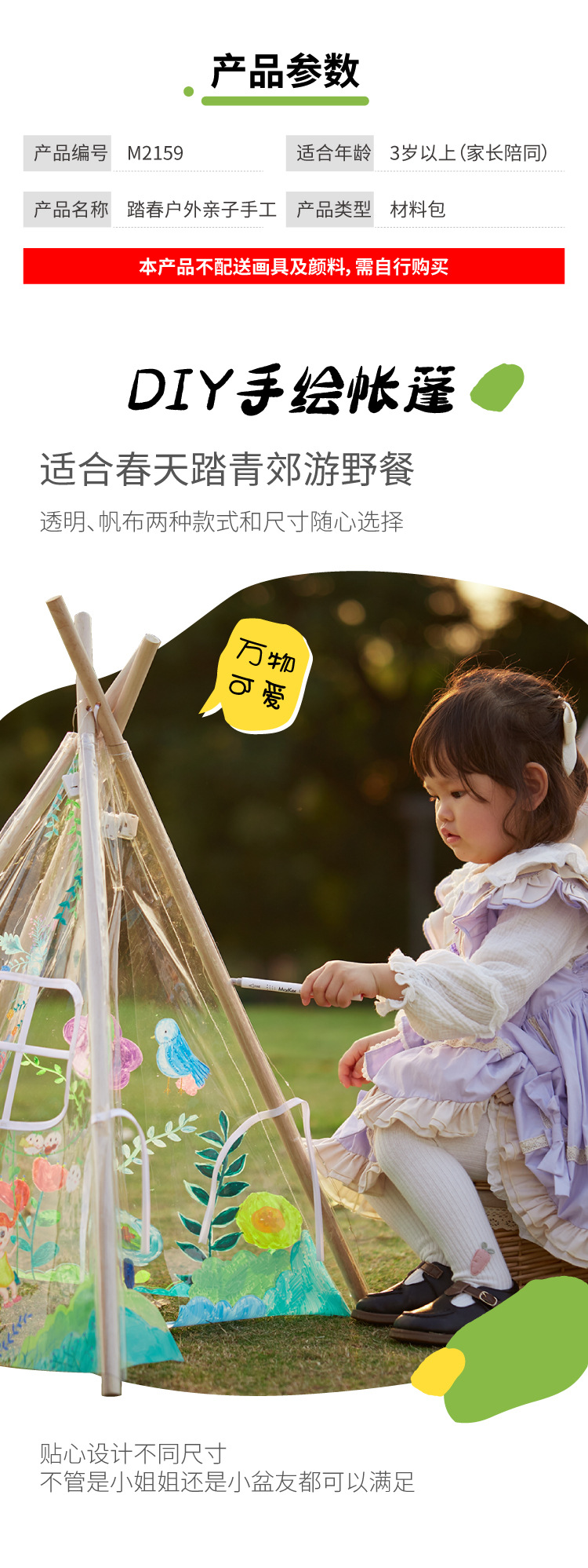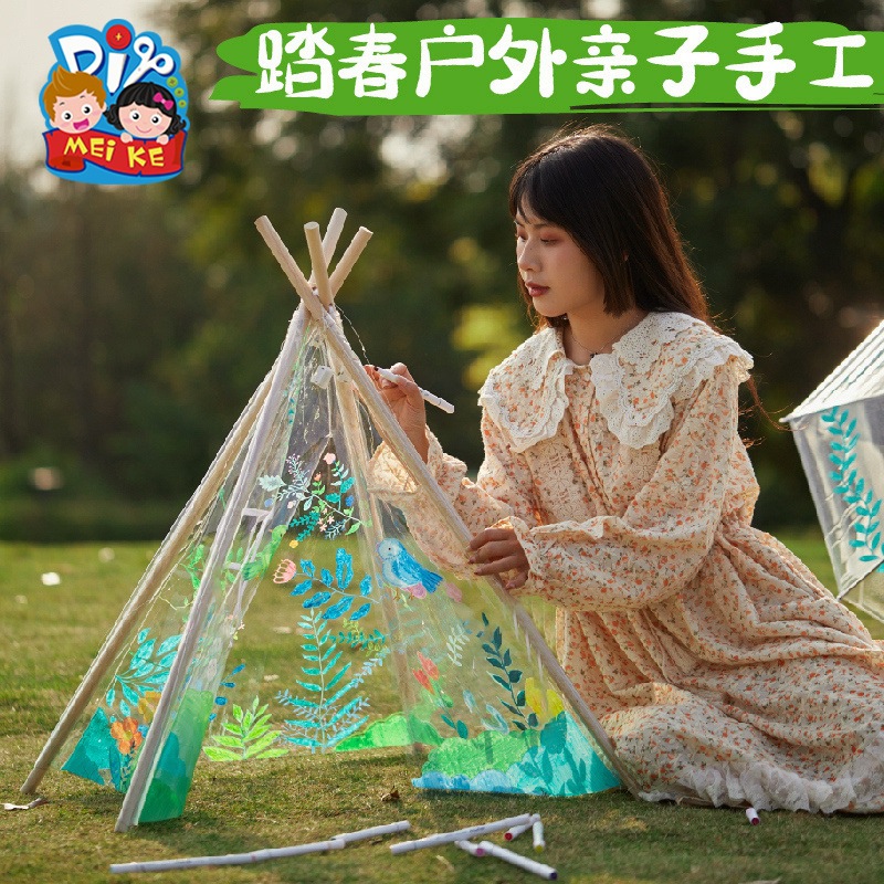 户外春天创意美术绘画透明小帐篷儿童手工diy制作材料涂鸦彩绘