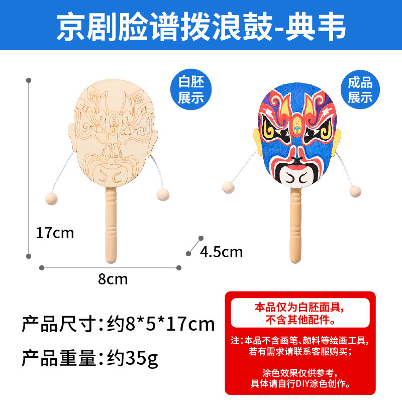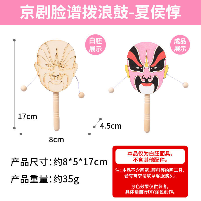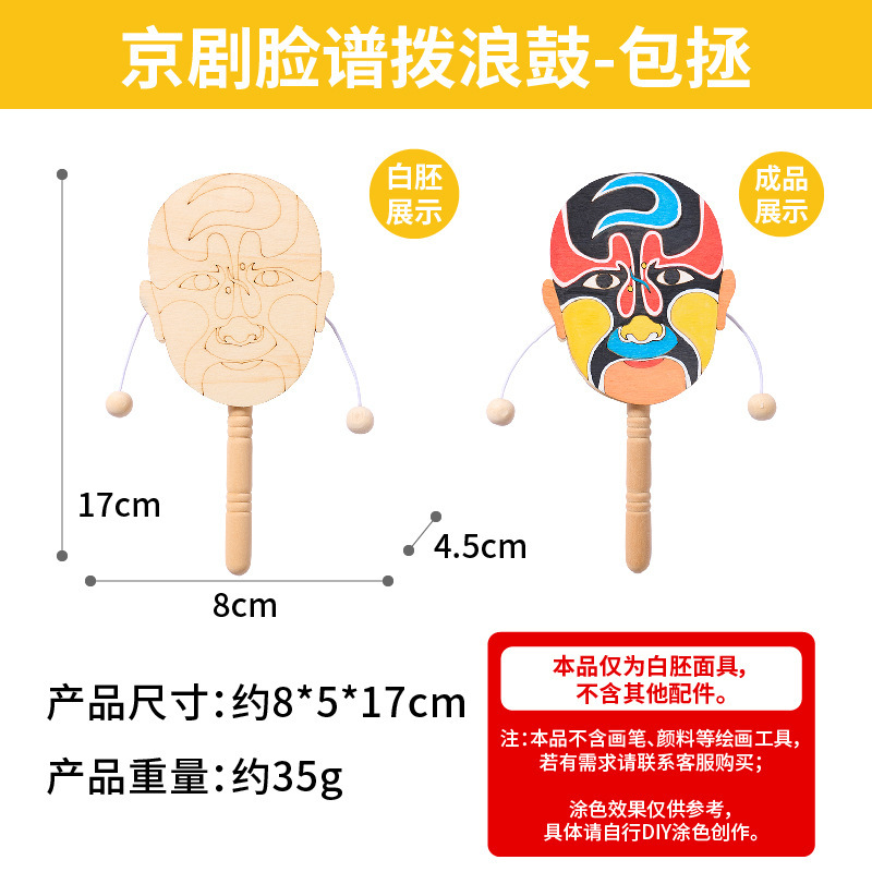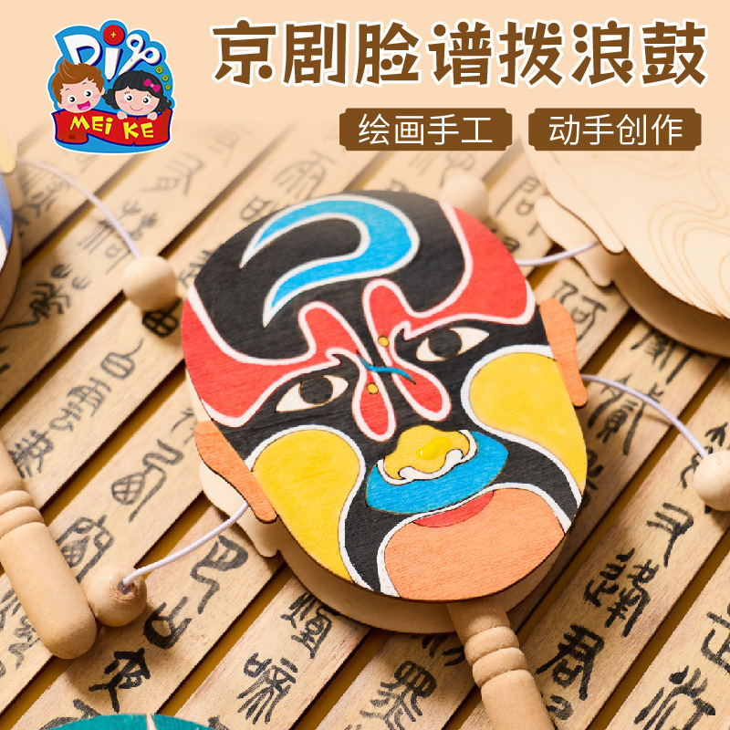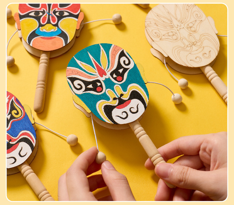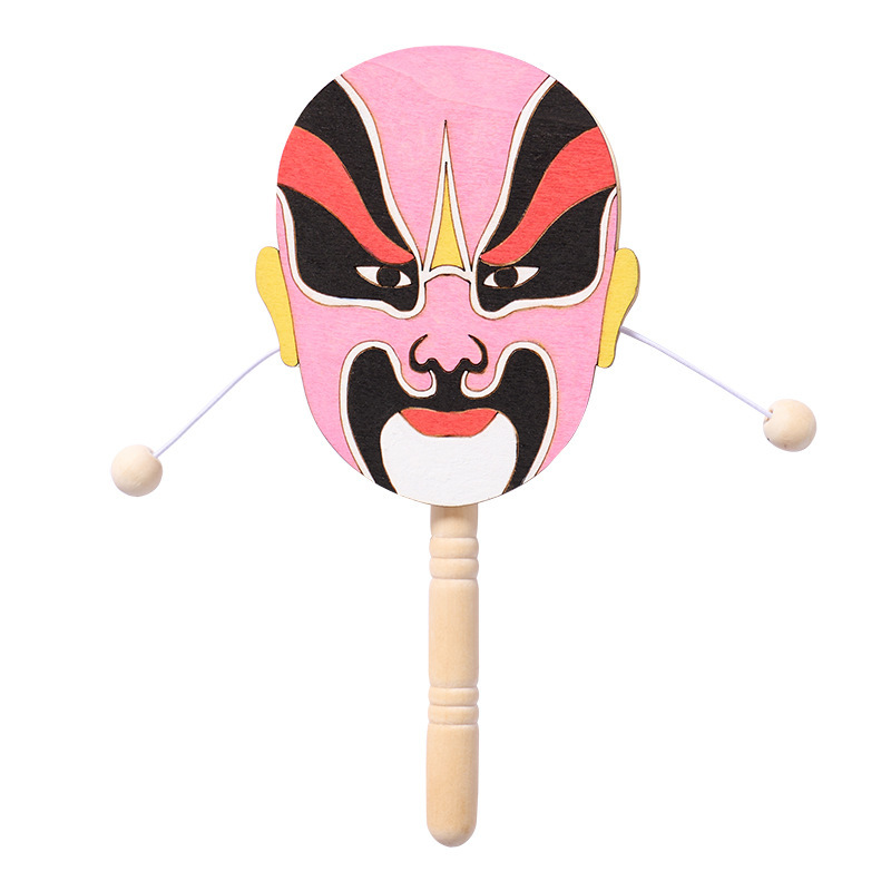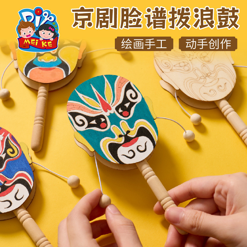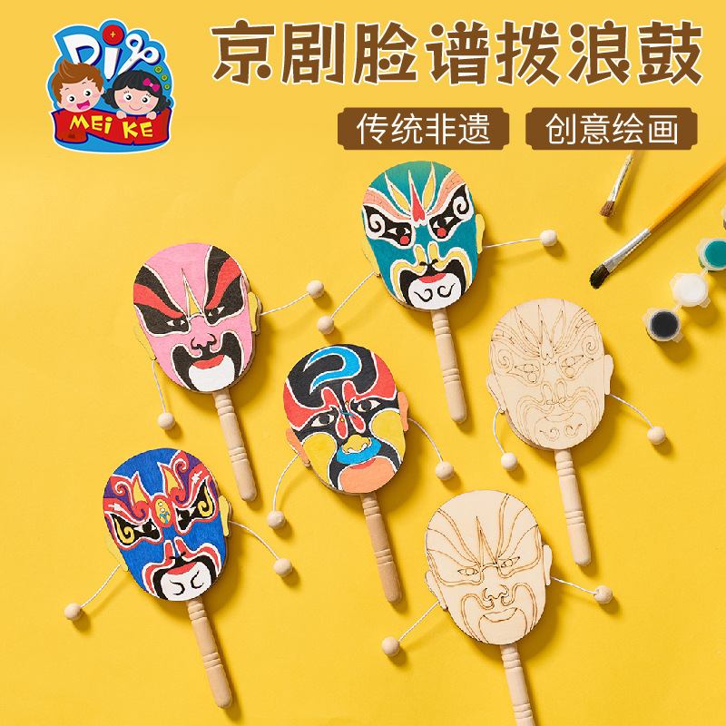 京剧脸谱拨浪鼓手工diy儿童制作材料幼儿园创意美术木质涂色玩具