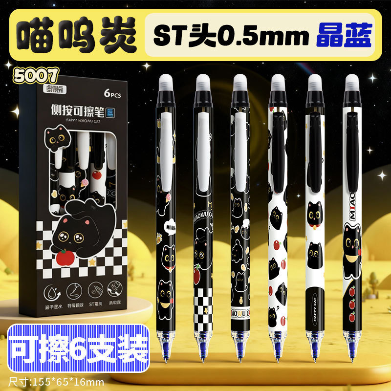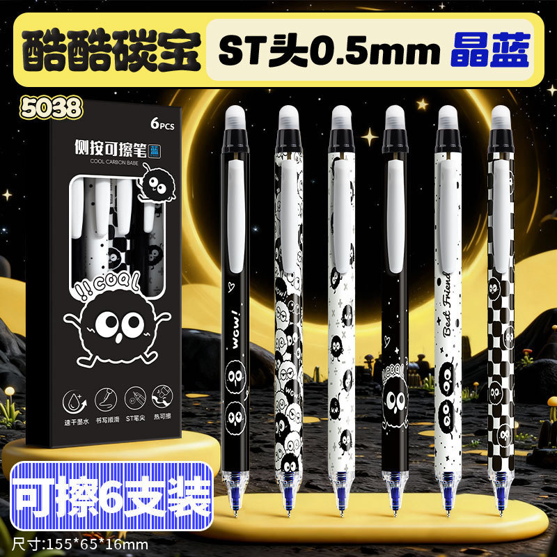 卡皮巴拉卡通侧按可擦笔学生文具摩易擦热晶蓝色子ST头按动中性笔