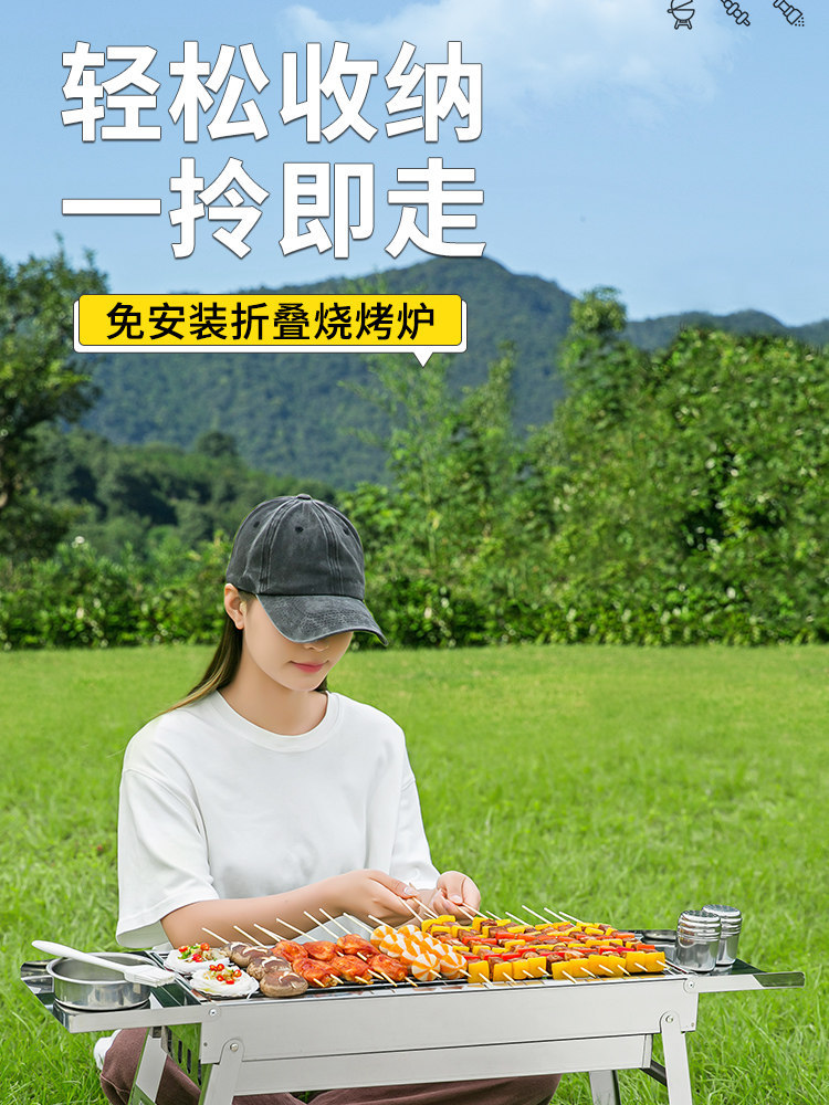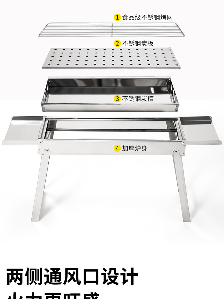 烧烤炉加厚不锈钢家用户外便携式折叠烧烤架木炭烧烤肉炉烧烤炉子
