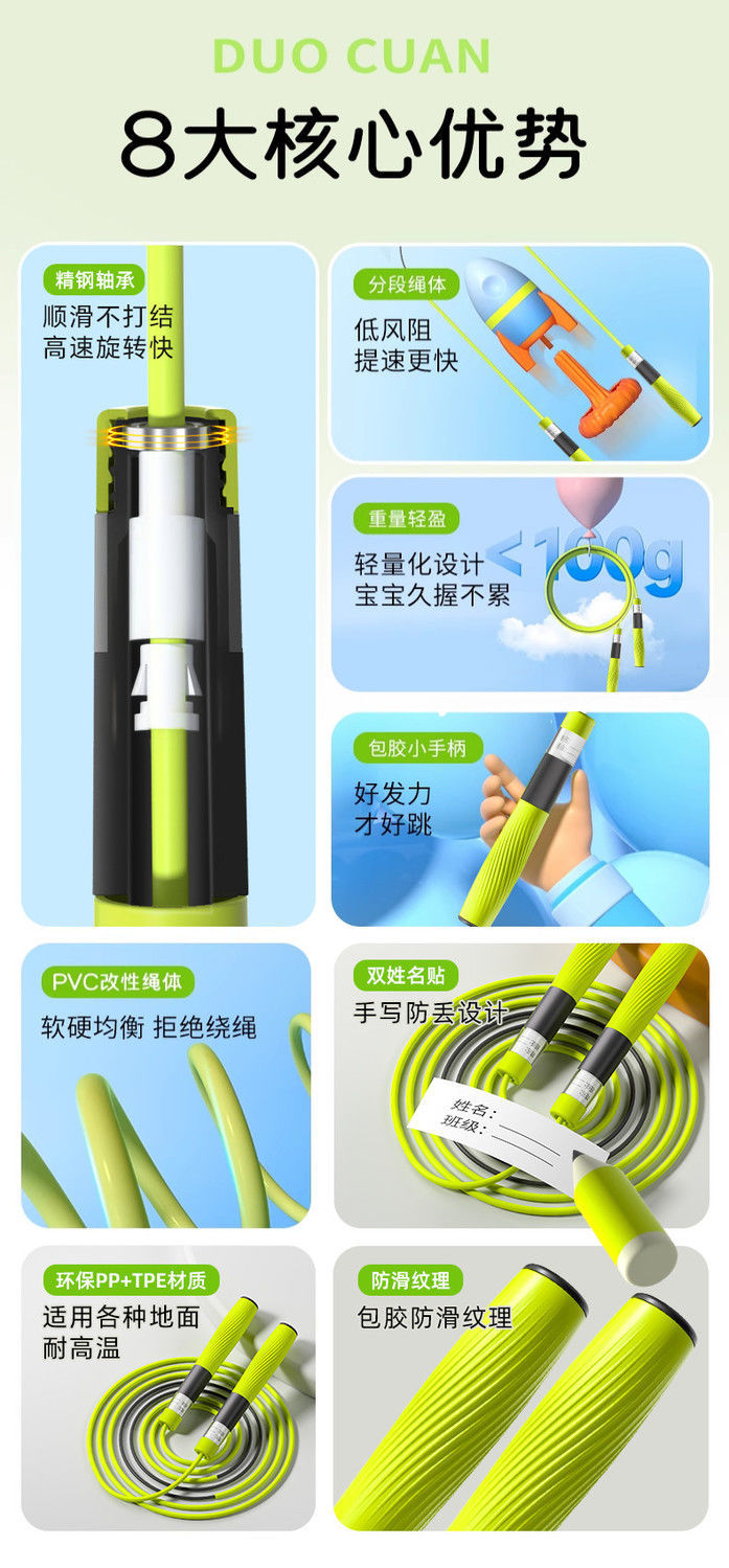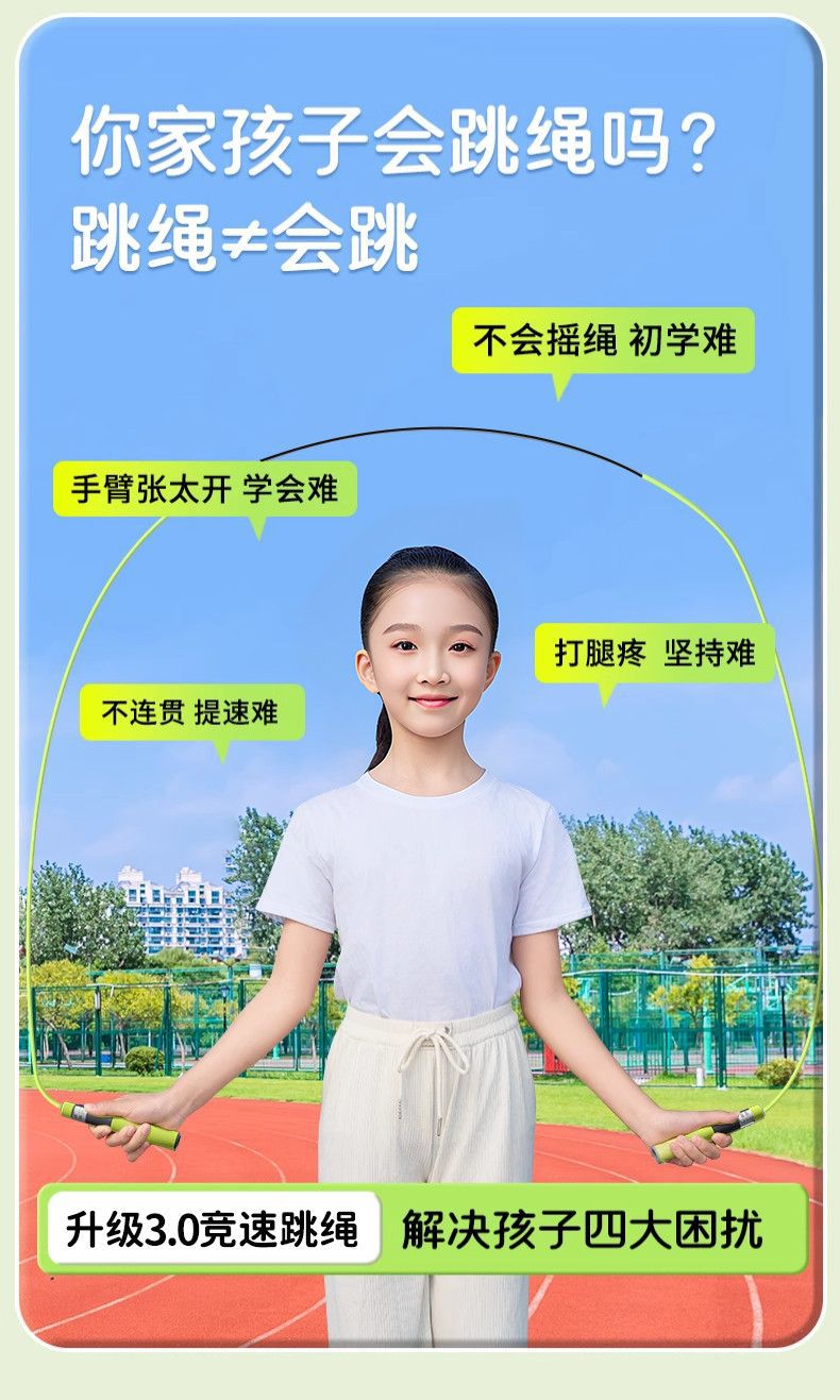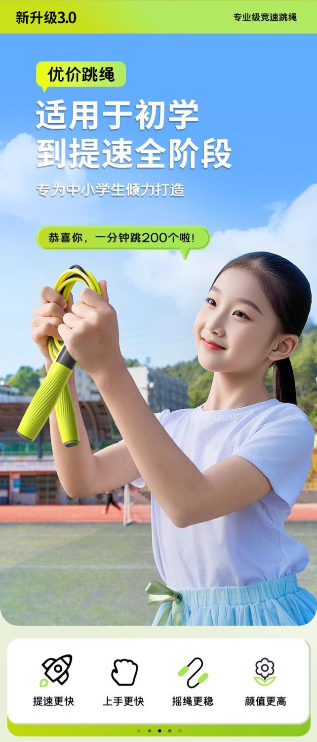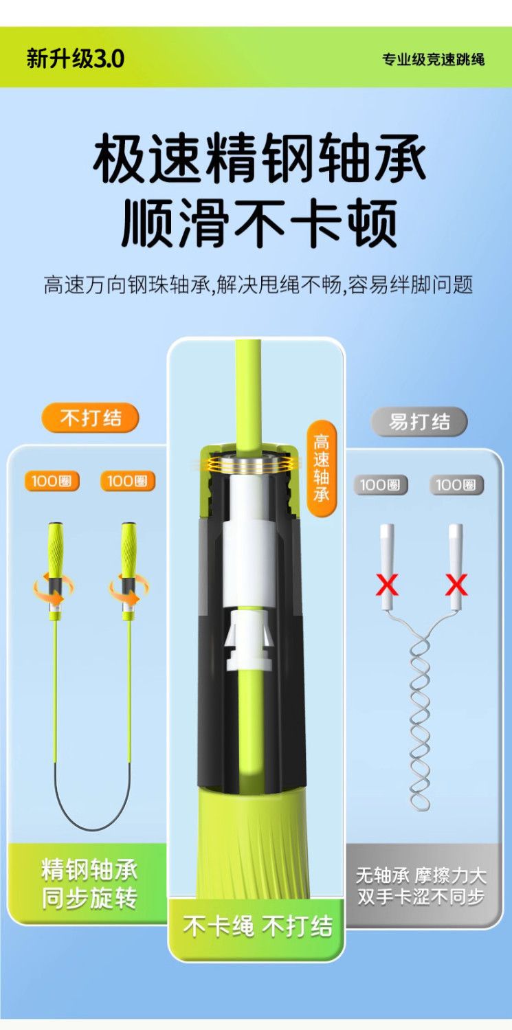 竞速跳绳初学入门提速专业小学生体育中考考试专用可调节儿童跳绳