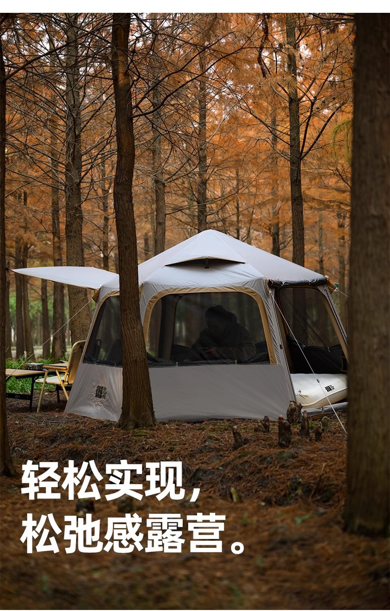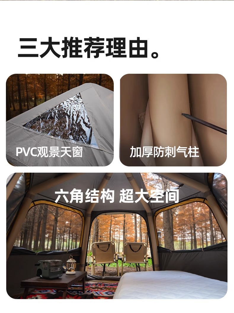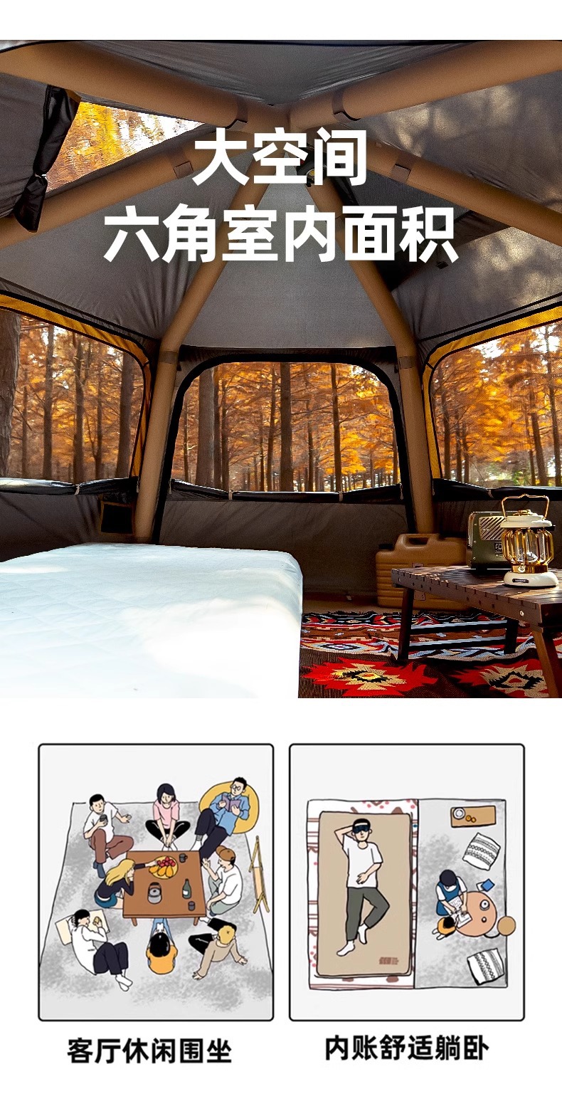 探险者速开六角充气帐篷户外野营过夜露营便携式折叠防雨防晒新品