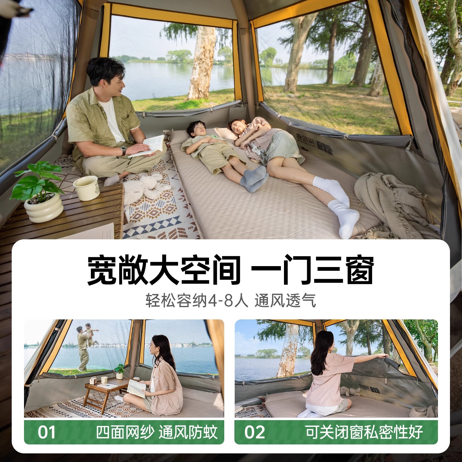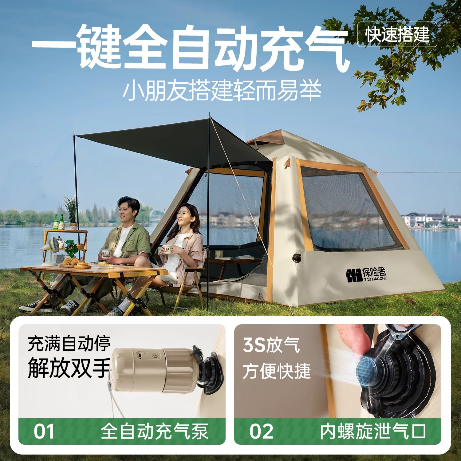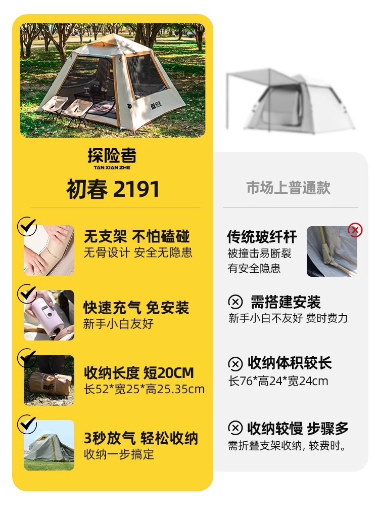 探险者充气帐篷户外便携式折叠自动速开防晒野营过夜露营装备