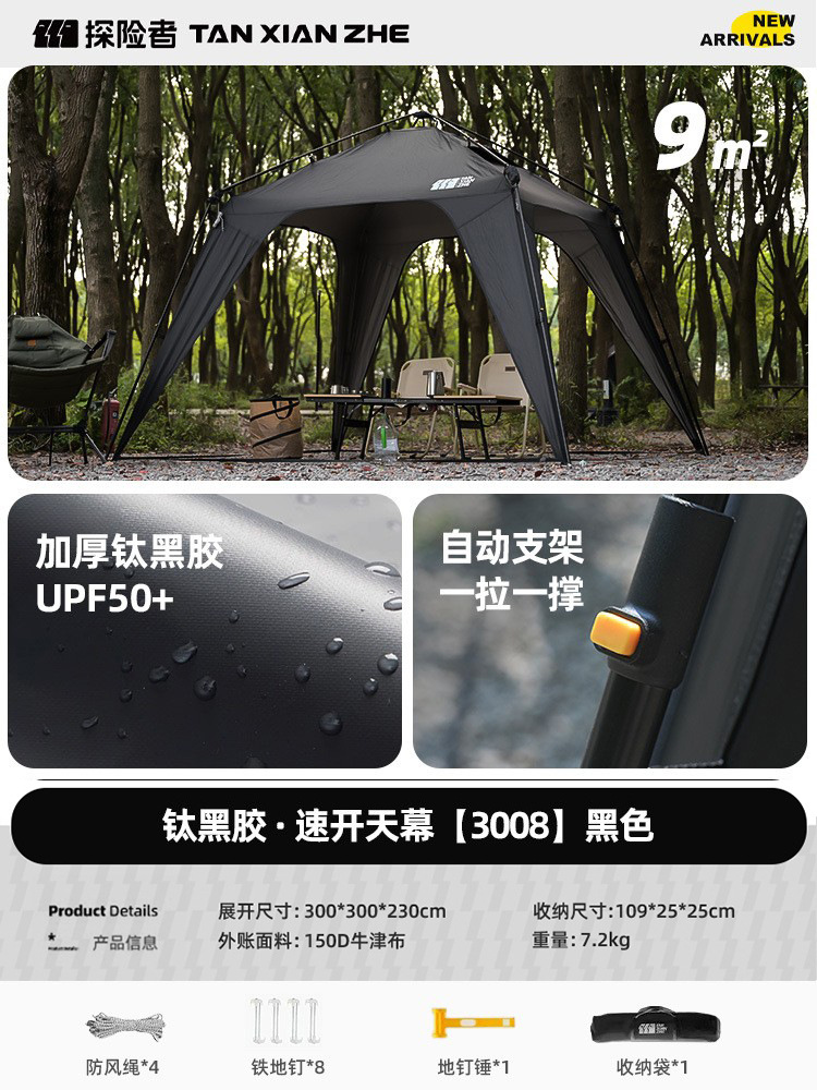 探险者车边速开天幕帐篷户外夏季露营黑胶穹顶帐篷防晒遮阳棚新品