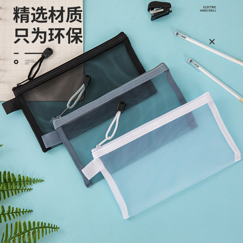 网纱笔袋ins高颜值透明简约笔袋大容量无logo学生考试可爱文具袋