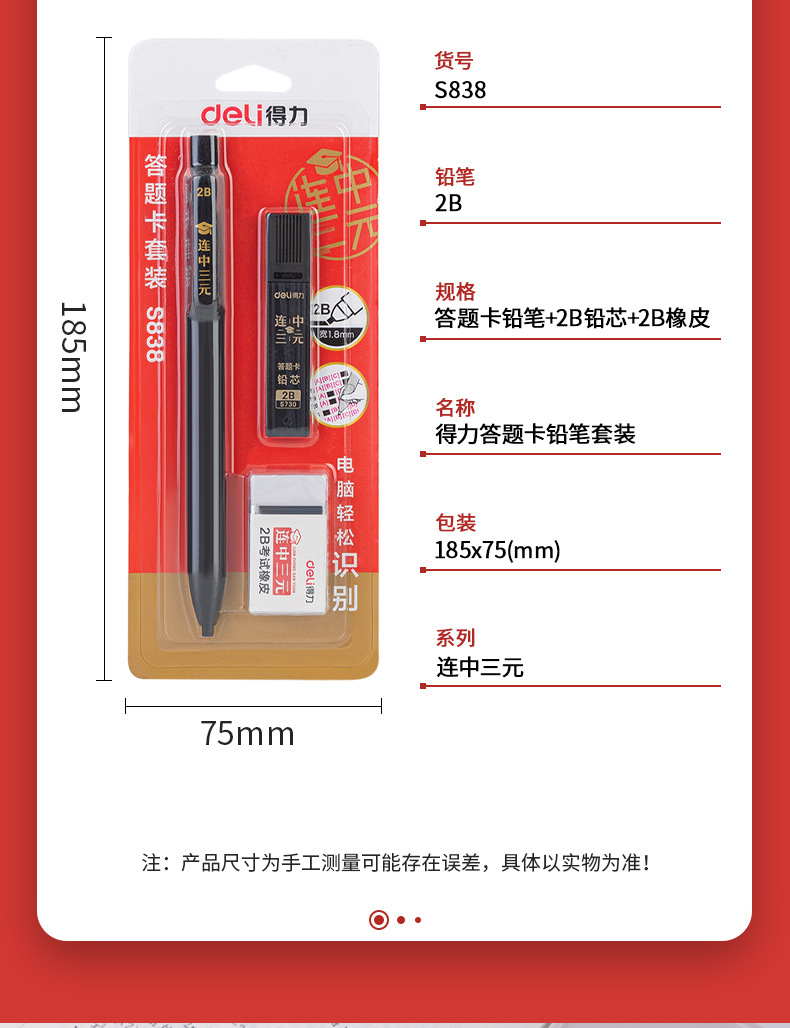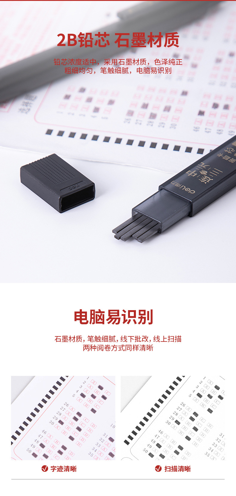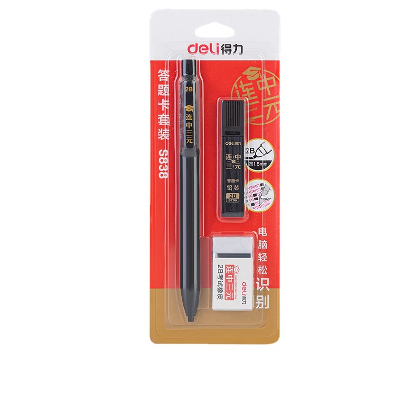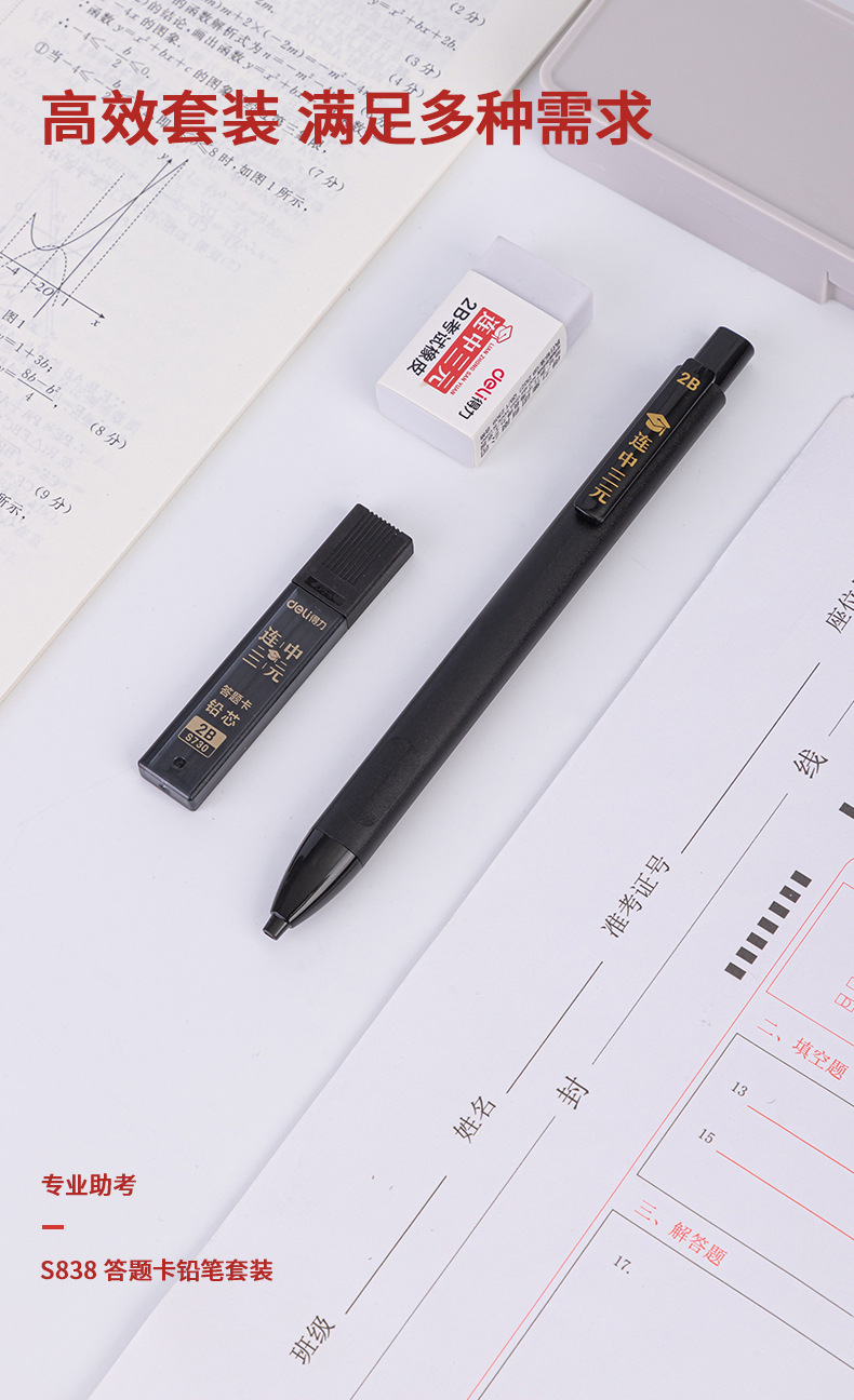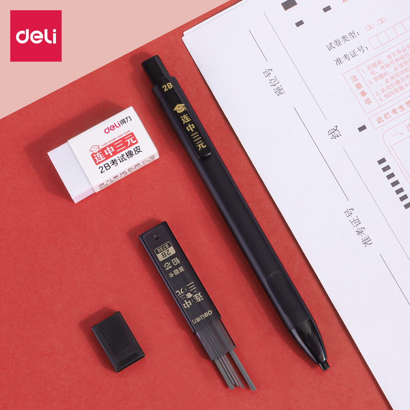 得力答题卡专用笔 电脑涂卡 高考2b自动铅笔 学生考试3件套装批发