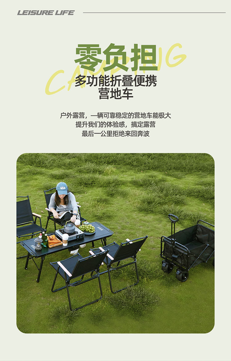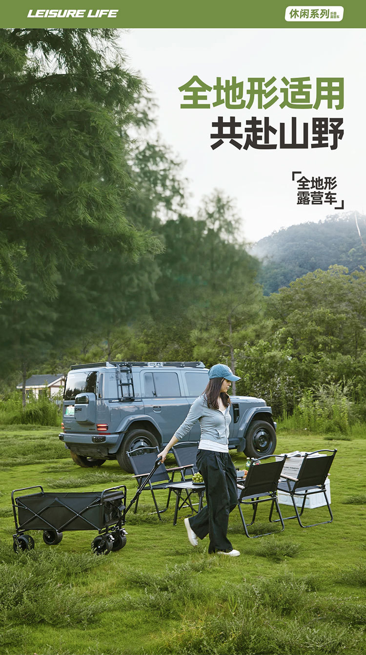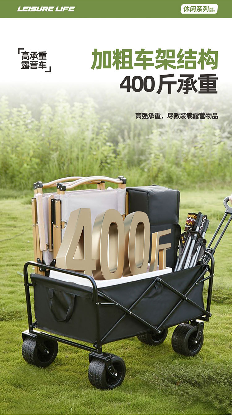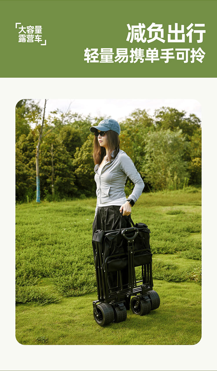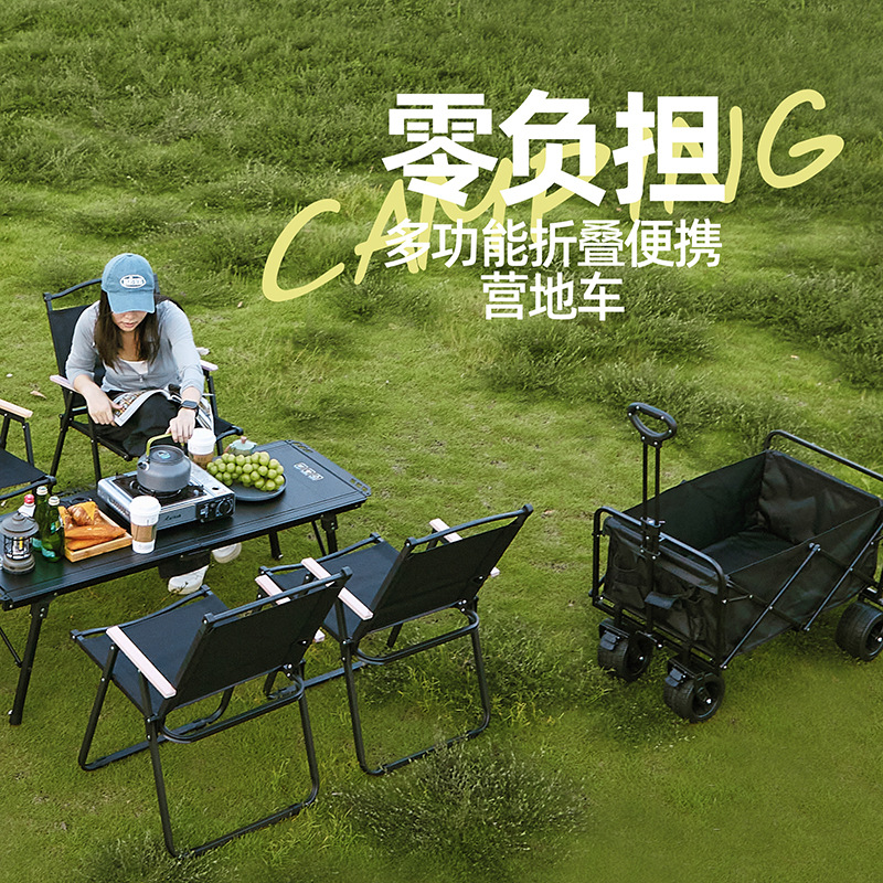 轻便露营手推车野餐车便携营地拖车购物车可折叠家用野营车