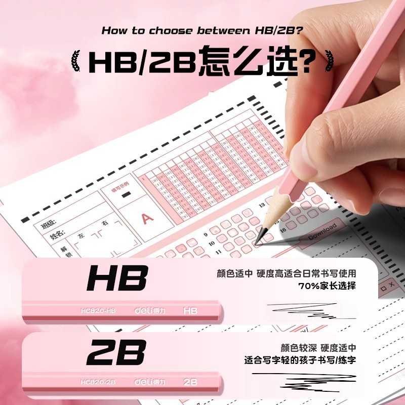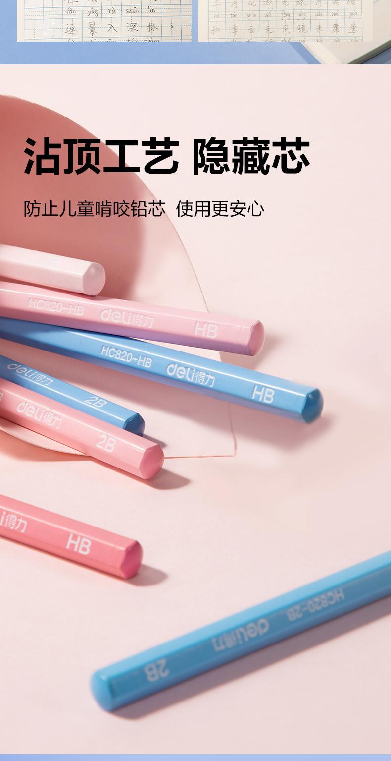 10支装HC820得力铅笔六角铅笔渐变色石墨2B/HB小学生铅笔考试答题