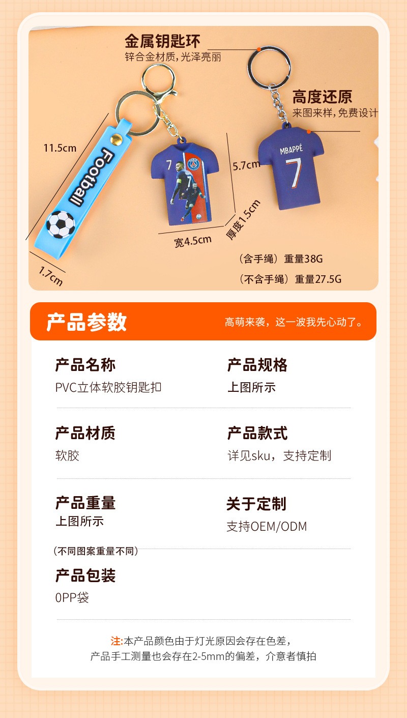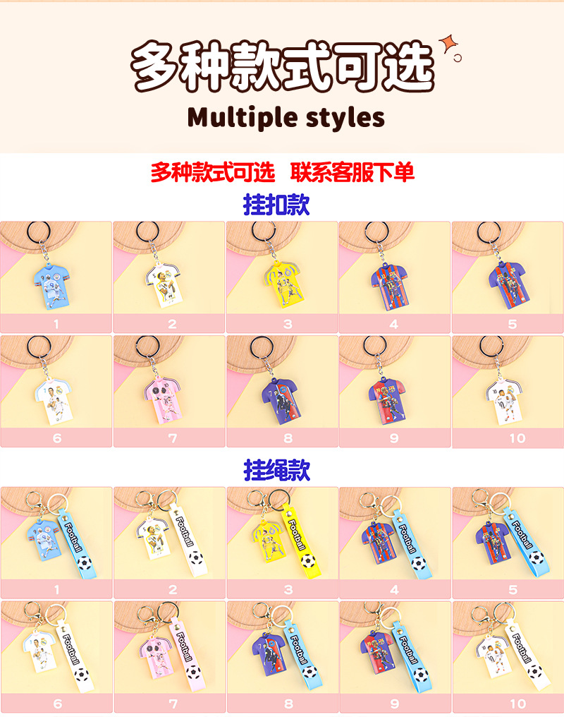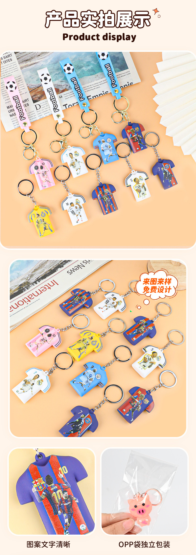 跨境足球球星球衣系列立体软胶钥匙扣扣世界杯挂饰学生纪念小礼品