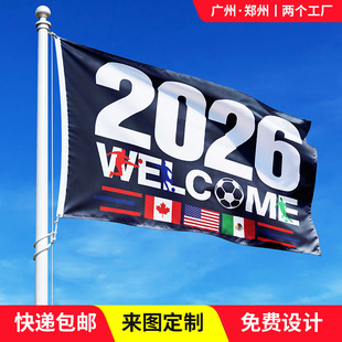 跨境2026美加墨世界杯足球队旗球迷周边用品酒吧氛围装饰旗帜定制