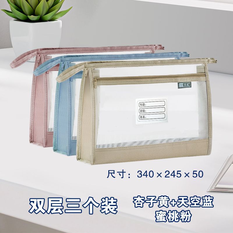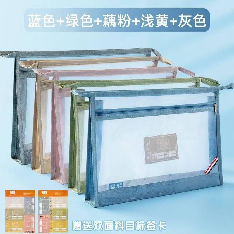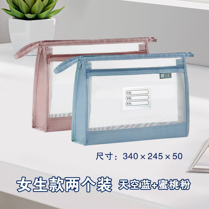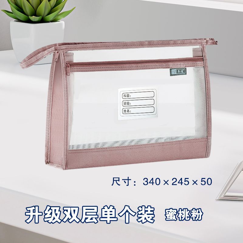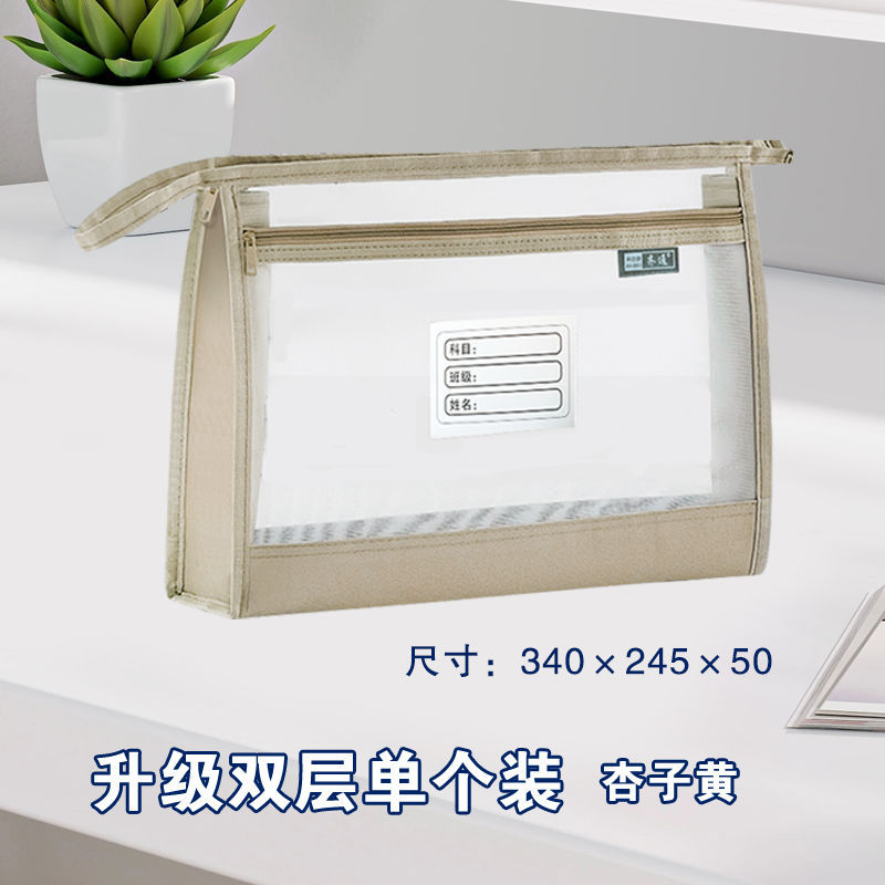 a4加宽立体双层透明网纱大容量手提式科目分类文件袋考试试卷收纳