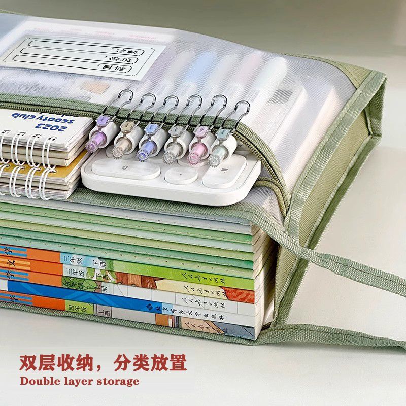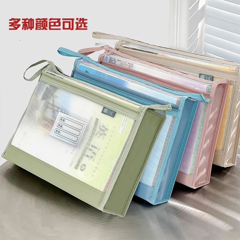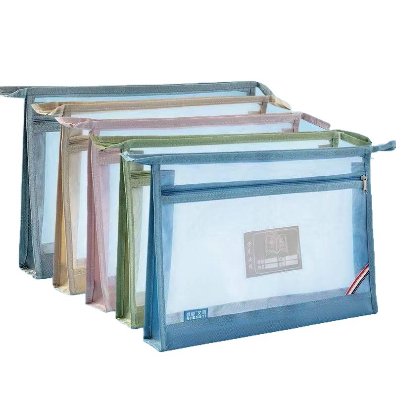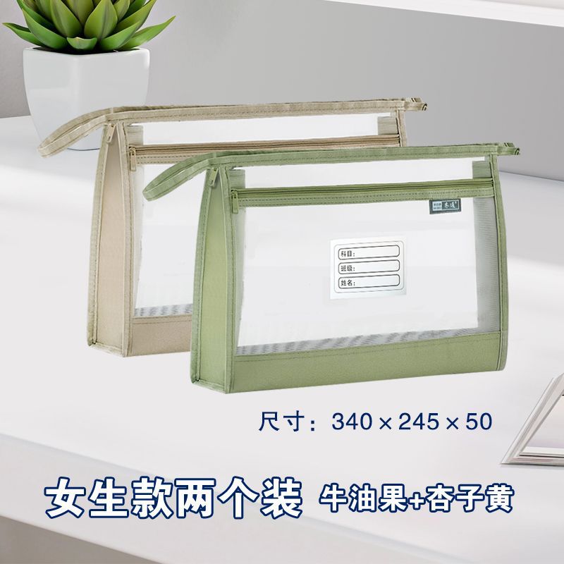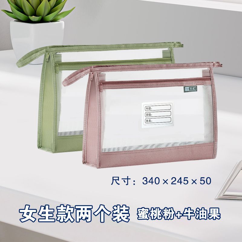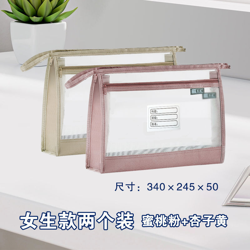 a4加宽立体双层透明网纱大容量手提式科目分类文件袋考试试卷收纳