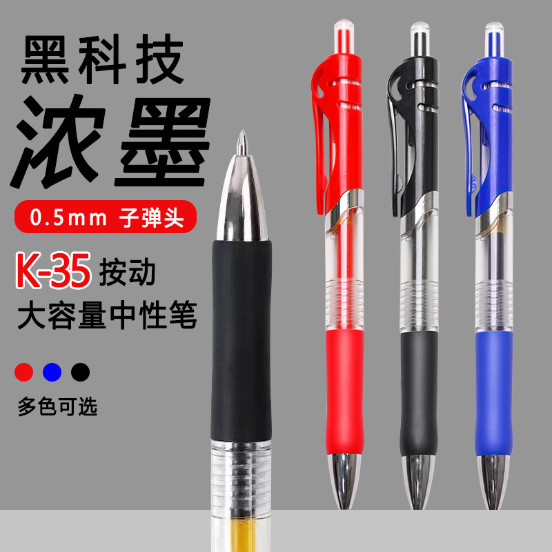 按动中性笔K35经典碳素签字笔圆珠笔子弹头学生刷题笔考试圆珠笔