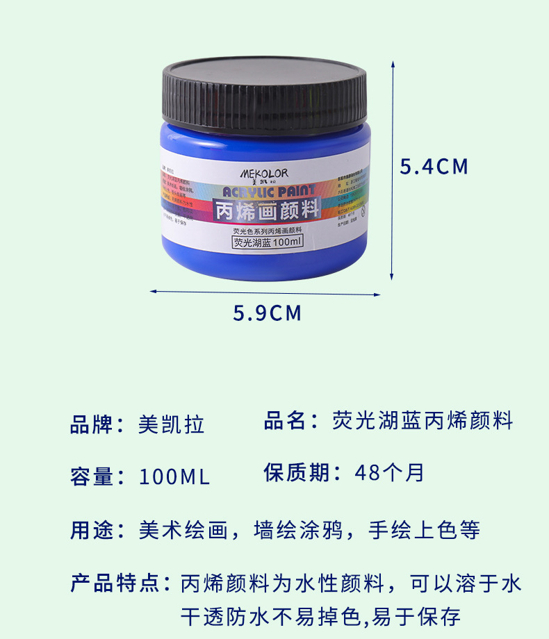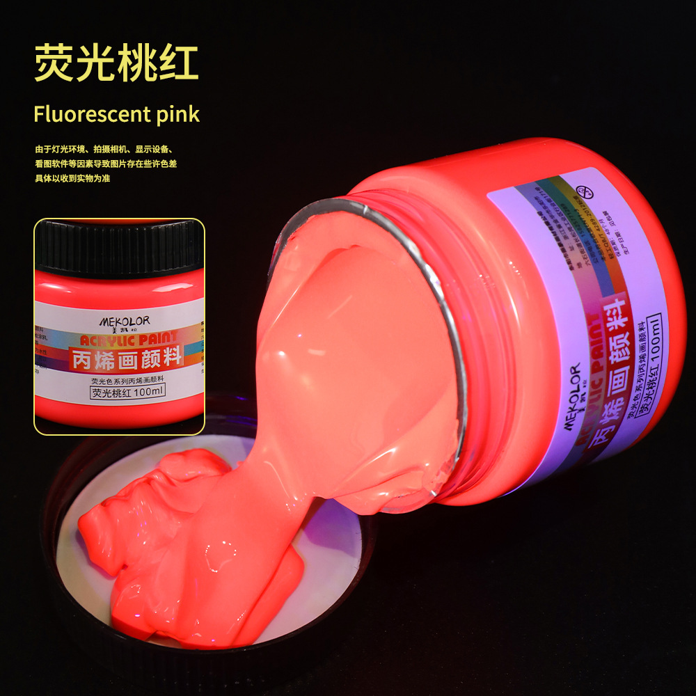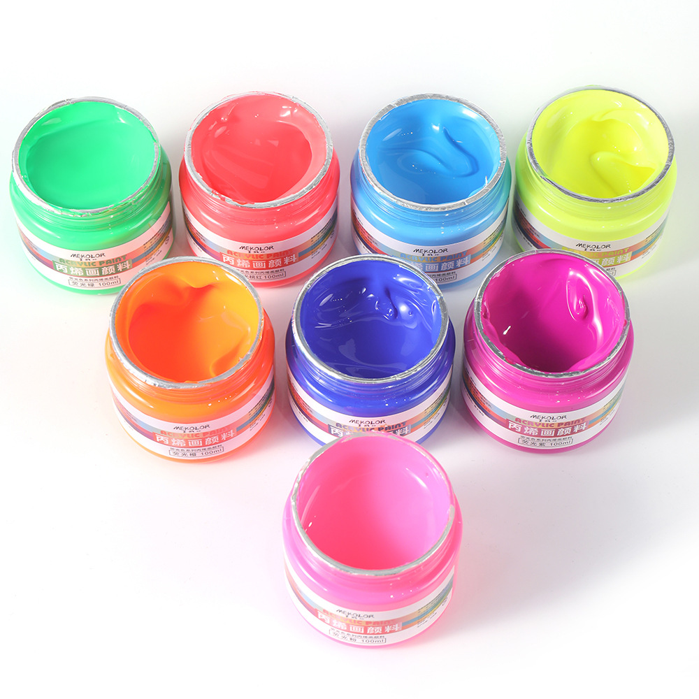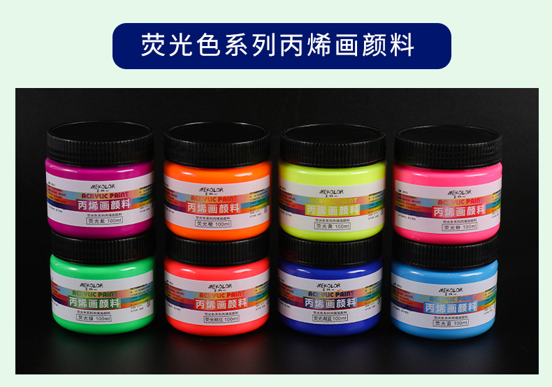 跨境爆款100ml荧光色丙烯水彩颜料套装防水石膏反光荧光丙烯颜料