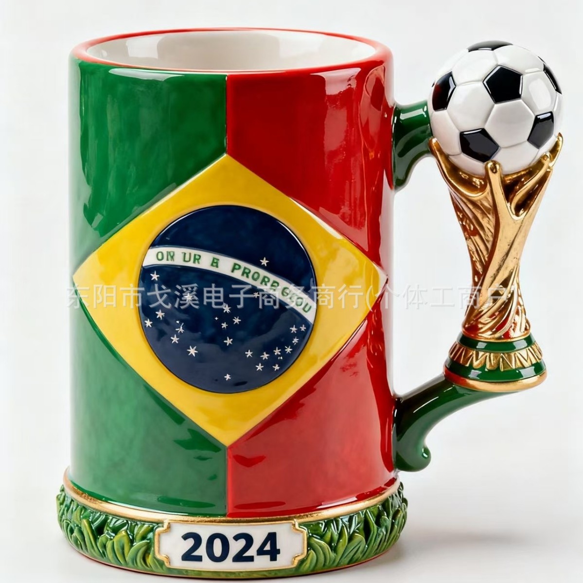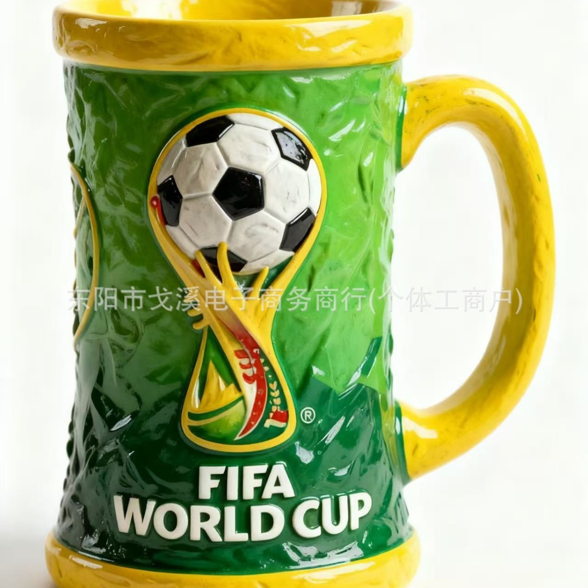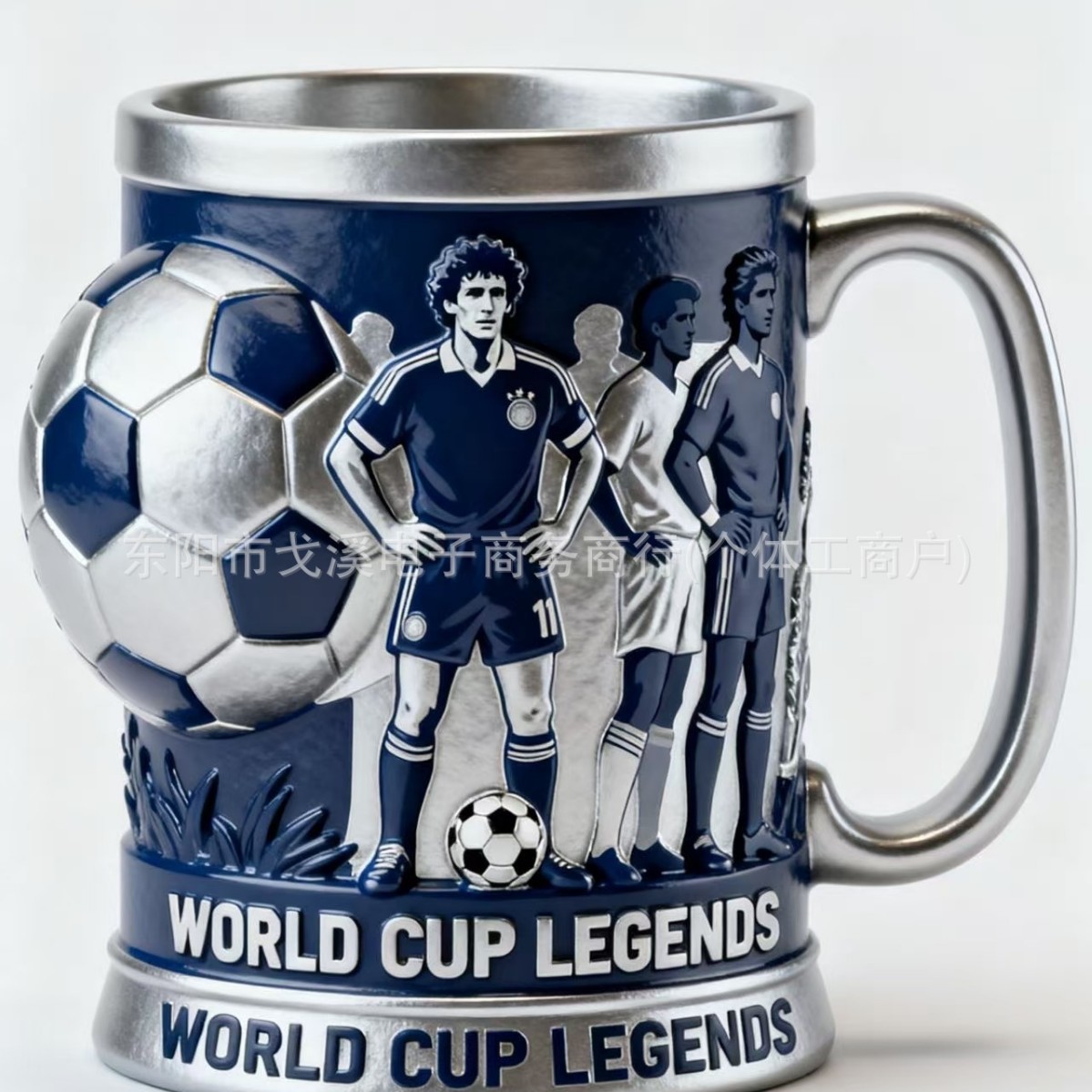 跨境新款世界杯国家队足球马克杯树脂高颜值不锈钢3D纪念品咖啡杯