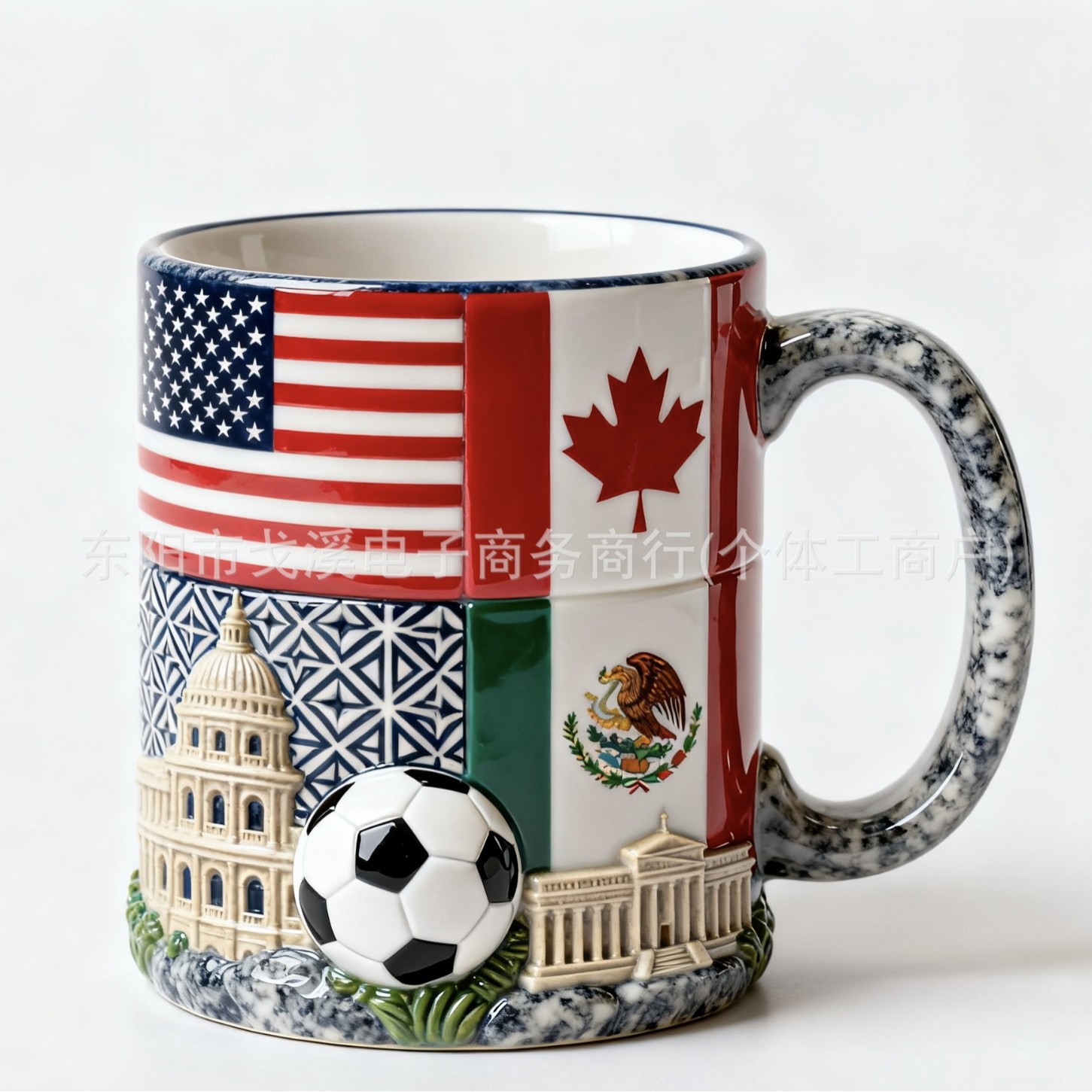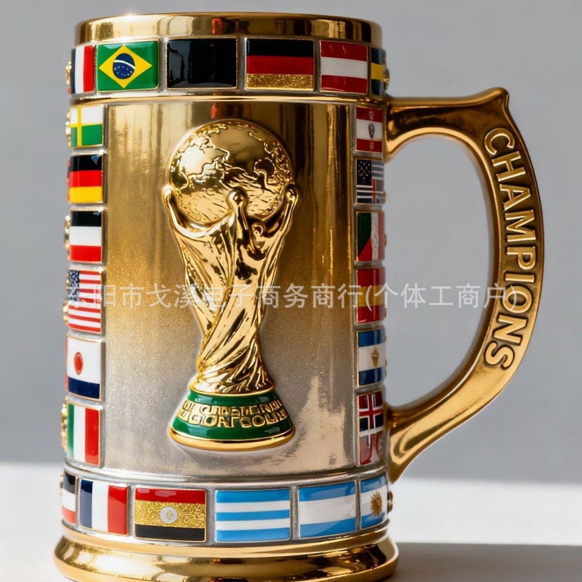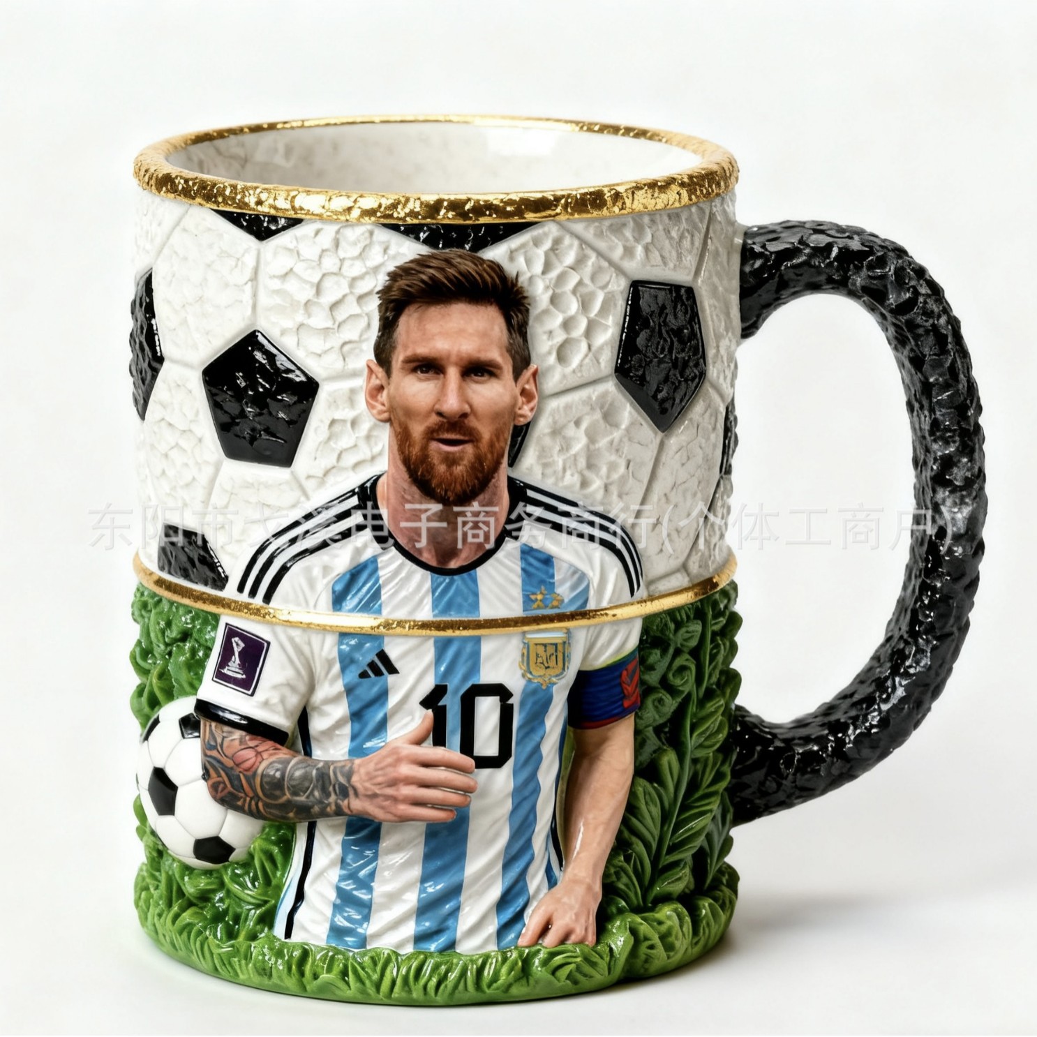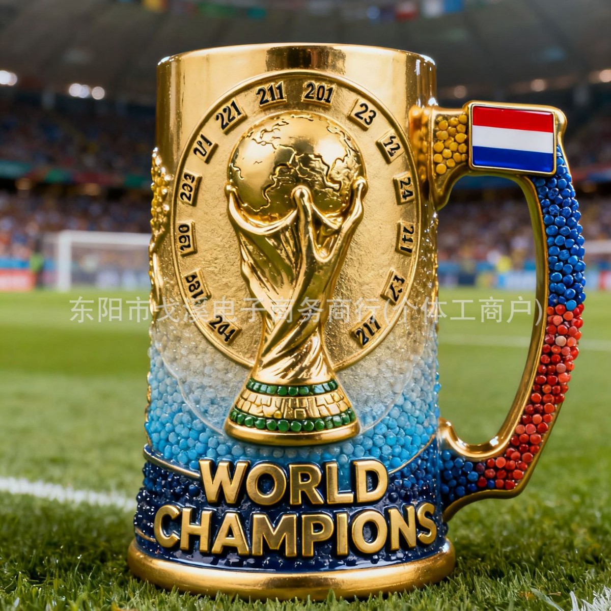 跨境新款世界杯国家队足球马克杯树脂高颜值不锈钢3D纪念品咖啡杯