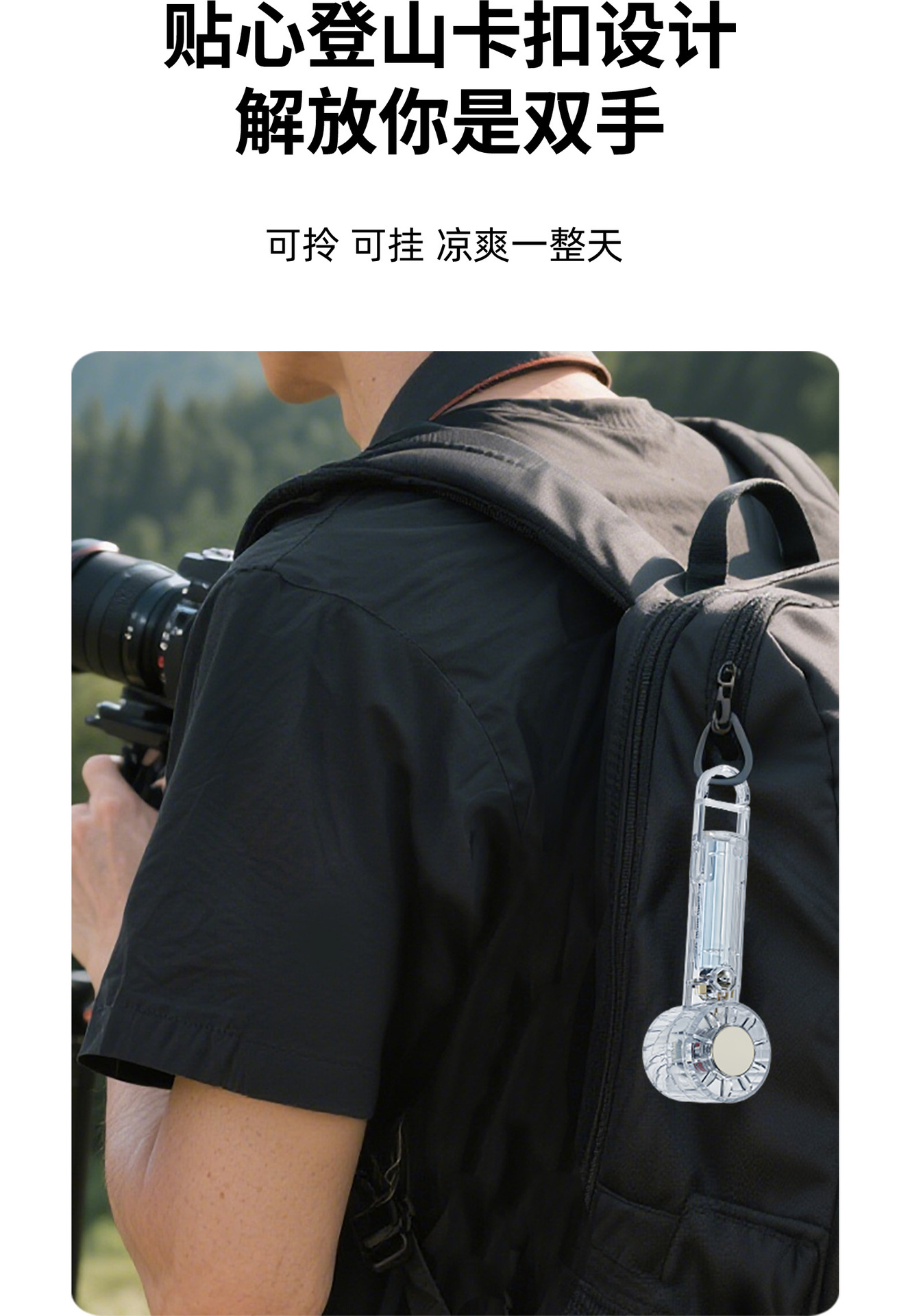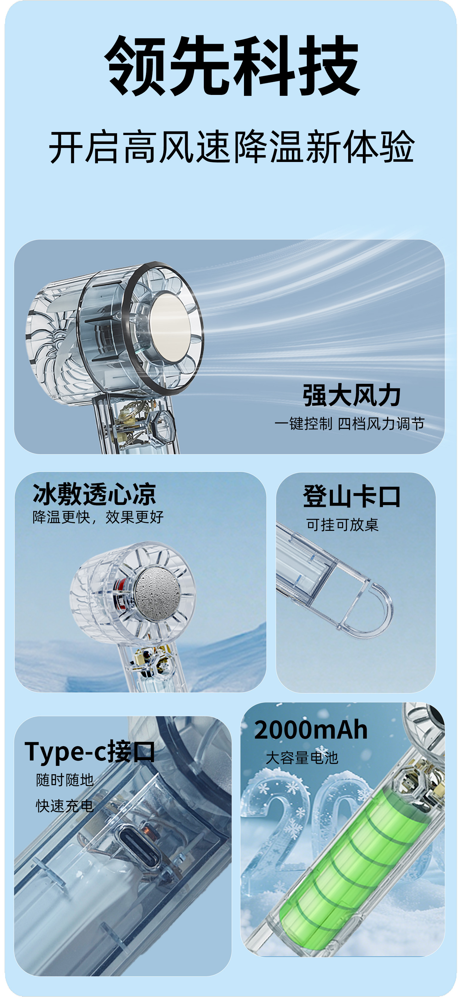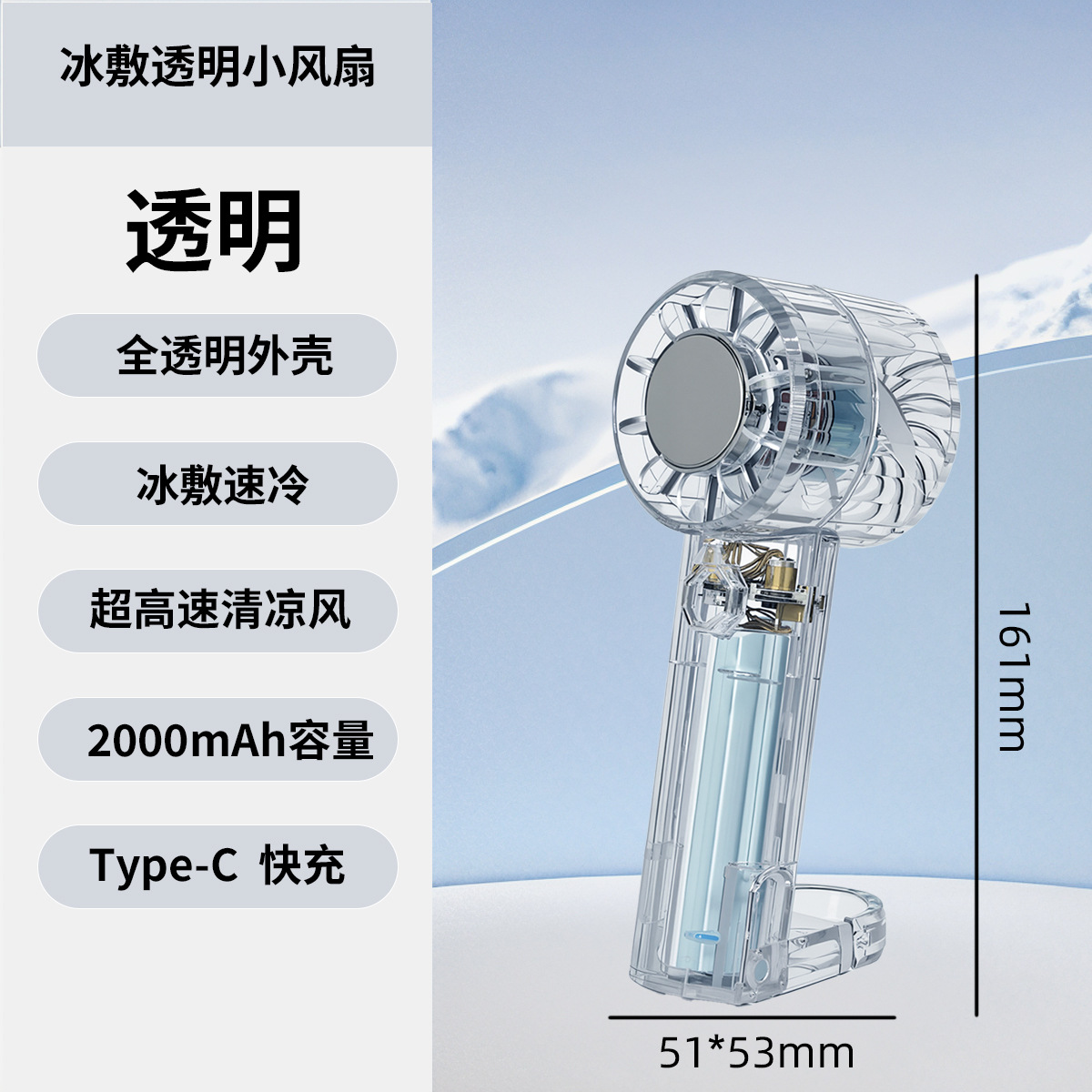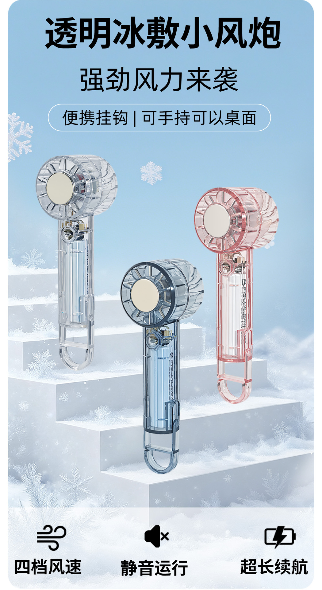 26年跨境新款冰敷透明风扇 USB迷你户外便携涡轮手持登山扣大风力