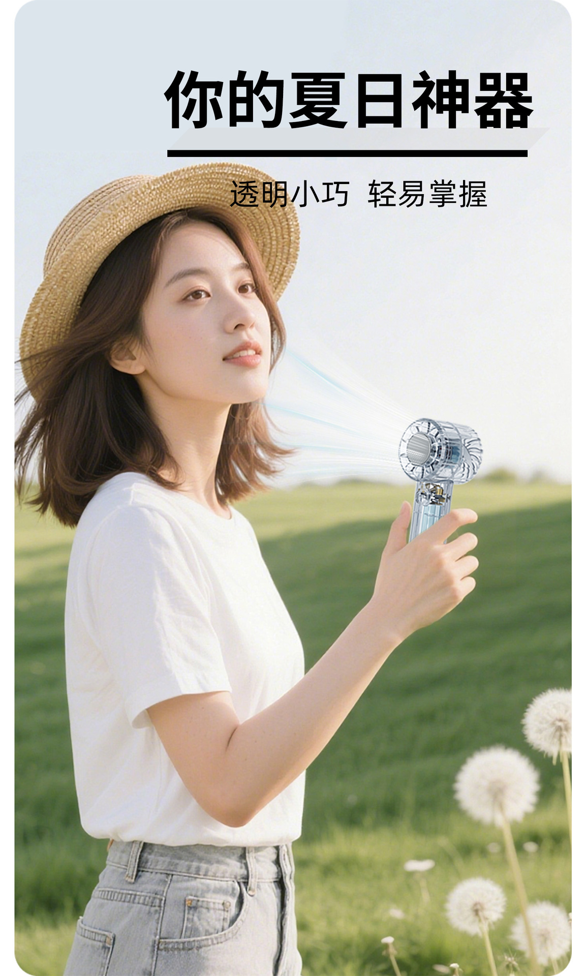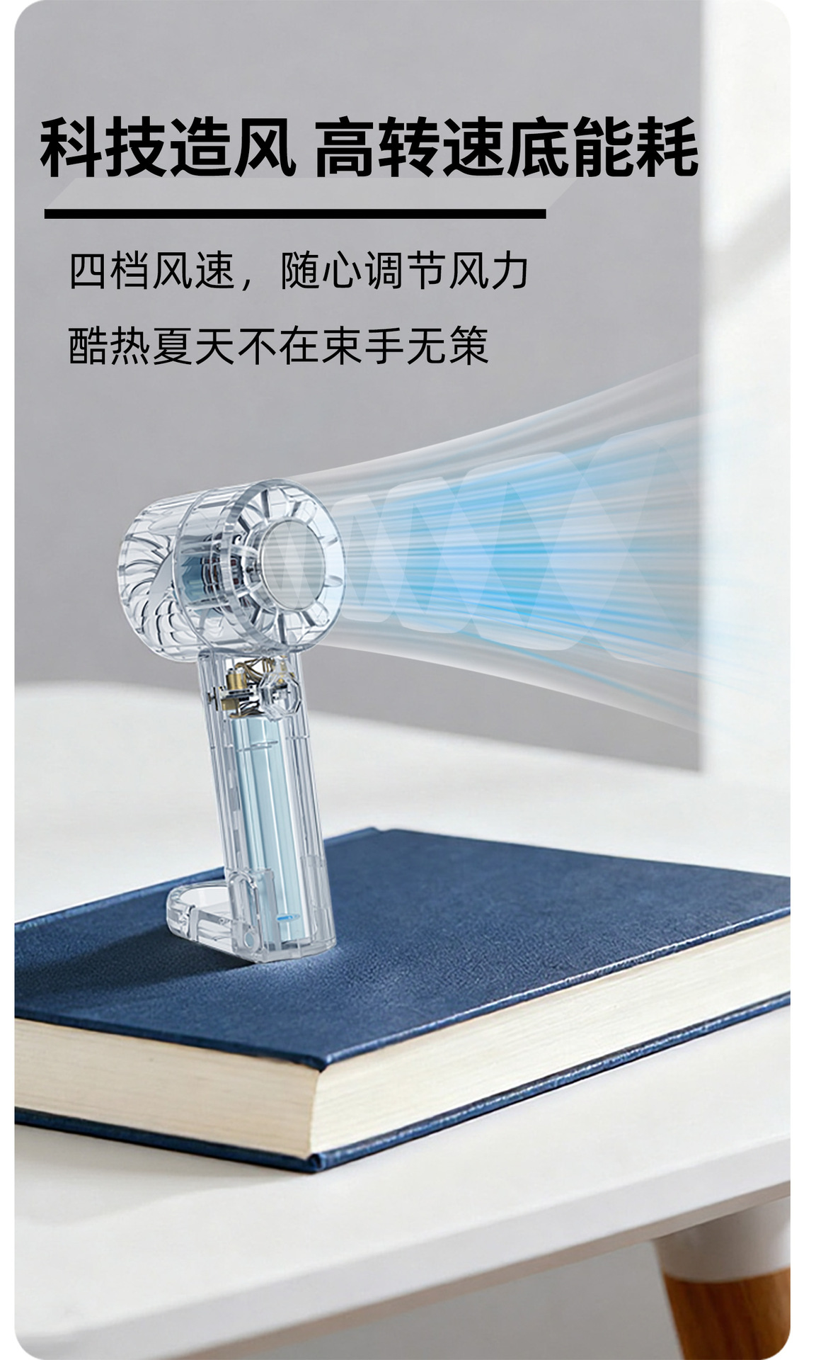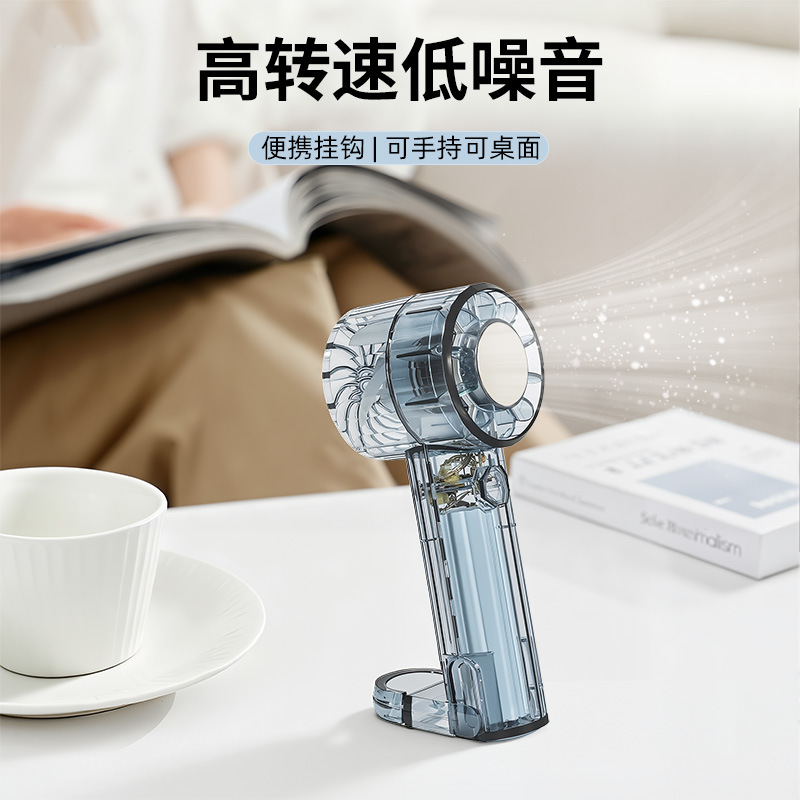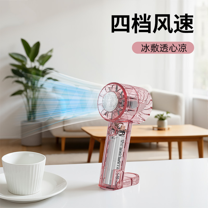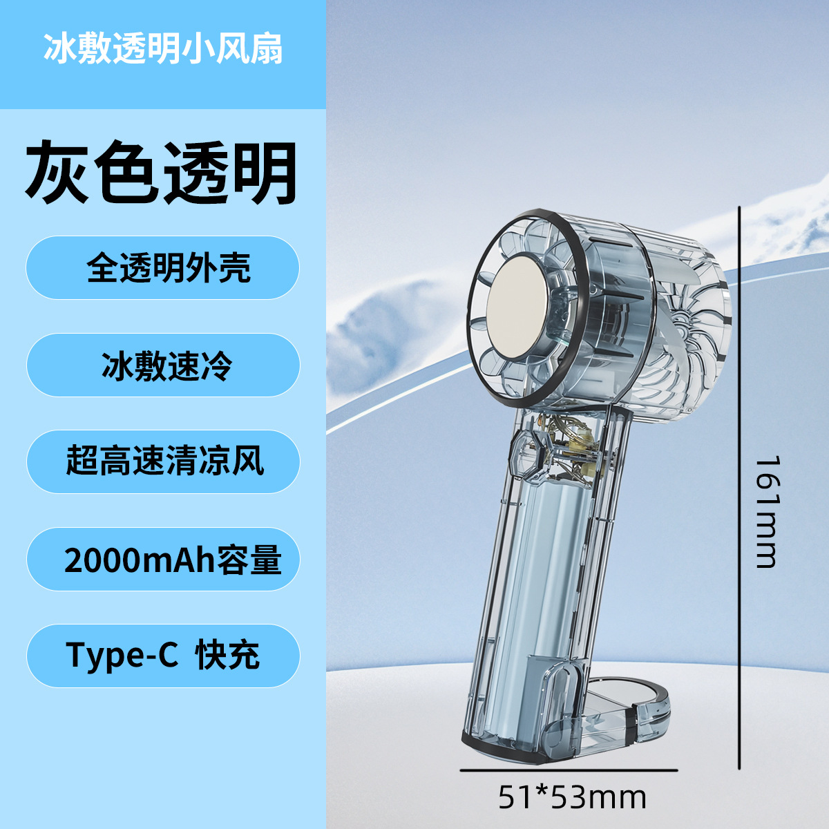 26年跨境新款冰敷透明风扇 USB迷你户外便携涡轮手持登山扣大风力
