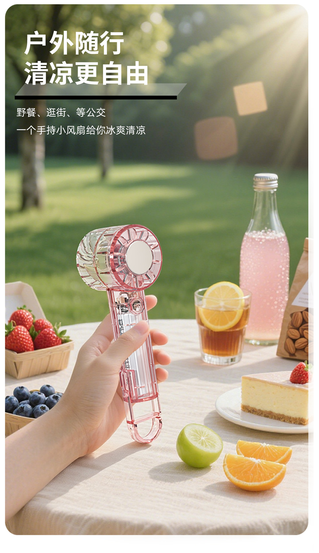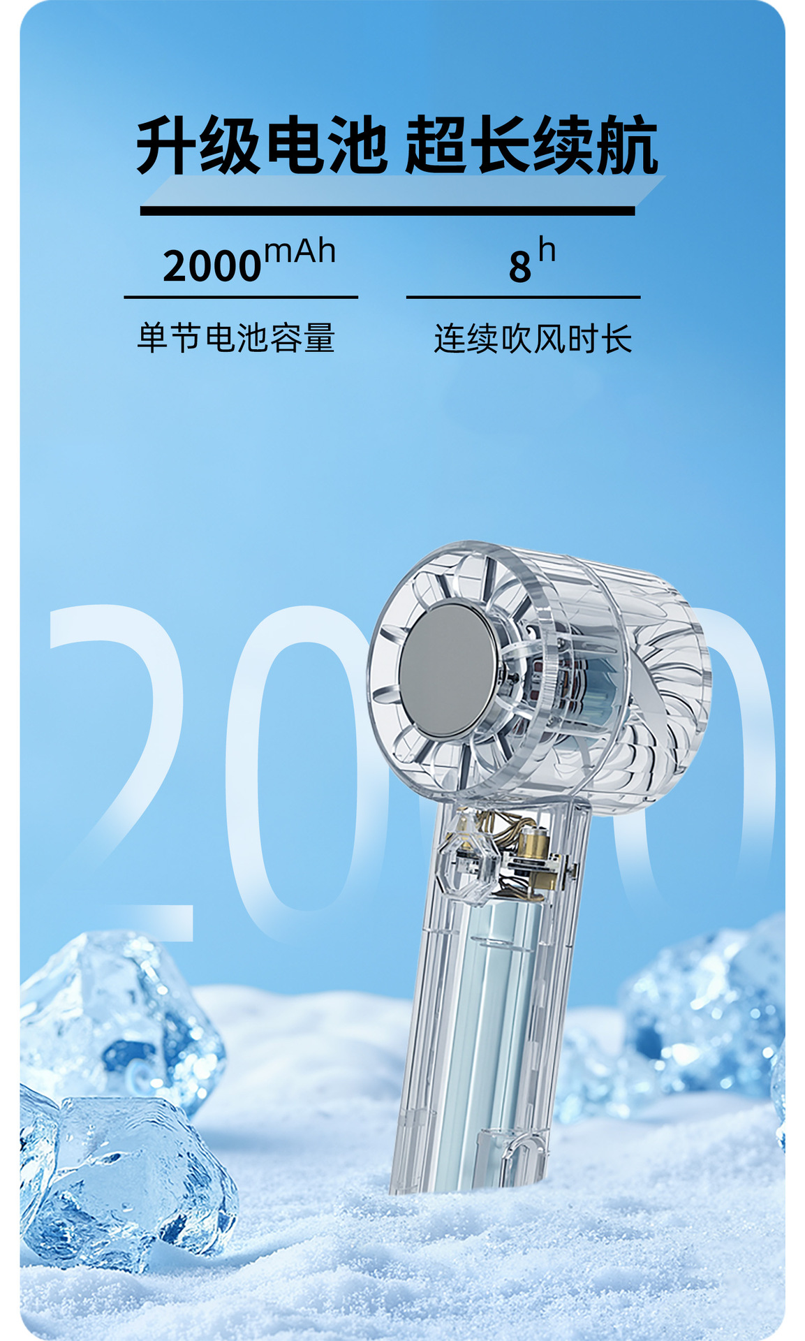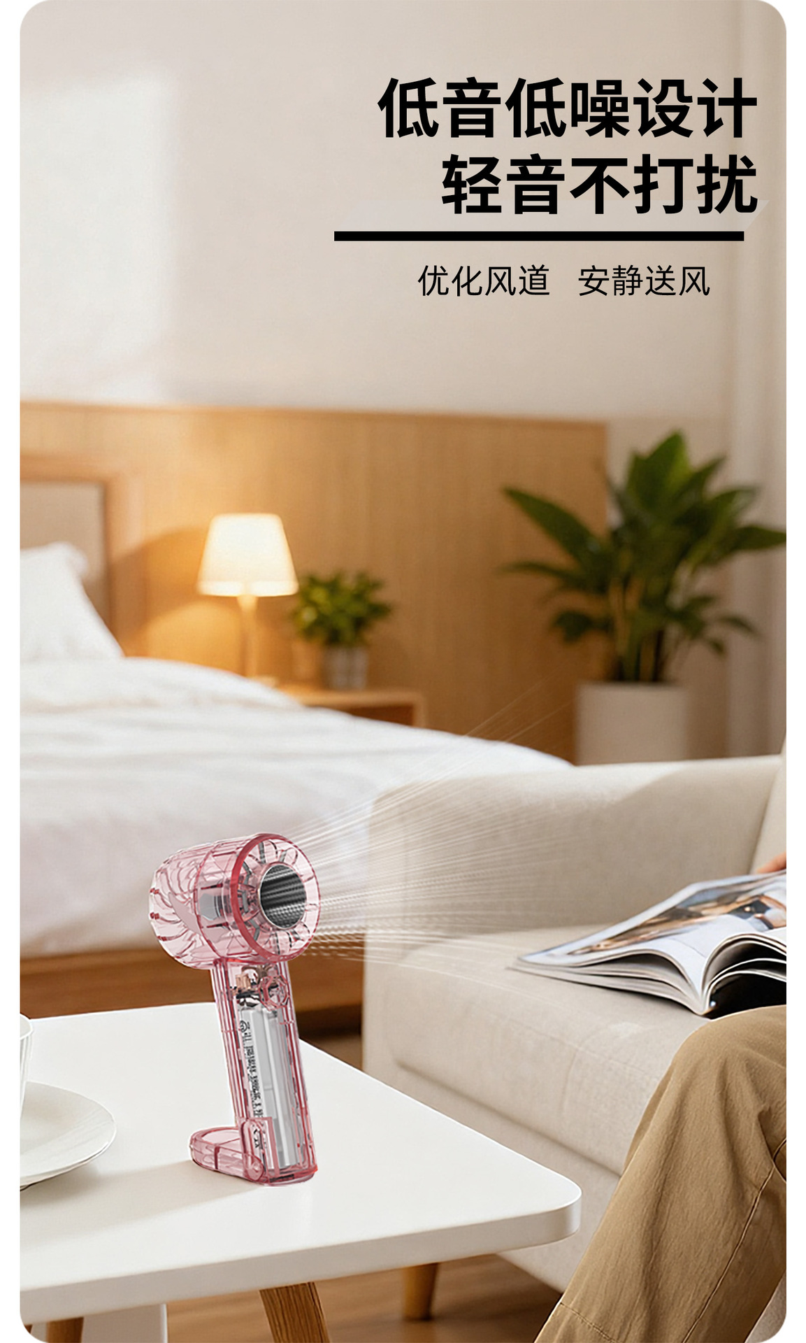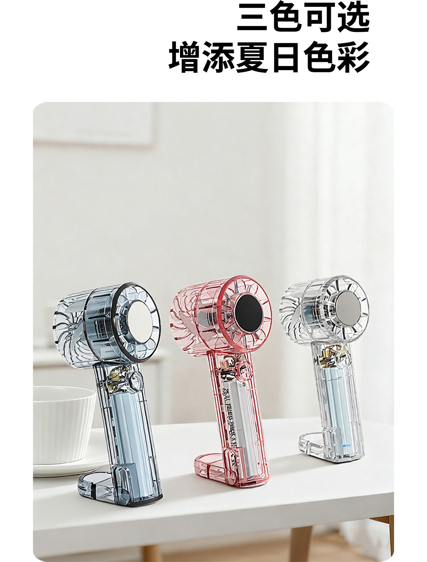 26年跨境新款冰敷透明风扇 USB迷你户外便携涡轮手持登山扣大风力