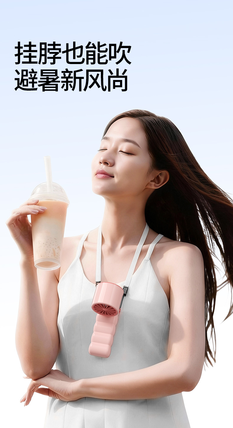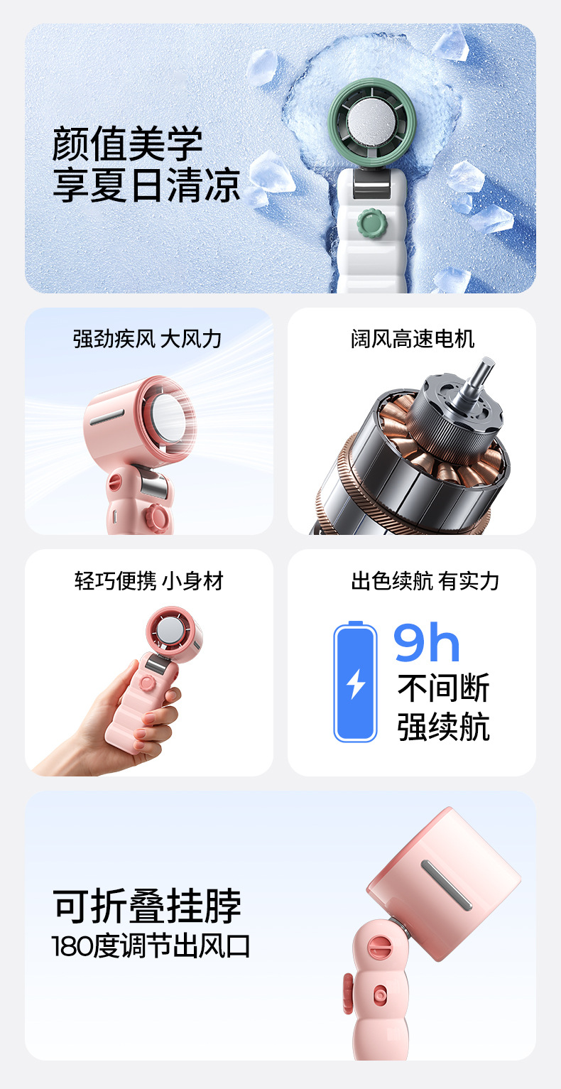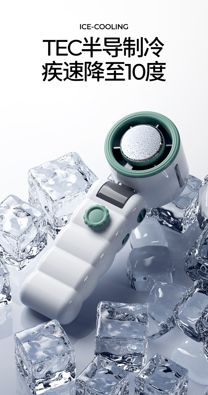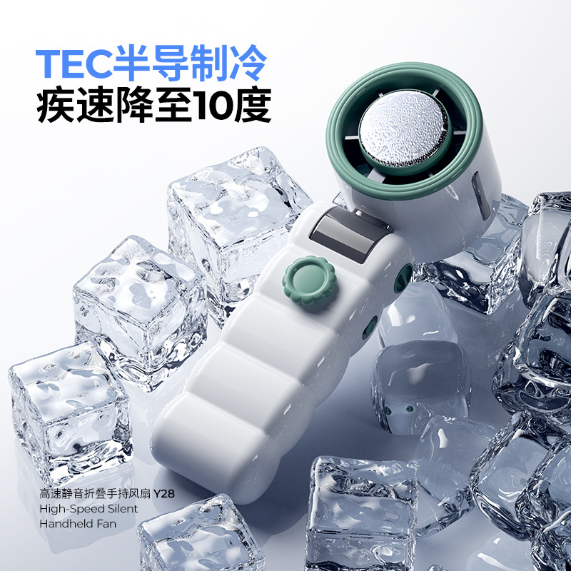 新款跨境高速半导体冰敷手持制冷风扇便携挂脖折叠户外小风扇