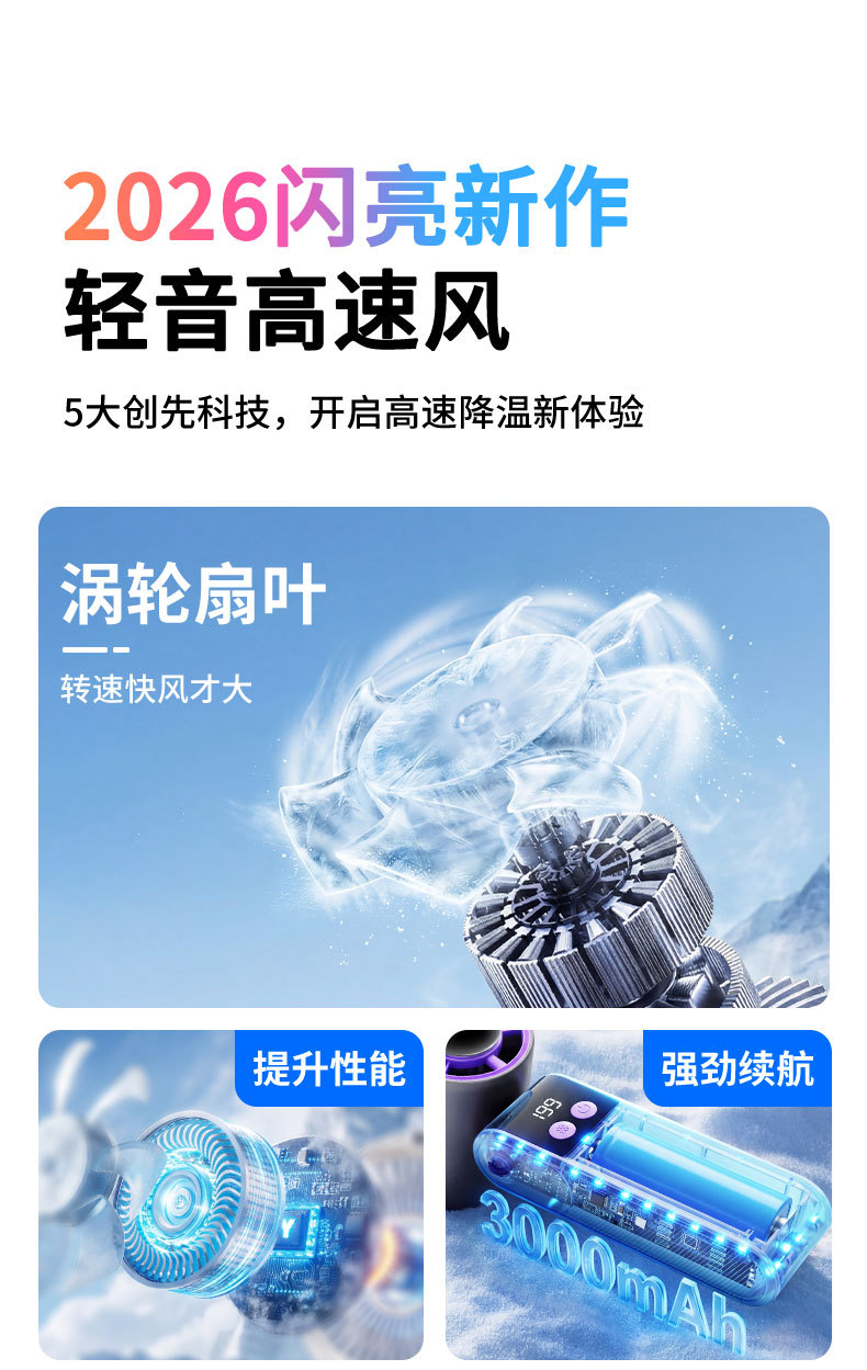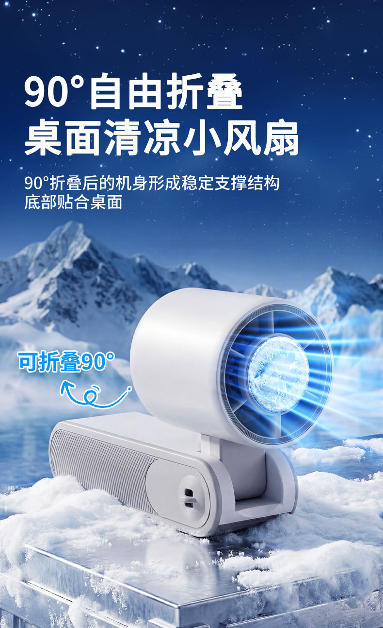2026跨境新款迷你手持桌面折叠风扇高速口袋便携式户外冰敷小风扇
