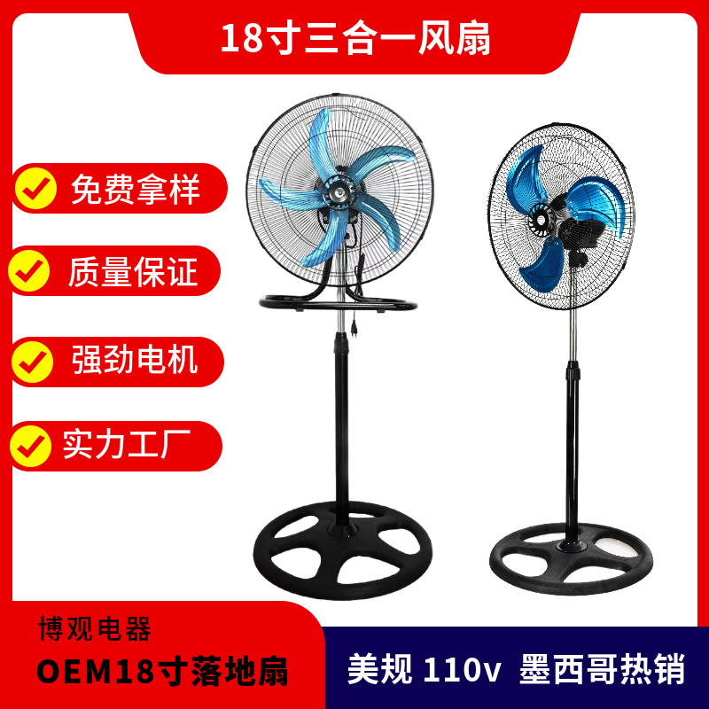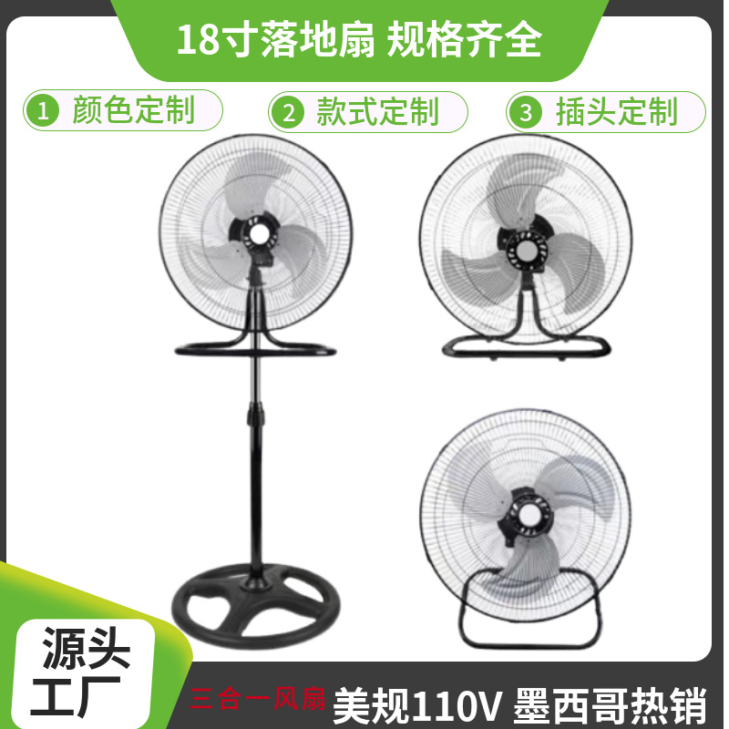 厂家批发18寸三合一电风扇大功率立式摇头落地风扇壁挂扇南美110V
