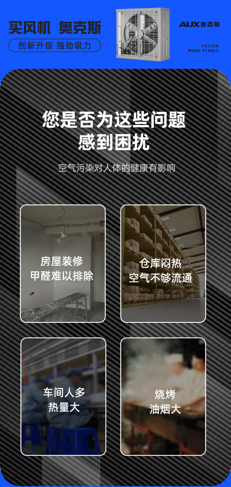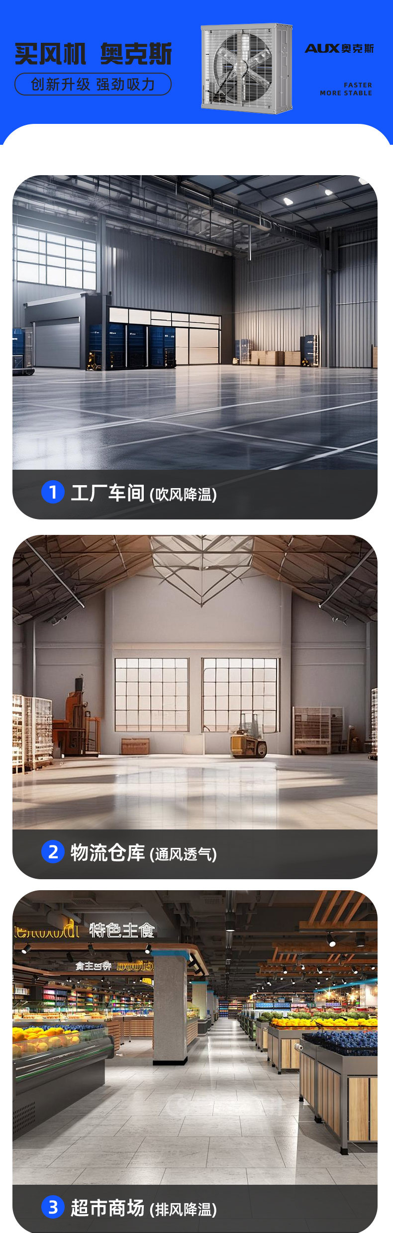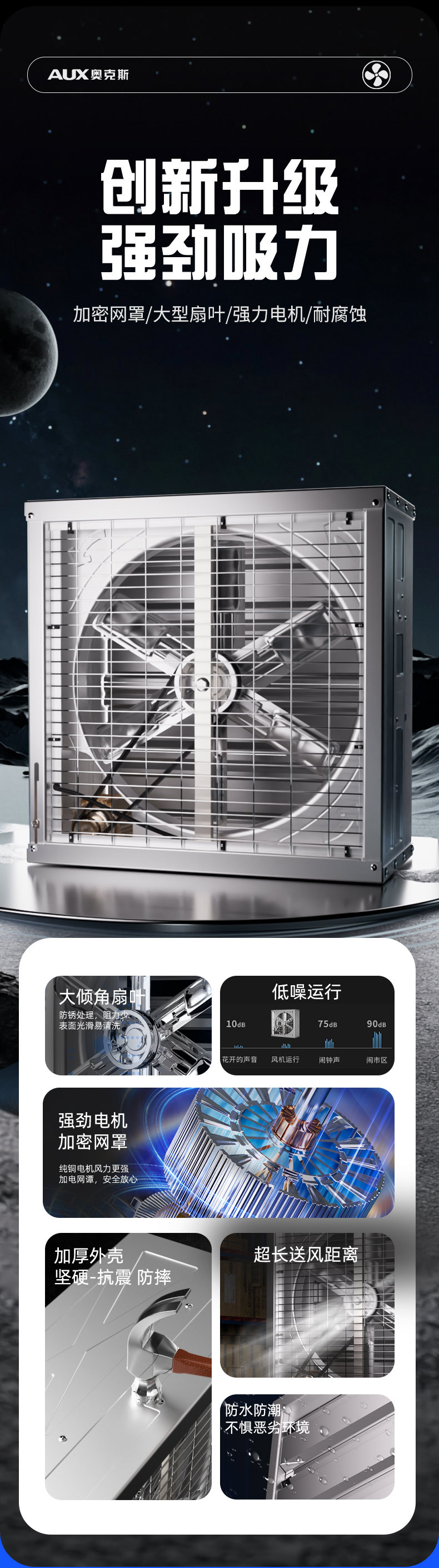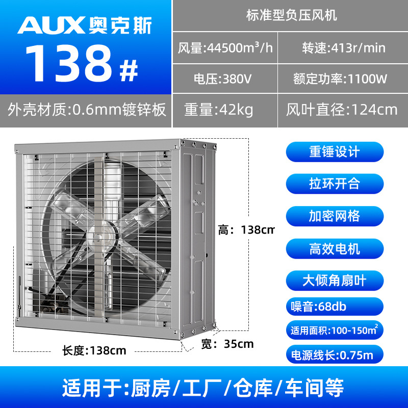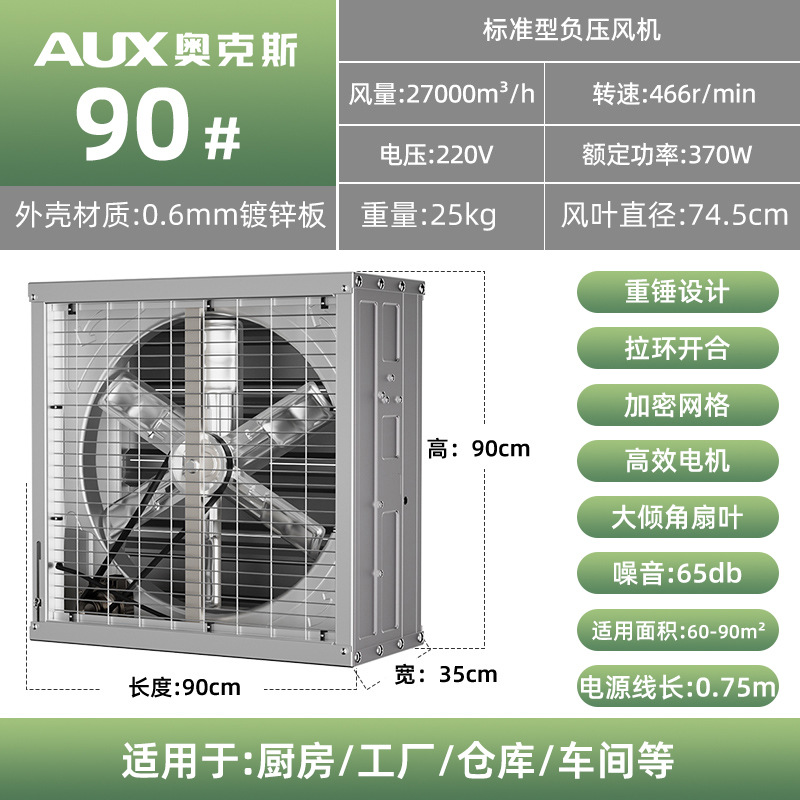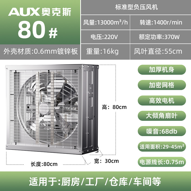 奥克斯工业排气扇换气扇工厂车间排风扇强力负压风机抽风机大功率