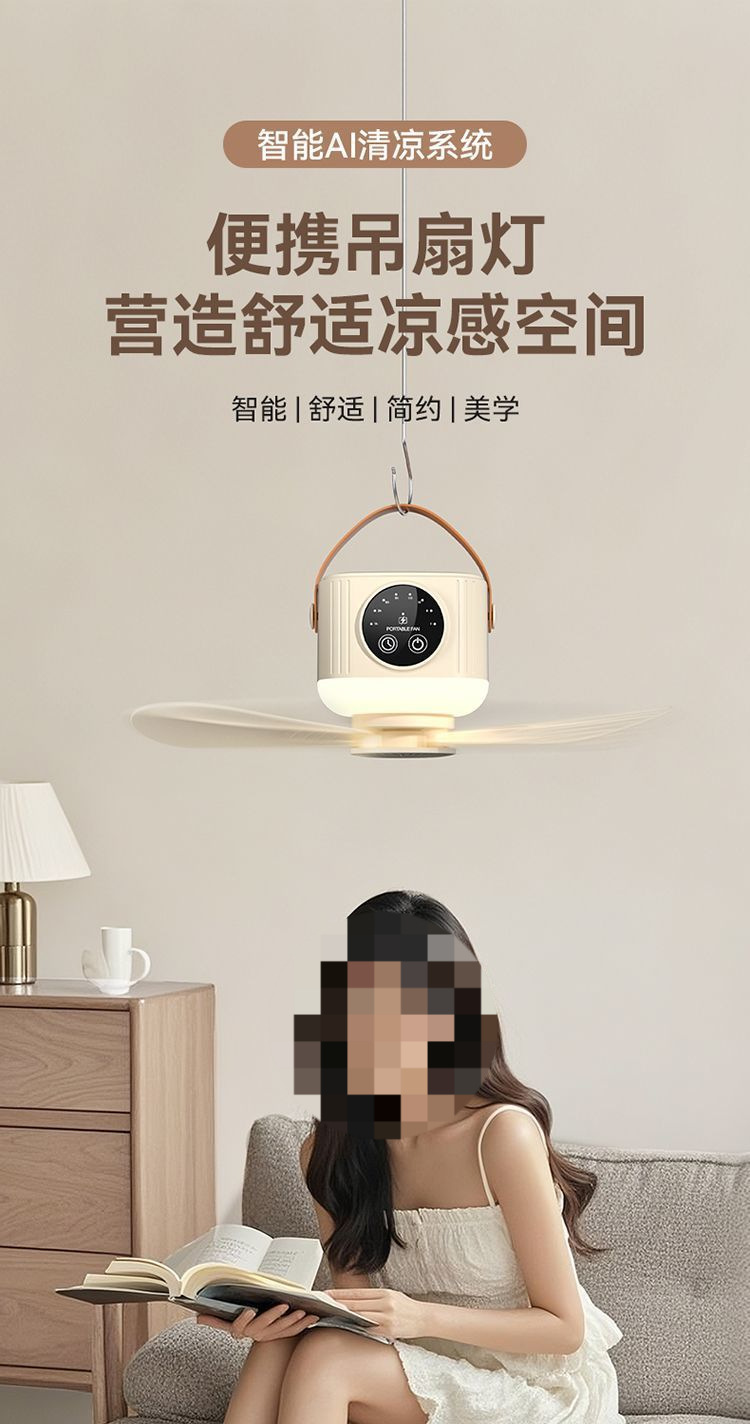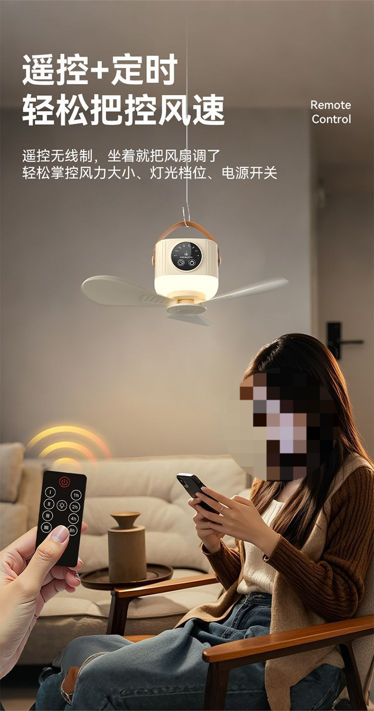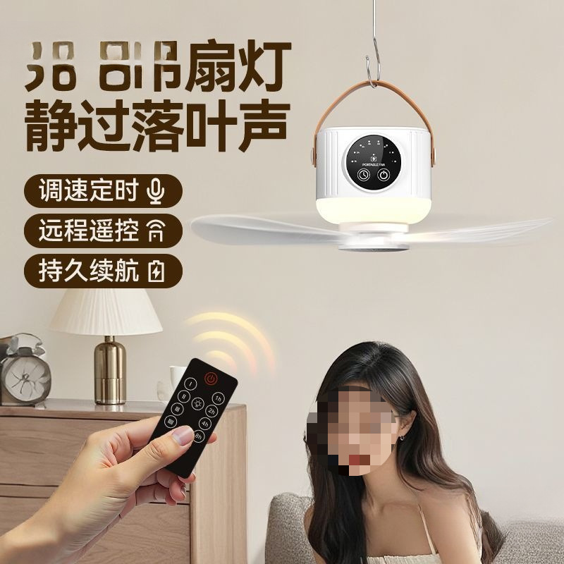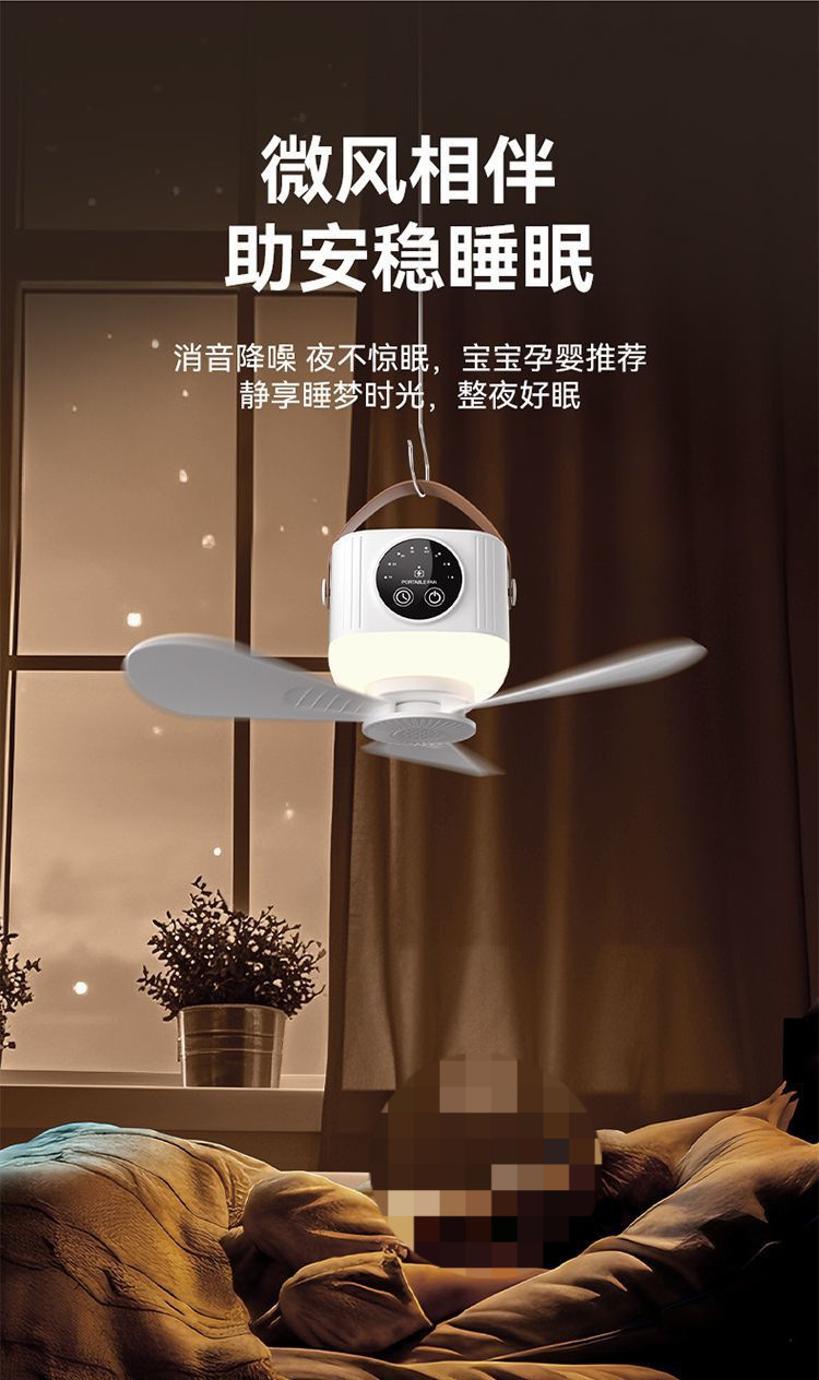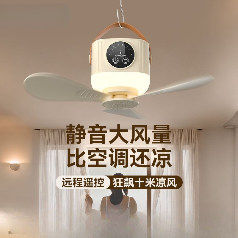 智能遥控可充电小夜灯小吊扇宿舍床上学生寝室家用小型usb小风扇
