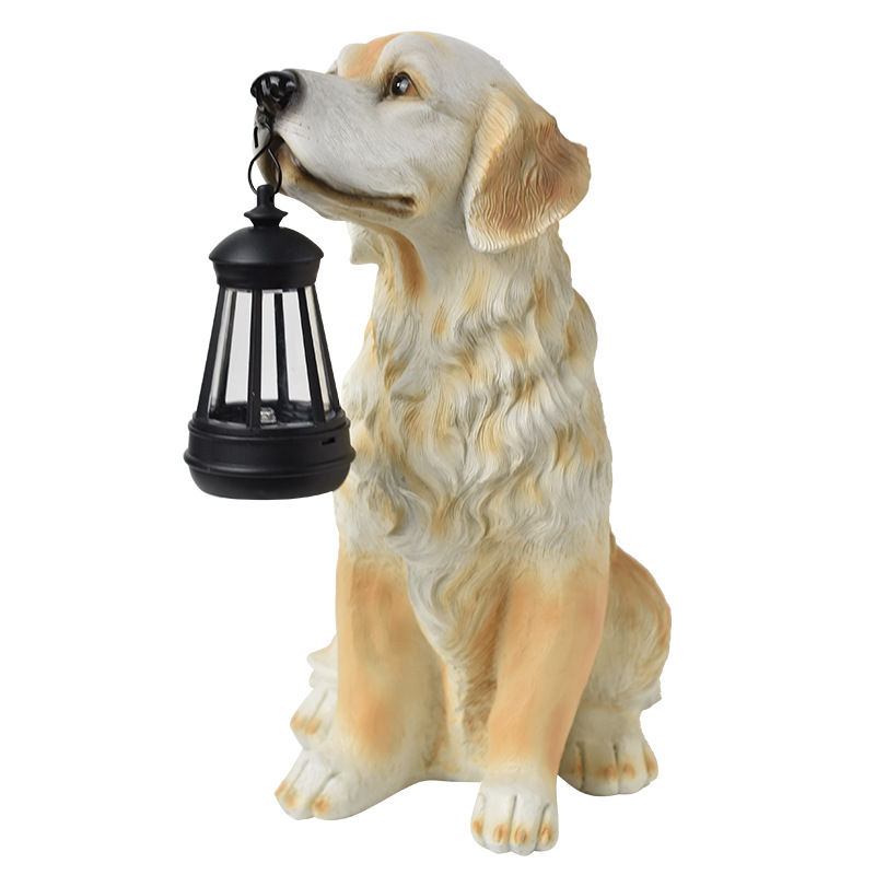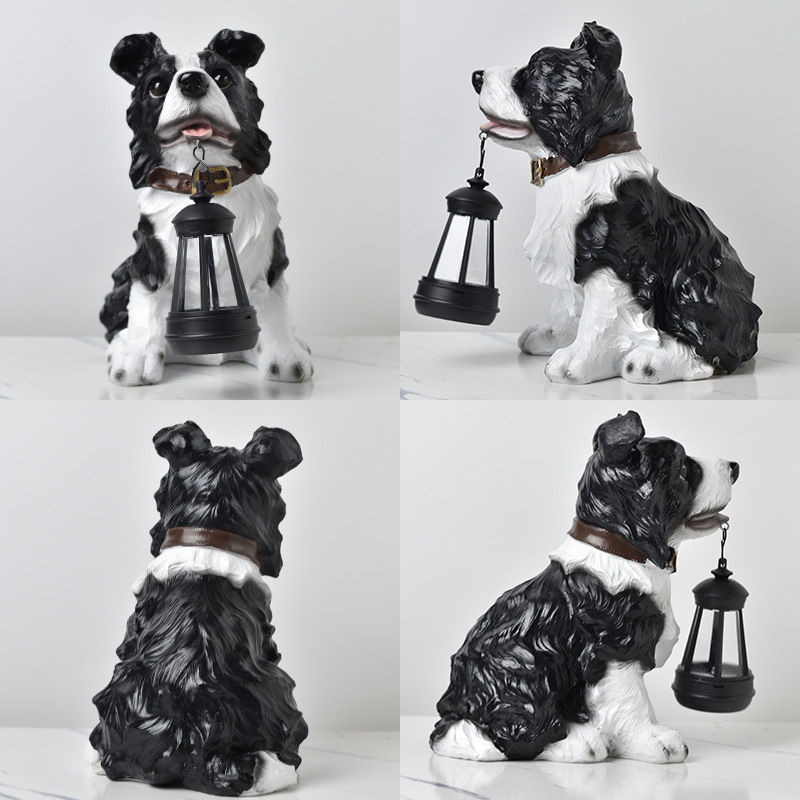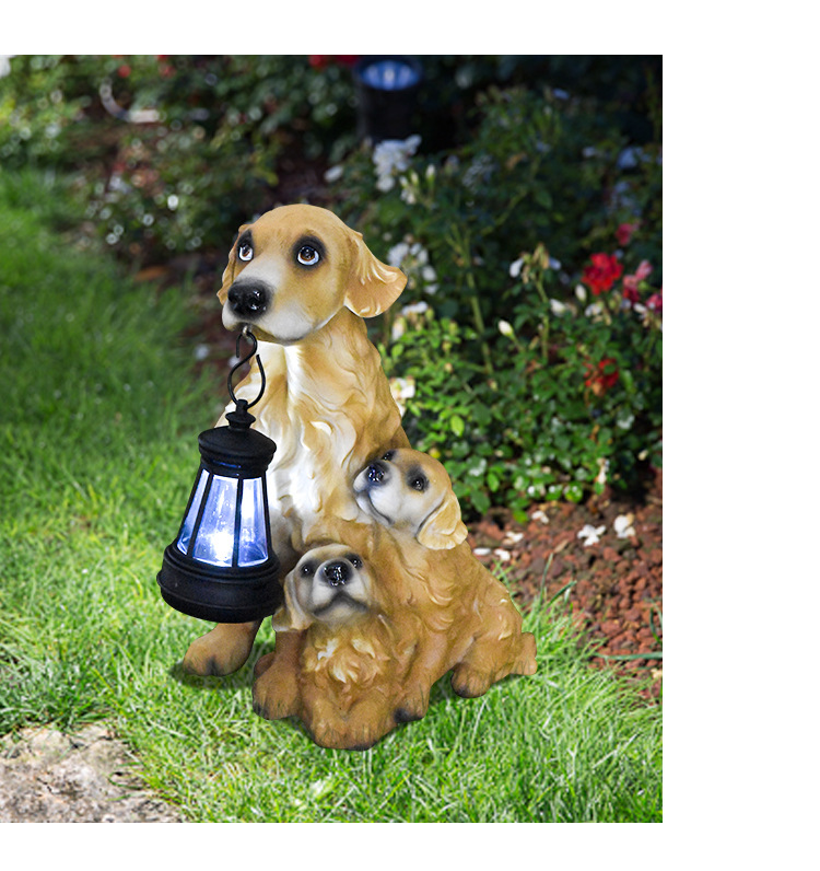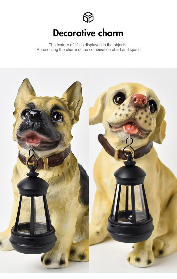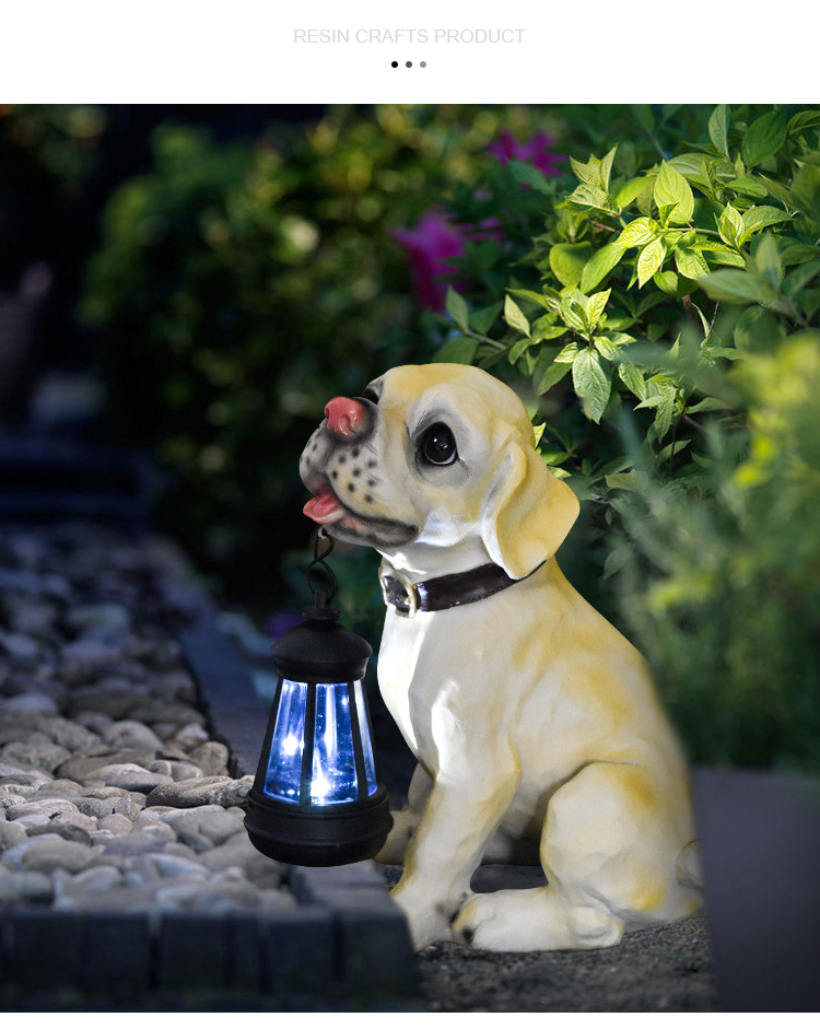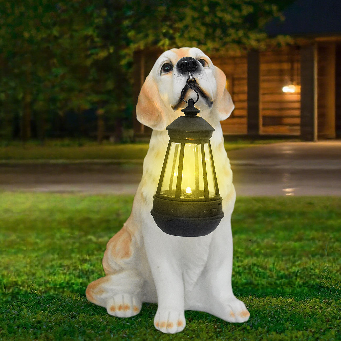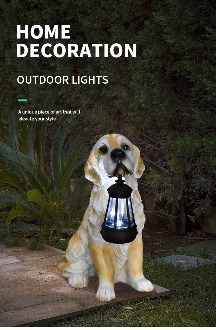 跨境叼灯小狗树脂太阳能户外灯家居庭院走廊路径花园雕像装饰摆件