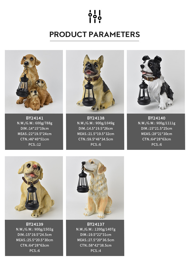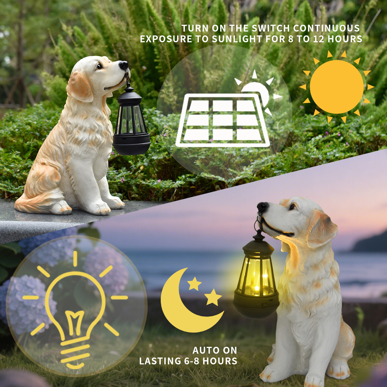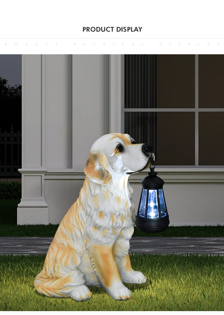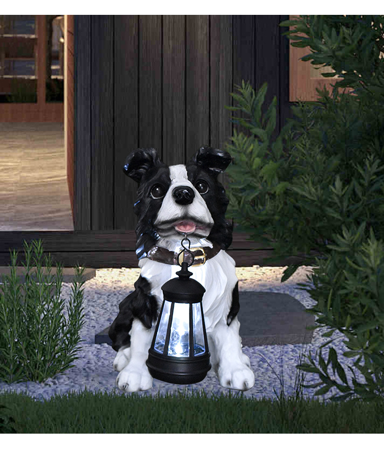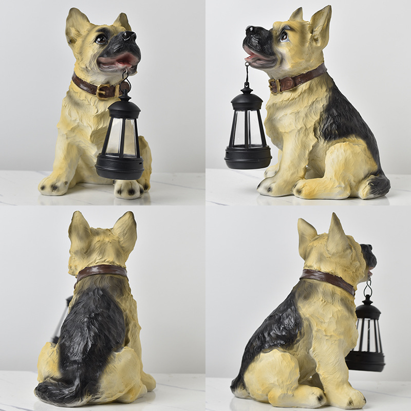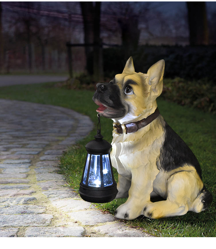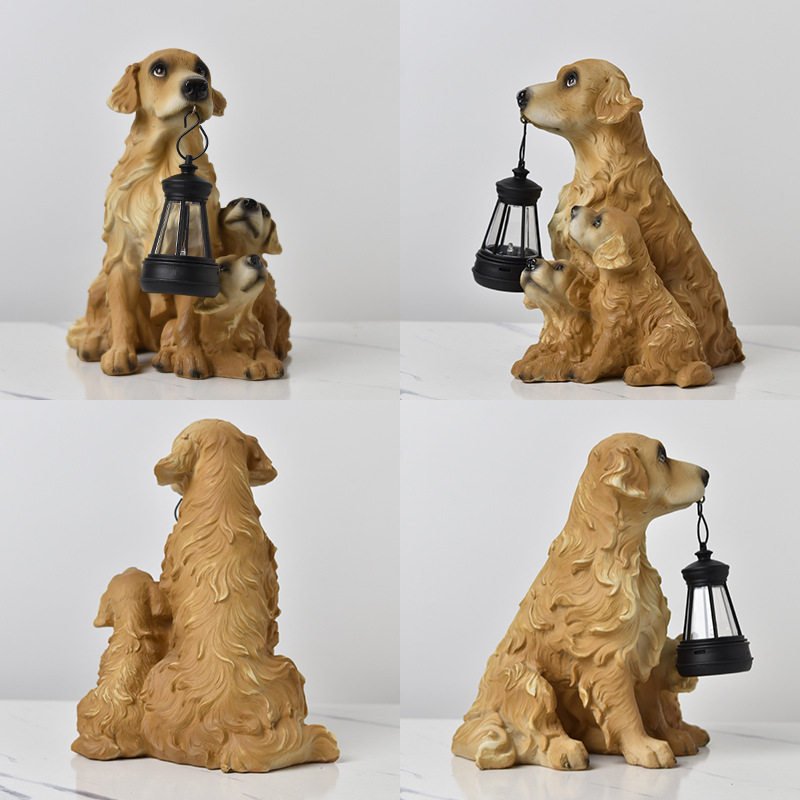 跨境叼灯小狗树脂太阳能户外灯家居庭院走廊路径花园雕像装饰摆件