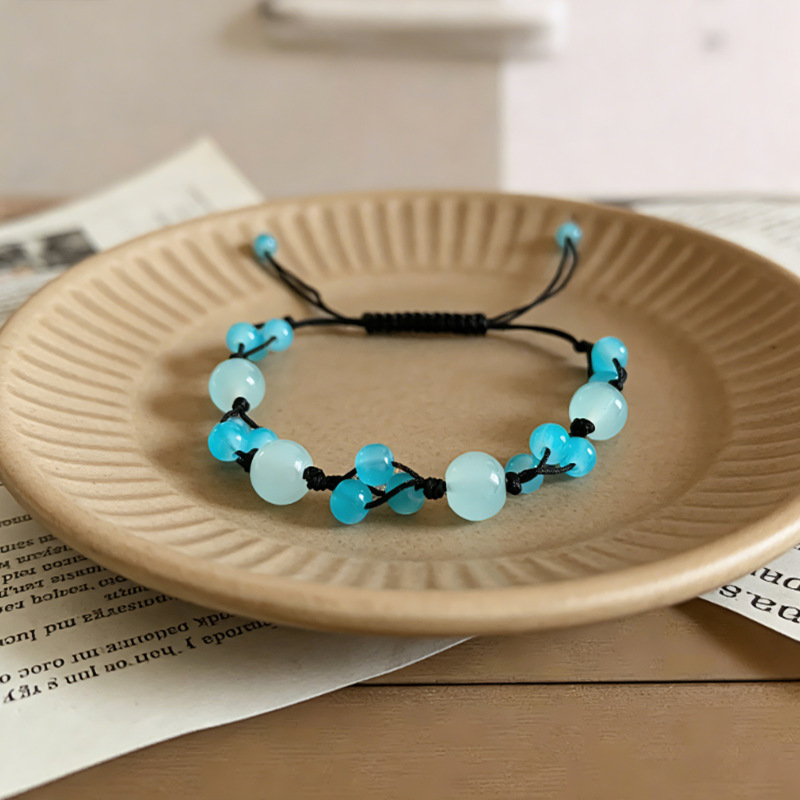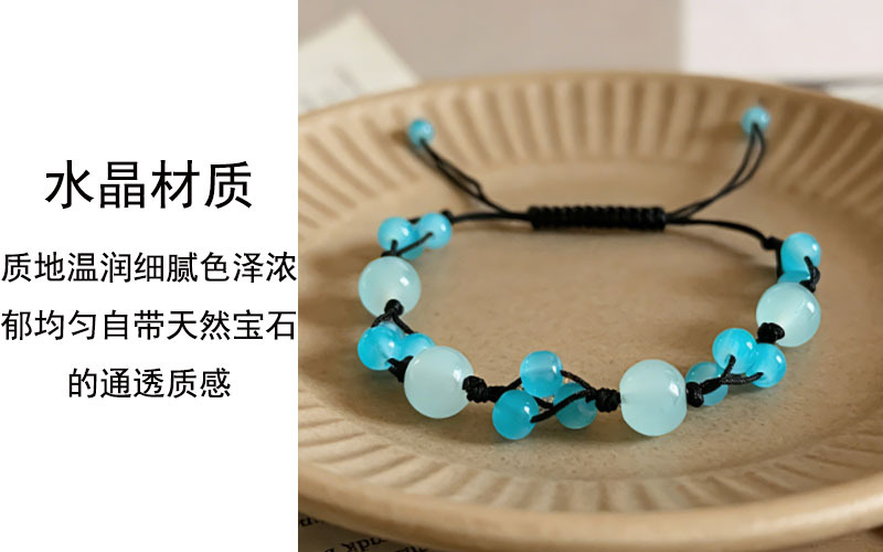 亚马逊爆款6mm水晶编织绳串珠手链天然石手链双层手工饰品现货