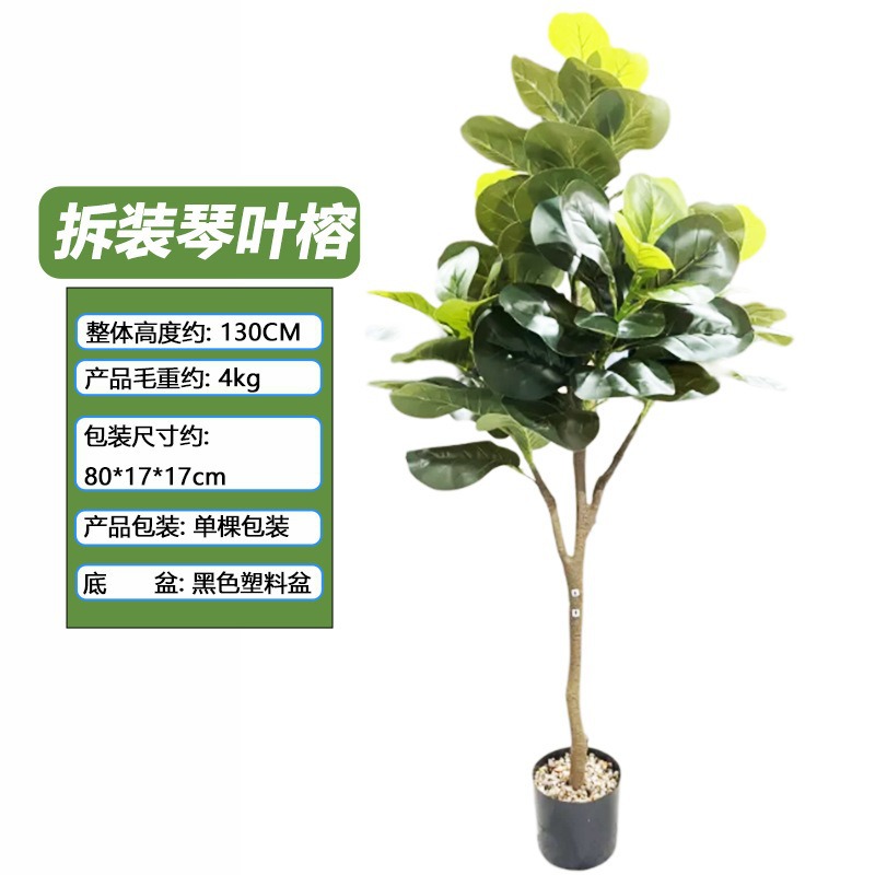 跨境拆装款仿真琴叶榕橱窗客厅室内摆件装饰造景仿真琴叶榕盆栽