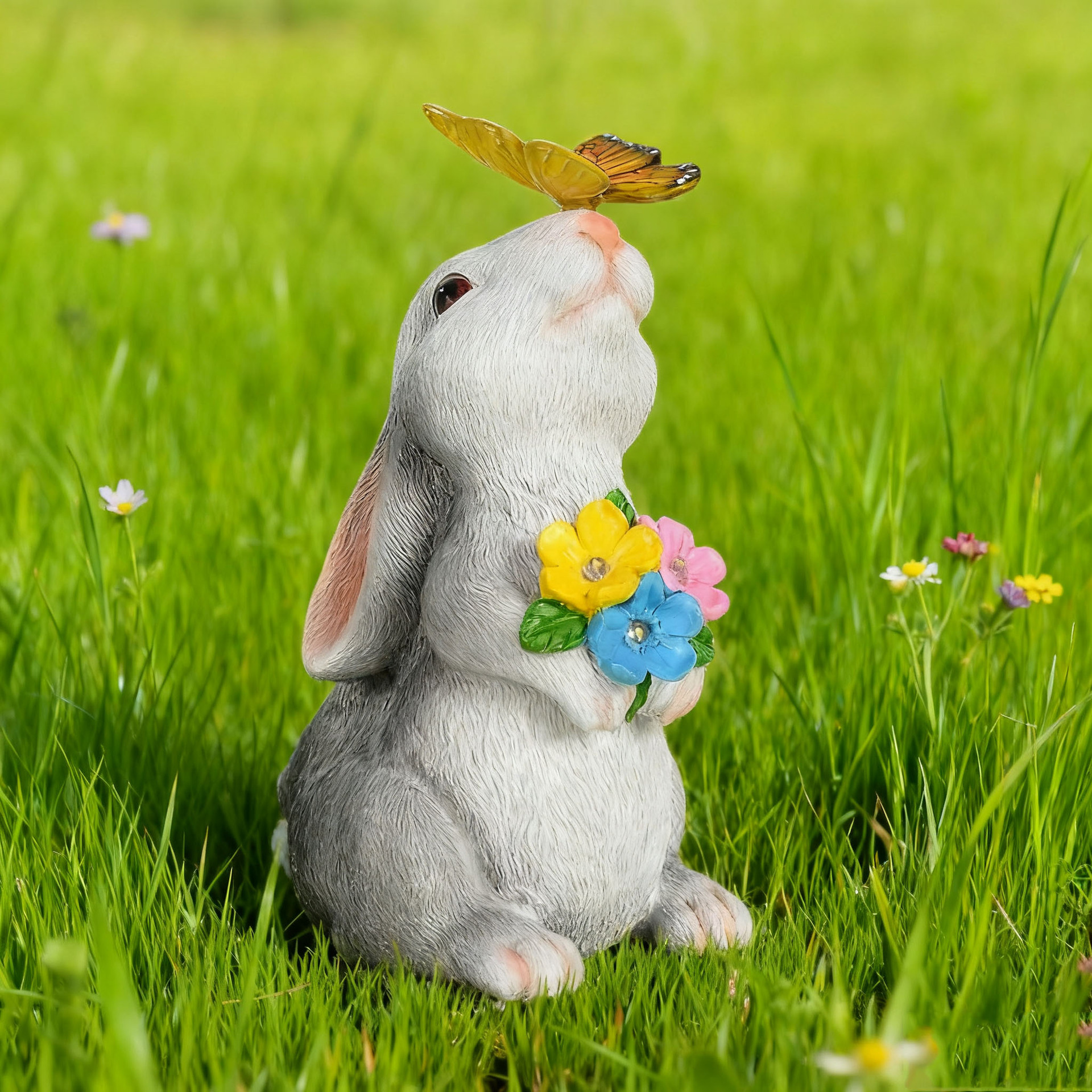 跨境新款动物摆件阳台院子花园景观装饰树脂捧花蝴蝶灯兔子工艺品