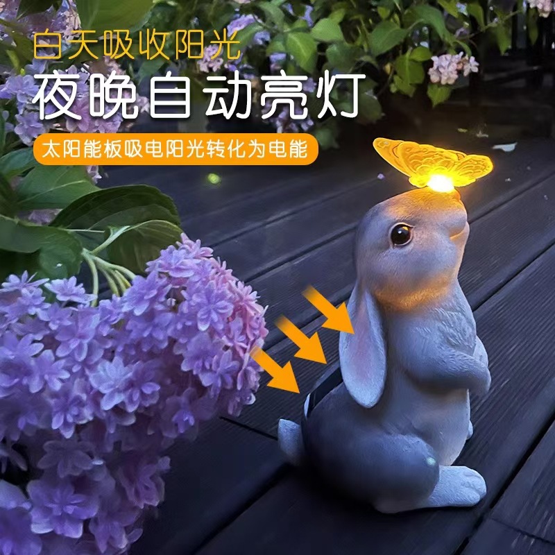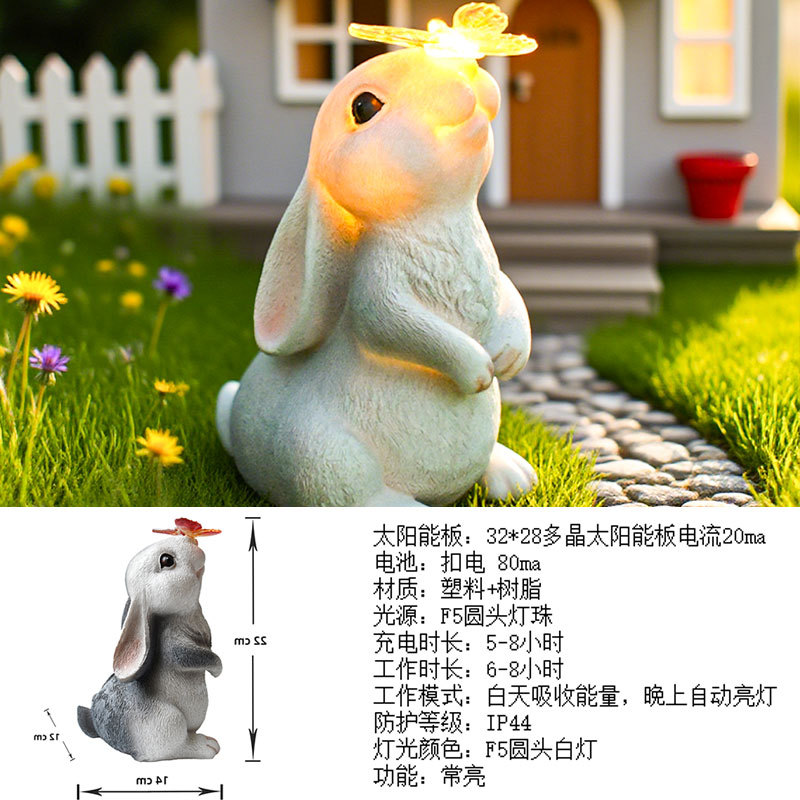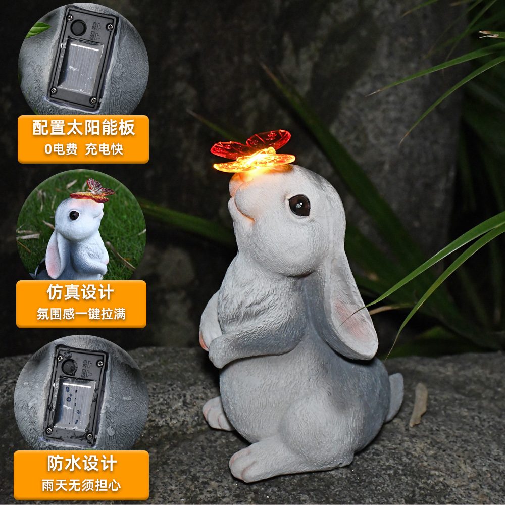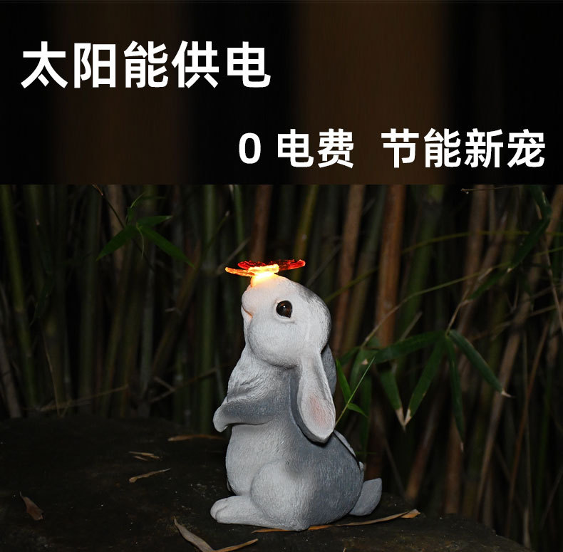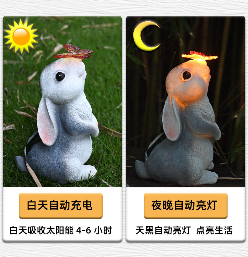 树脂蝴蝶兔子摆件太阳能灯户外庭院花园装饰草坪室外雕像动物摆件