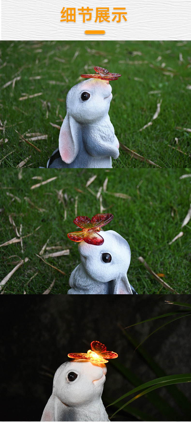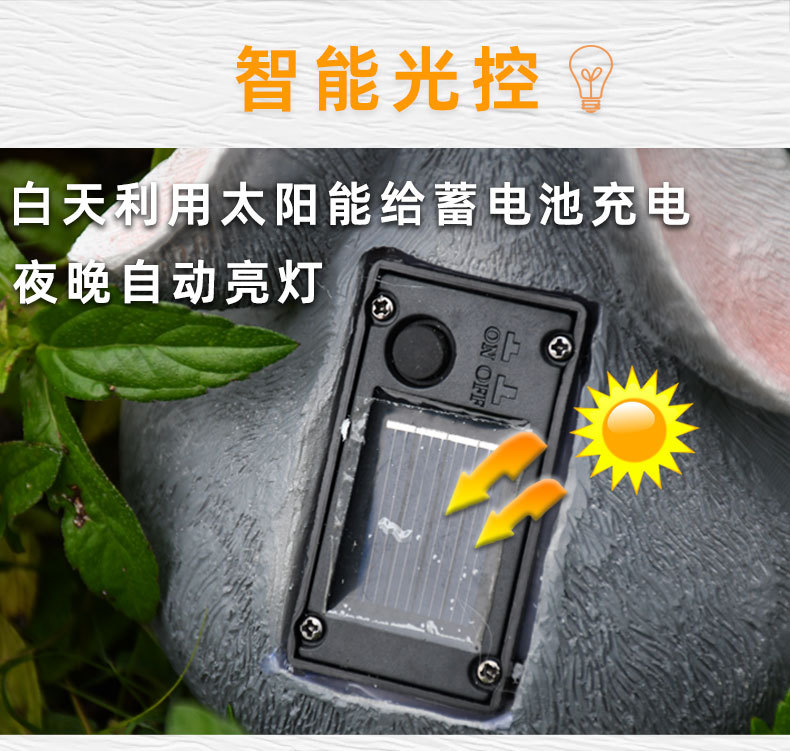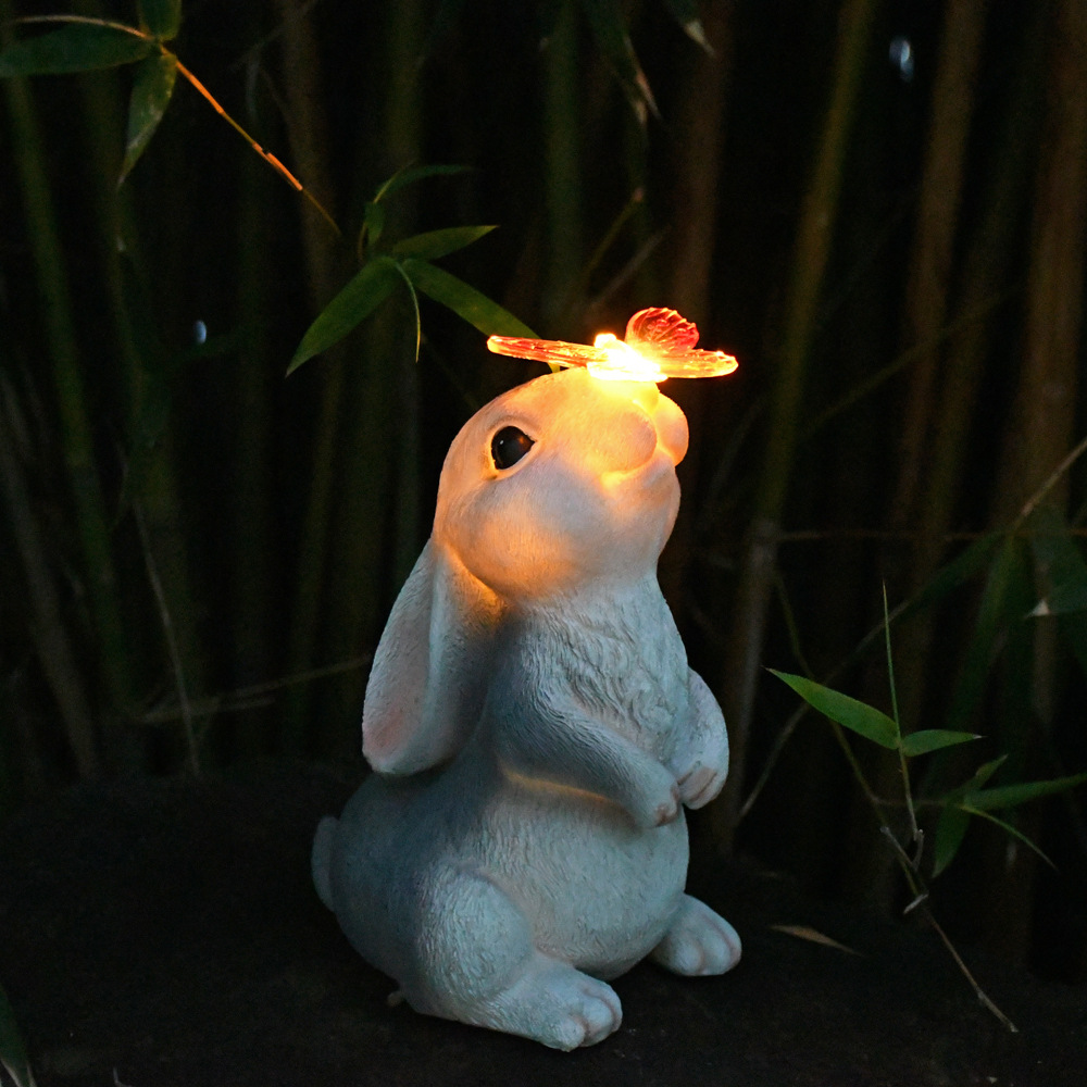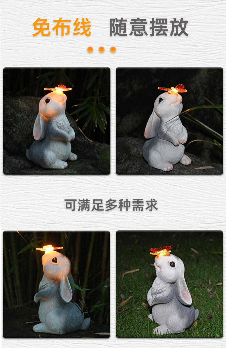 树脂蝴蝶兔子摆件太阳能灯户外庭院花园装饰草坪室外雕像动物摆件