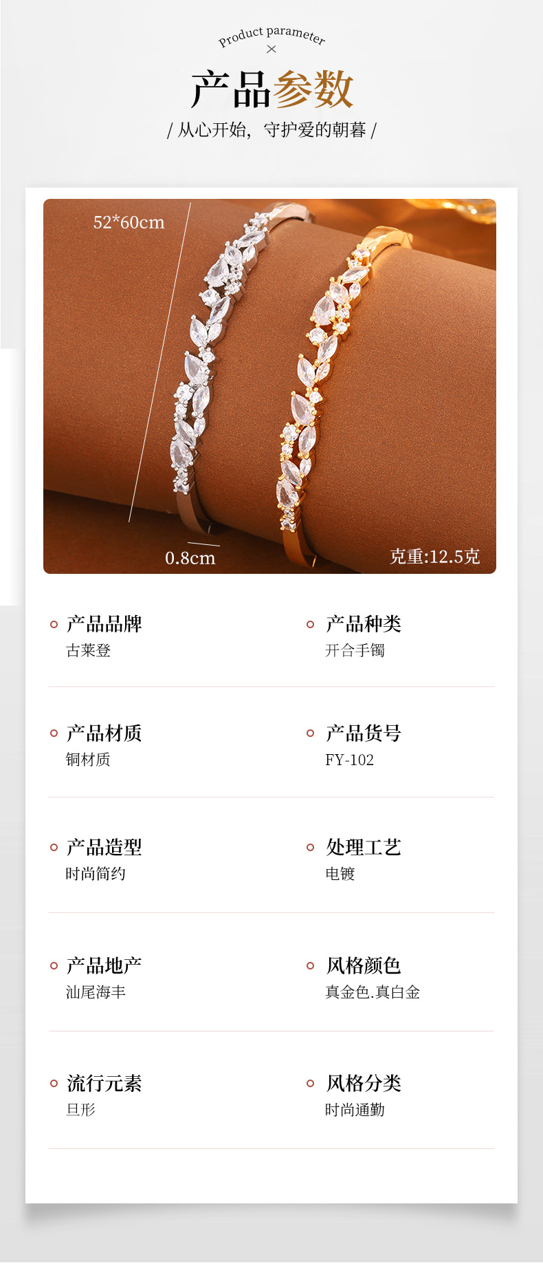 欧美几何开合手镯 电镀时尚简约通勤手饰 轻奢高级感旦形饰品批发