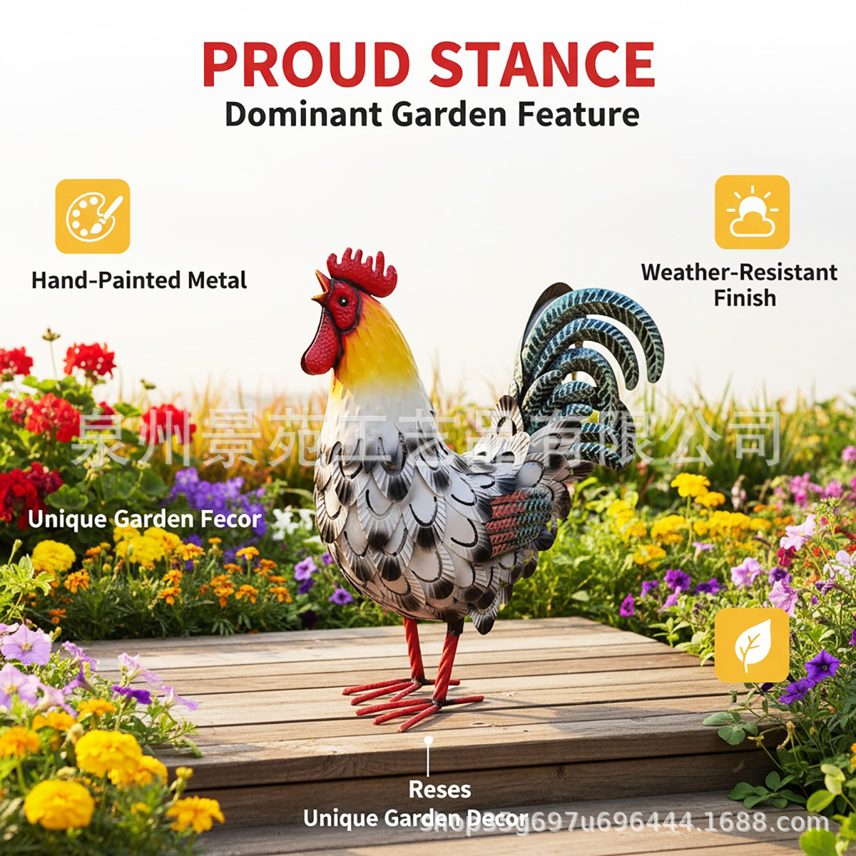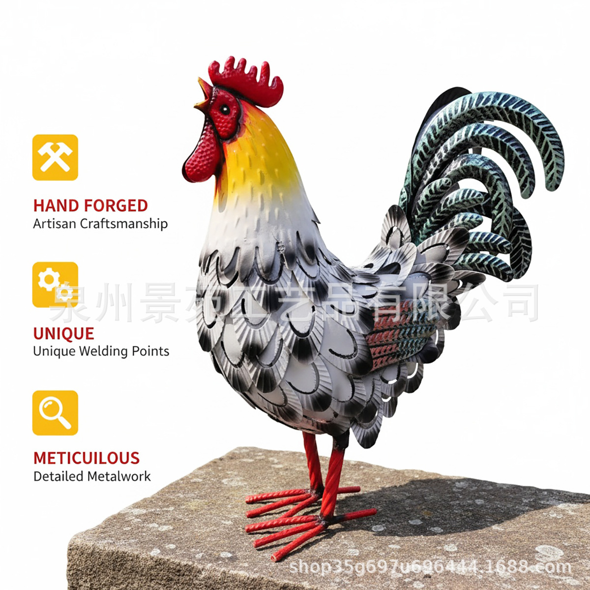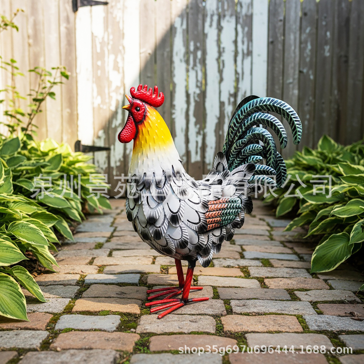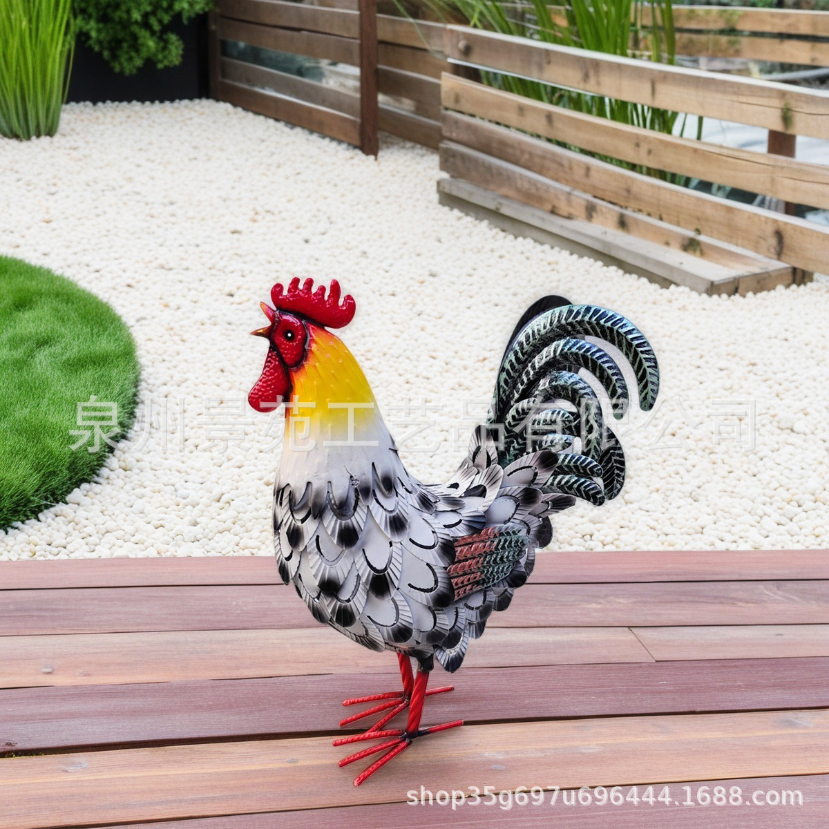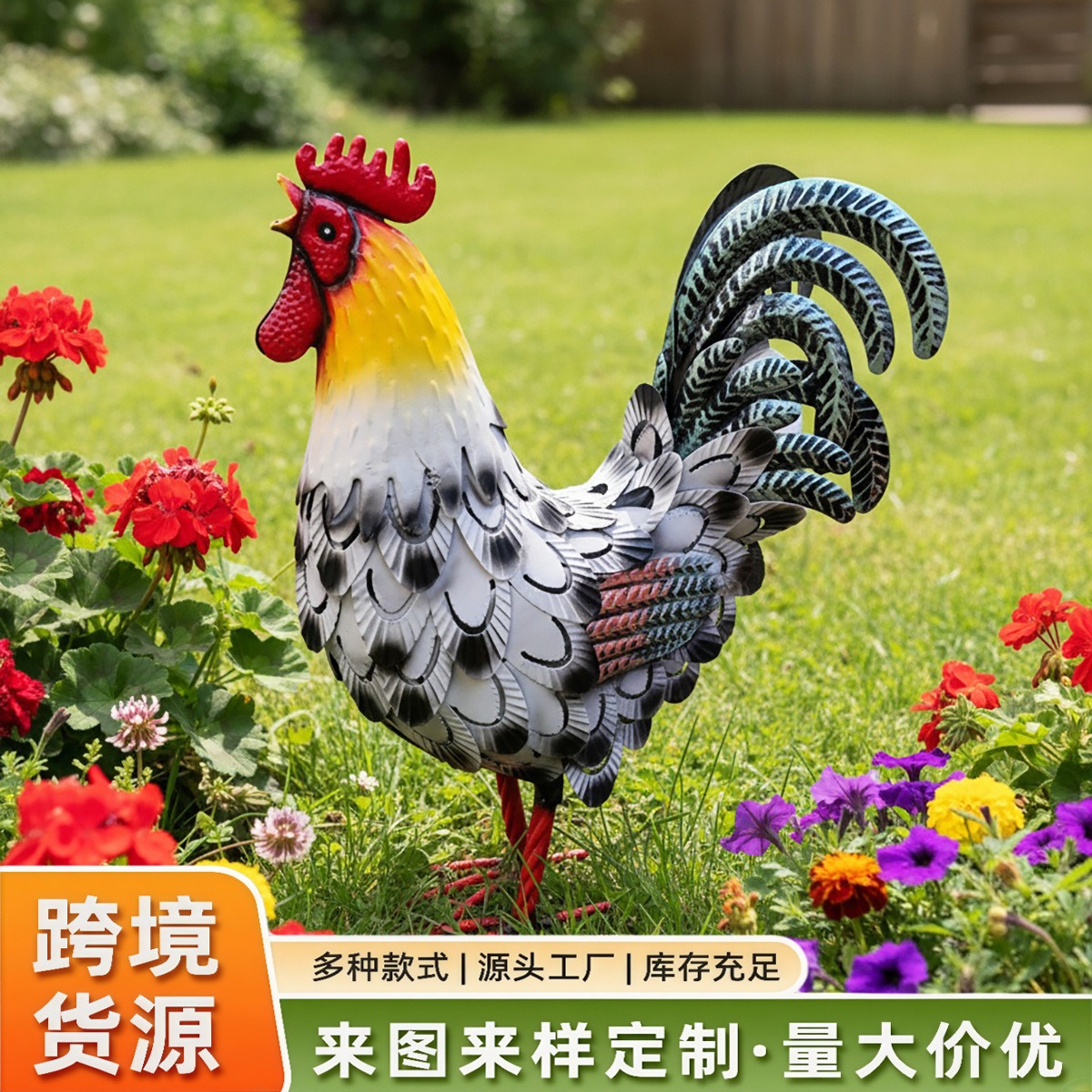 跨境铁艺立体动物雕塑户外庭院花园摆件仿真公鸡装饰金属工艺品