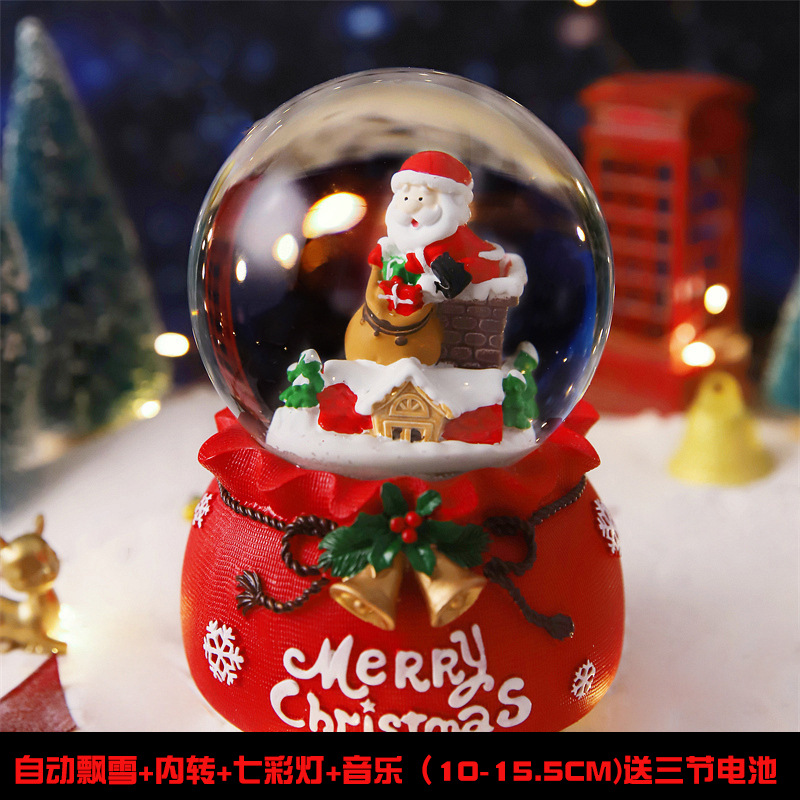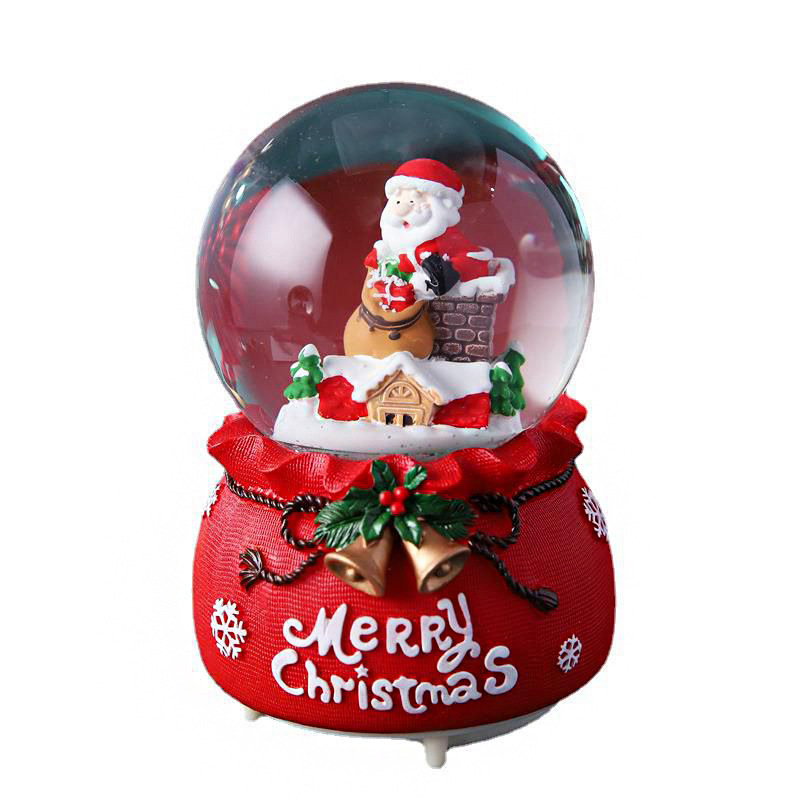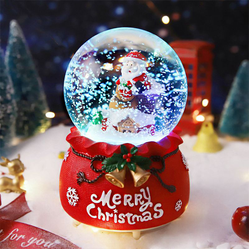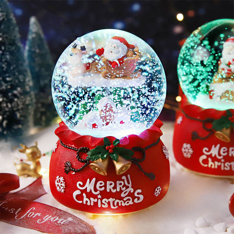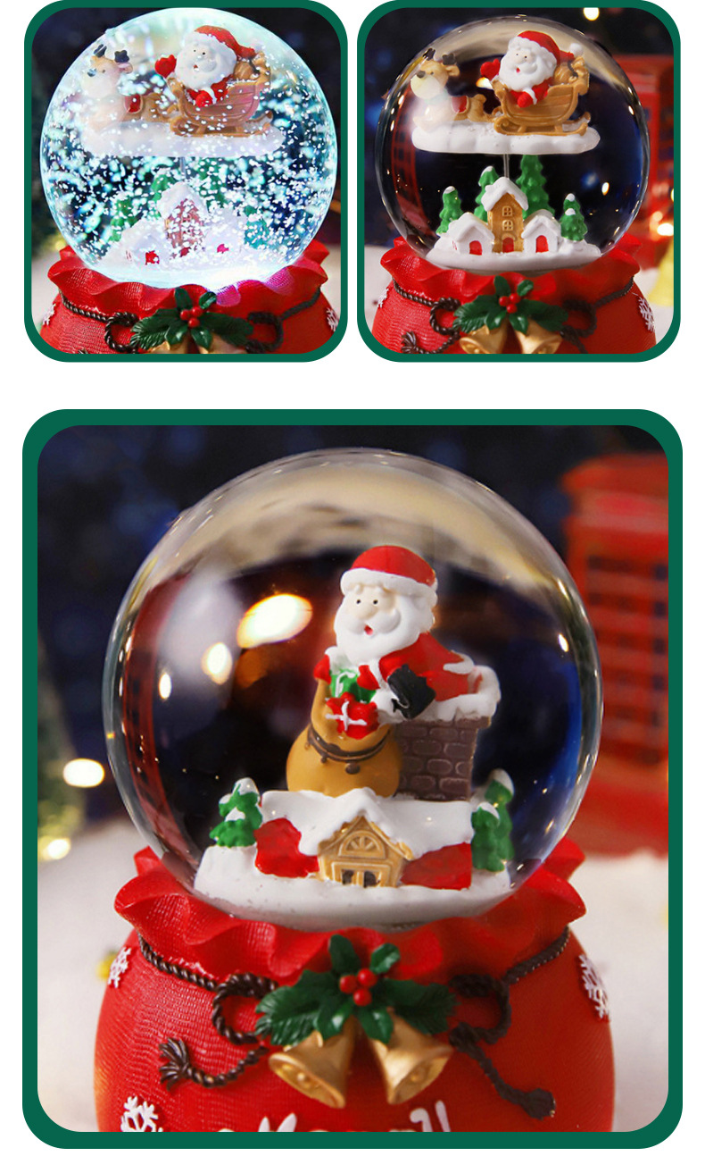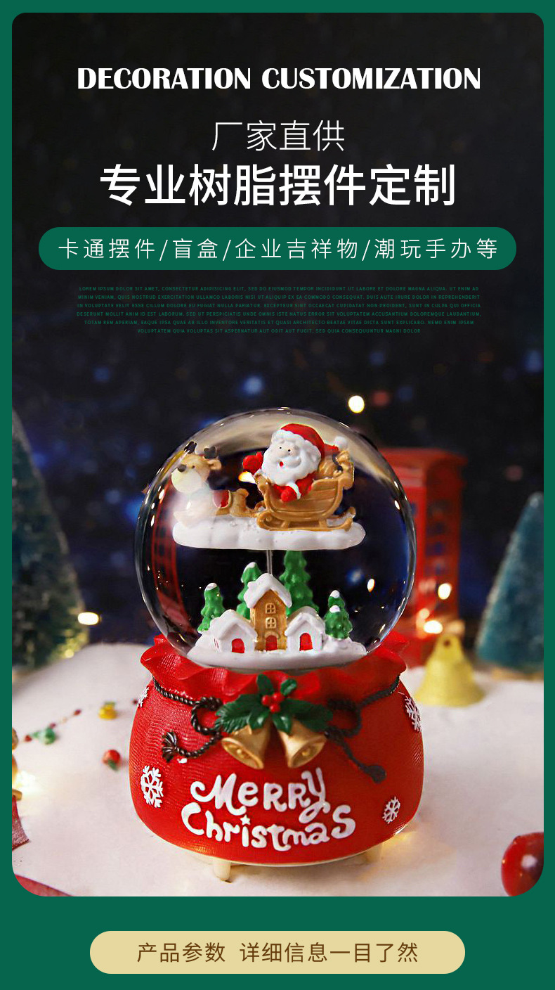 创意音乐雪橇圣诞老人水晶球桌面摆件飘雪水球家居客厅装饰品批发