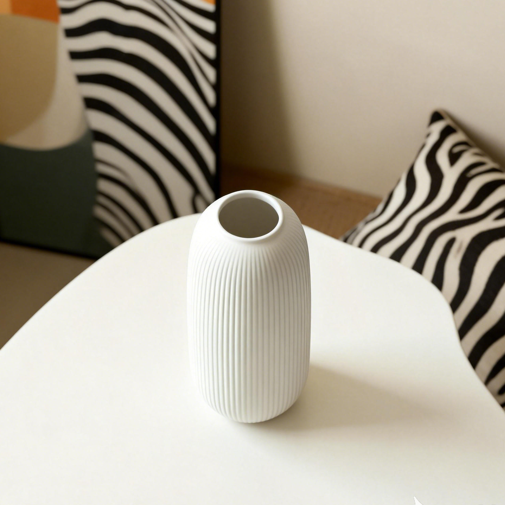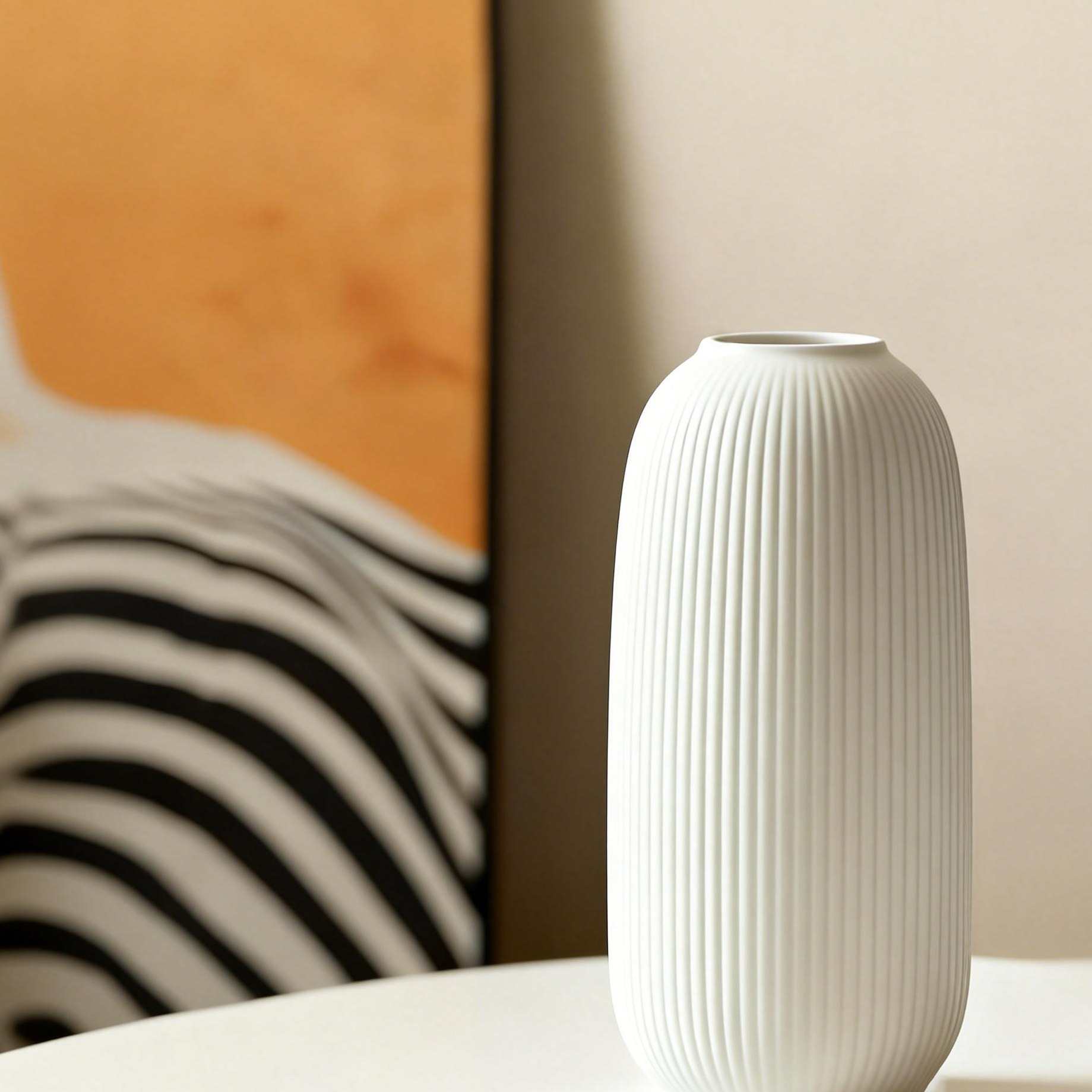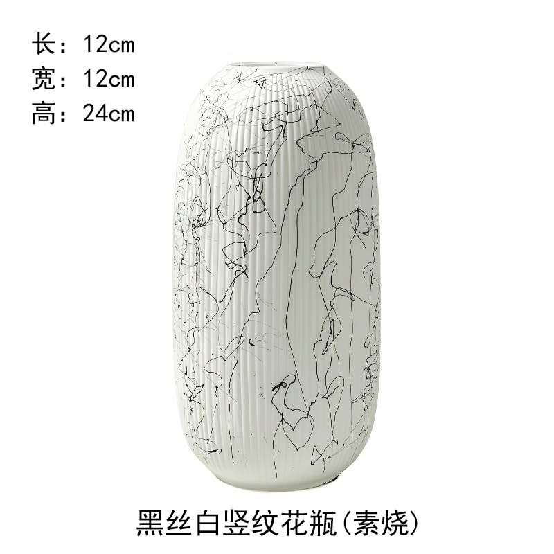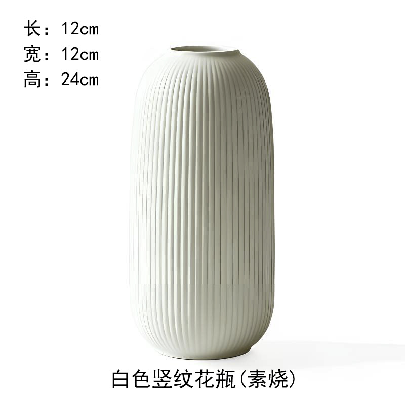 简约竖纹陶瓷花瓶现代简约高级感家用干花仿真花花器插花装饰摆件
