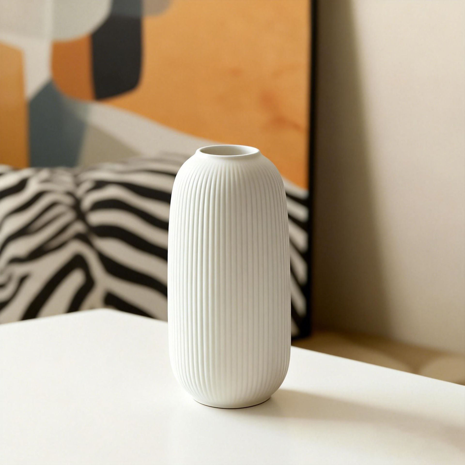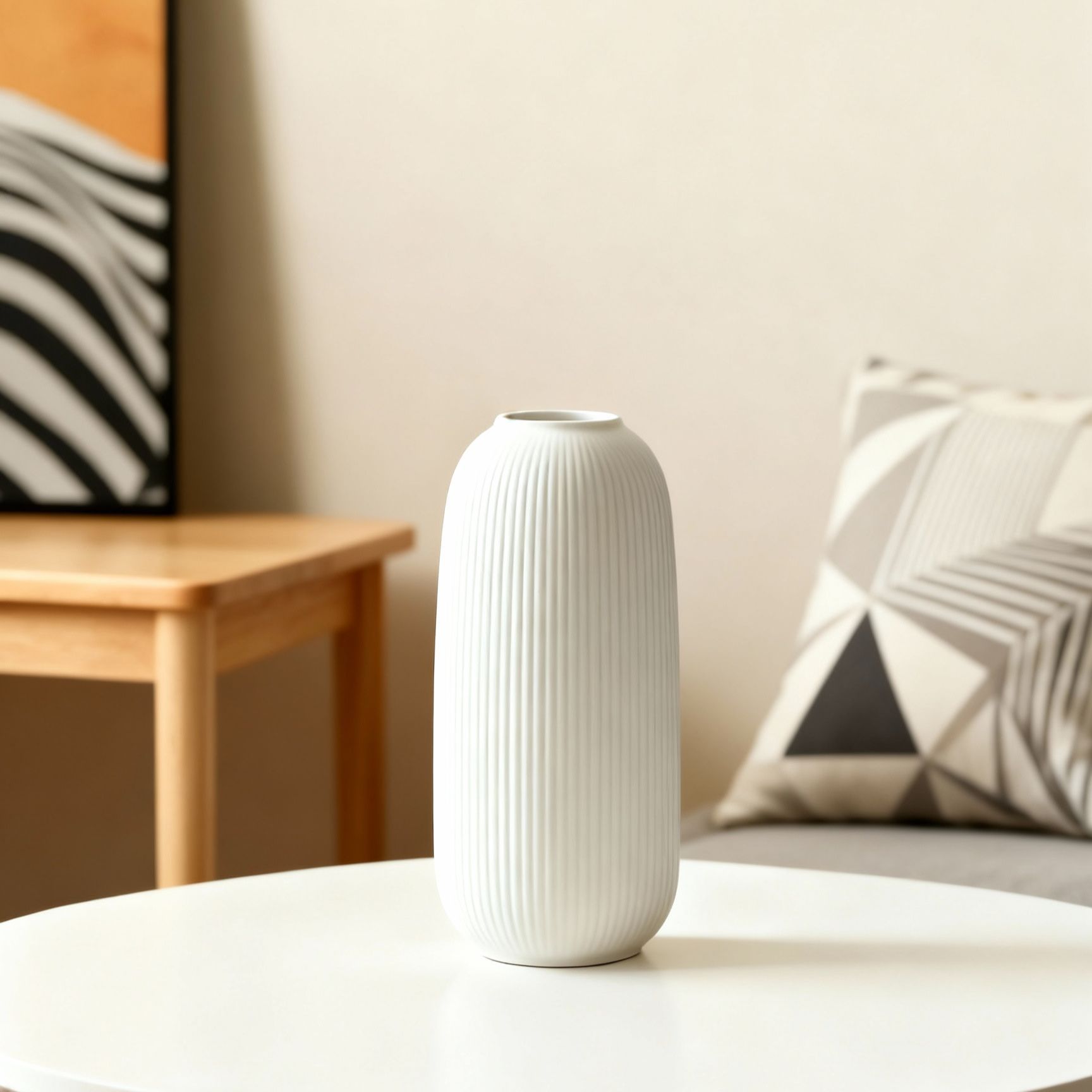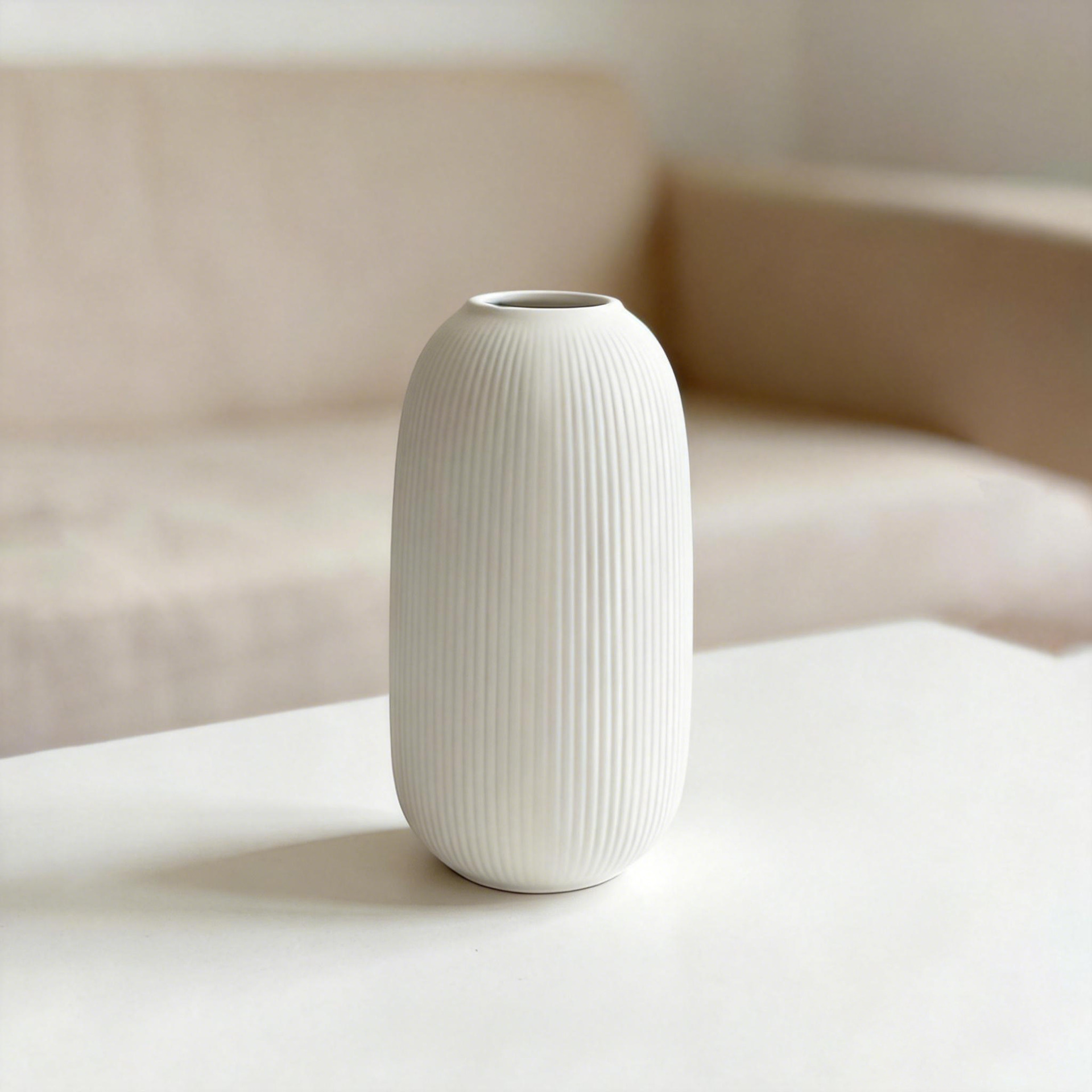 简约竖纹陶瓷花瓶现代简约高级感家用干花仿真花花器插花装饰摆件