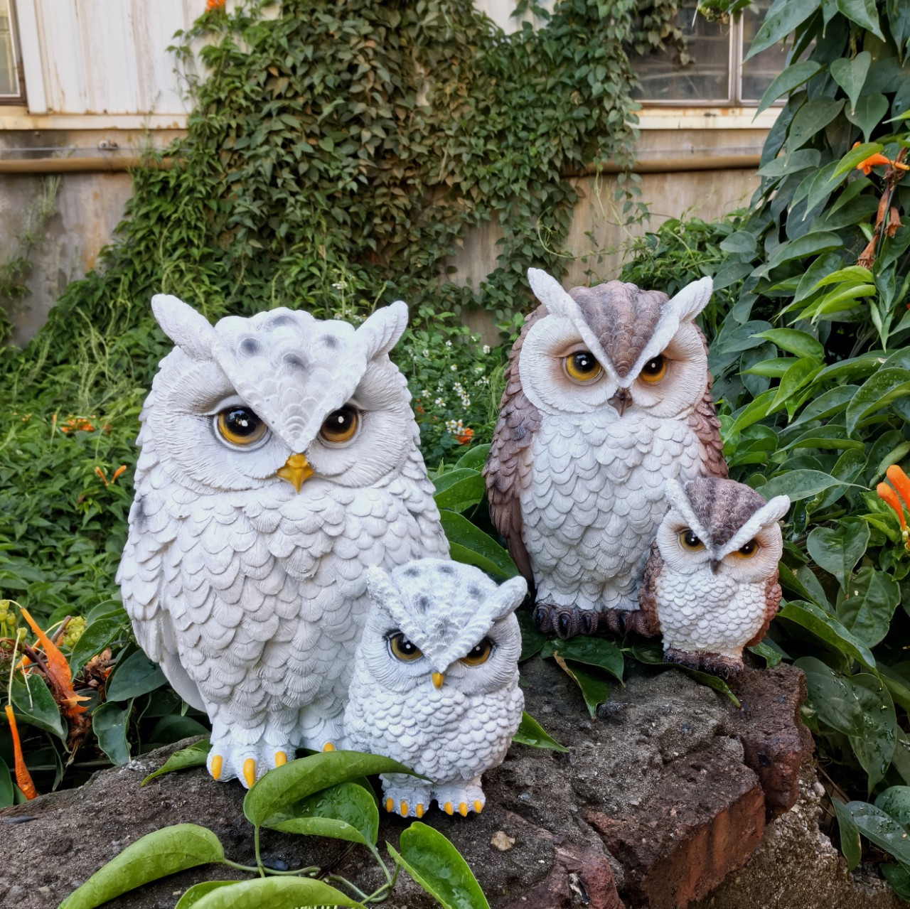 亚马逊仿真摆件户外走廊露台摆件院子园林创意可爱母子猫头鹰装饰