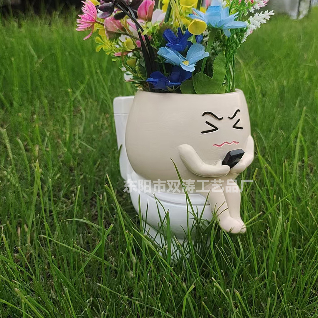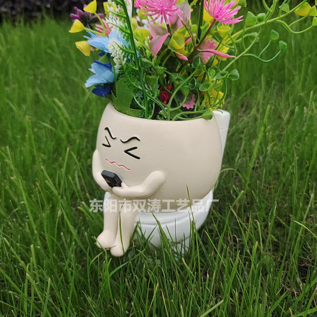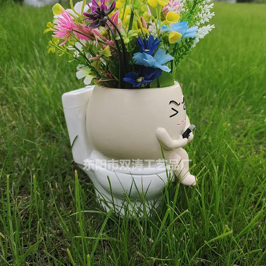 跨境创意新款坐马桶多肉花盆花园装饰摆件户外花盆庭院装饰品摆件