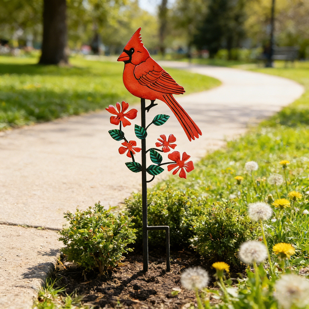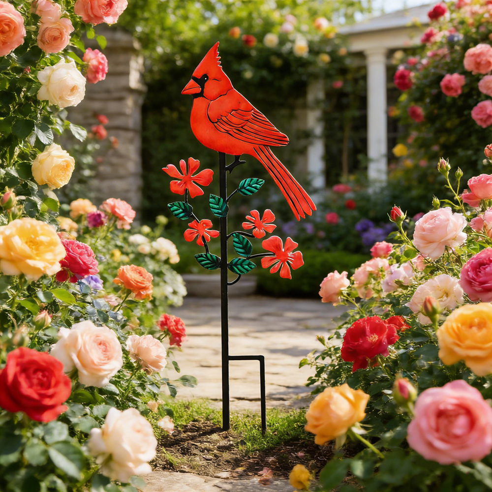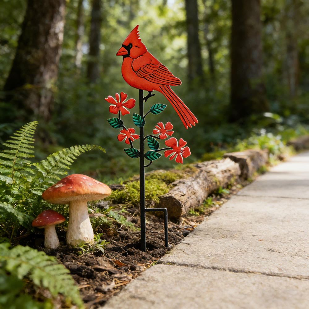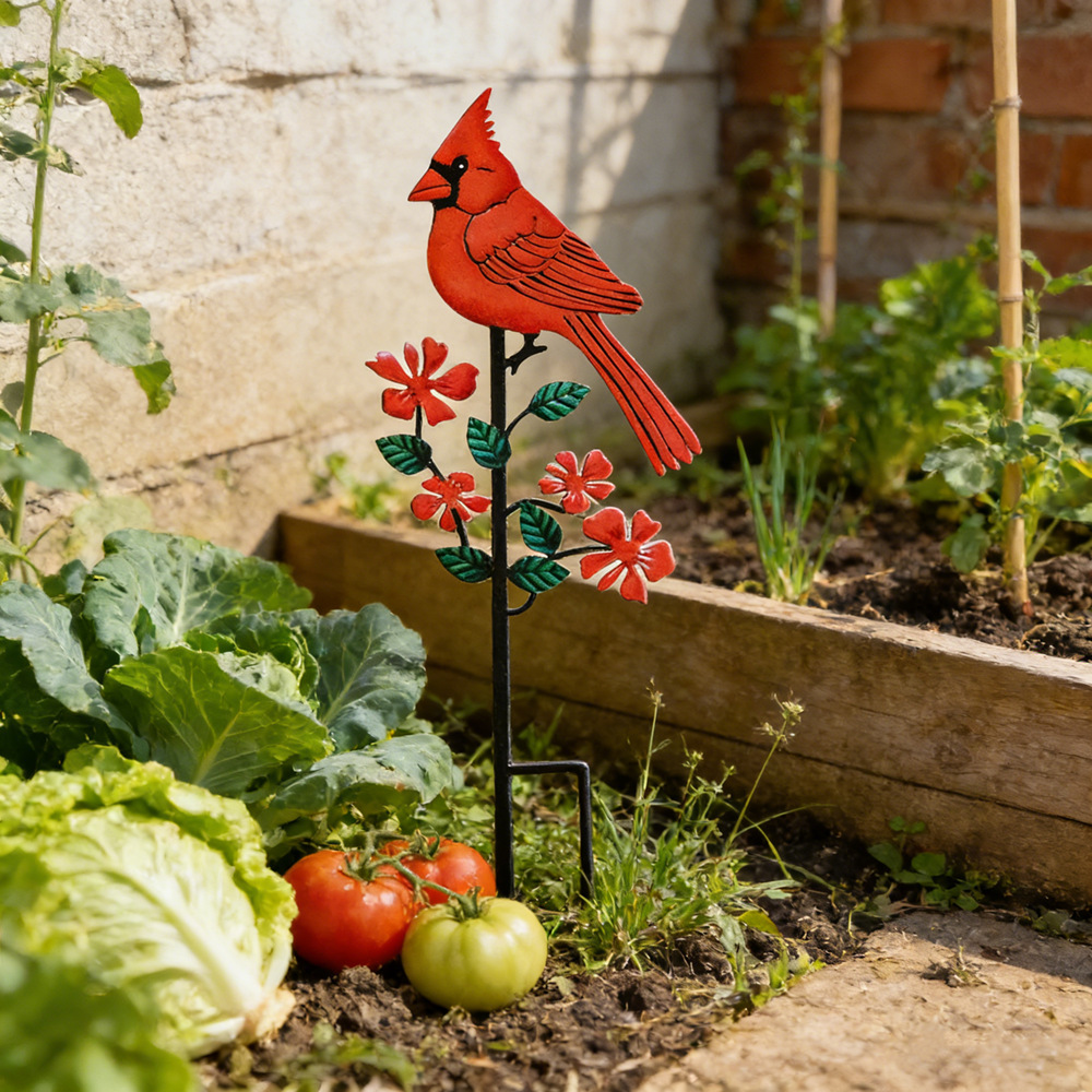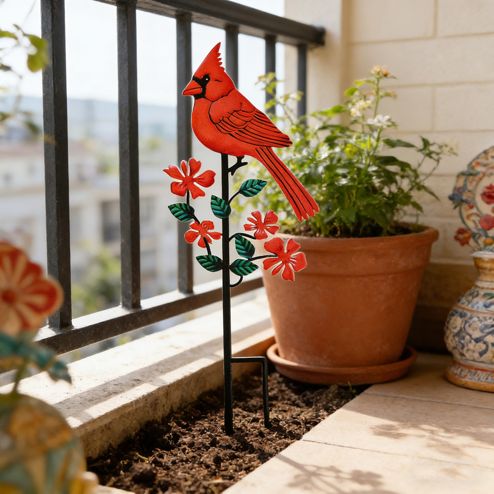 跨境爆款红衣鸟铁艺庭院地插金属工艺品花园标牌摆件地面装饰插件