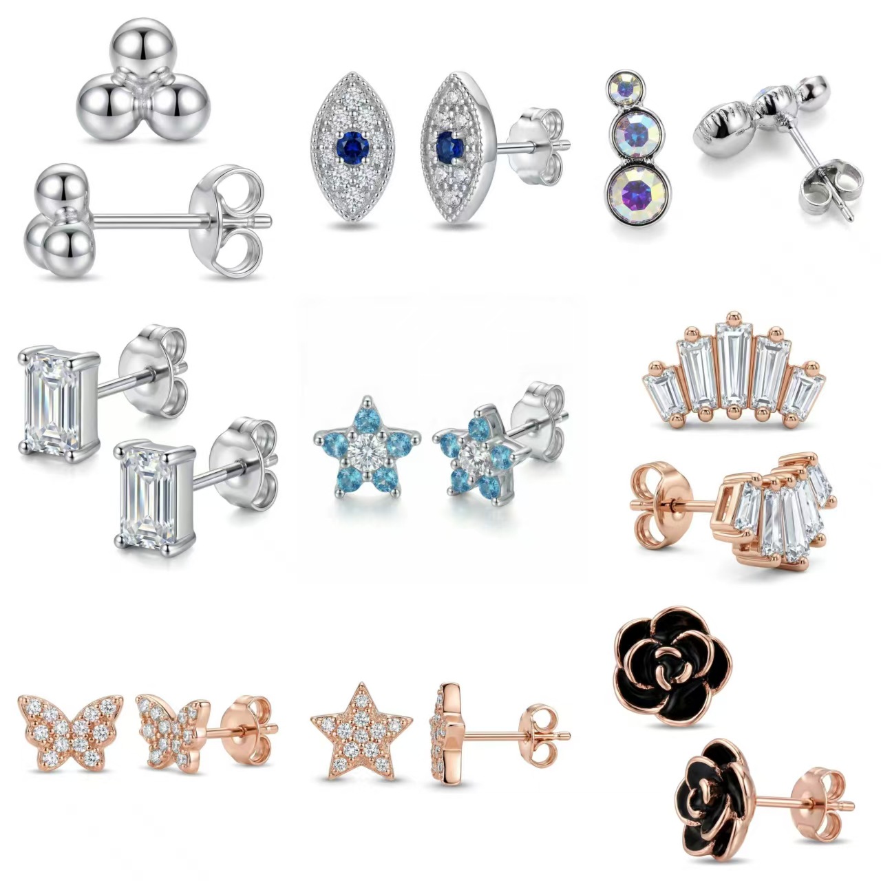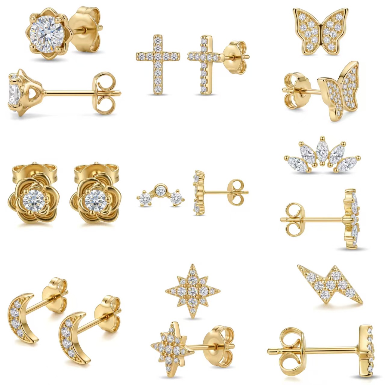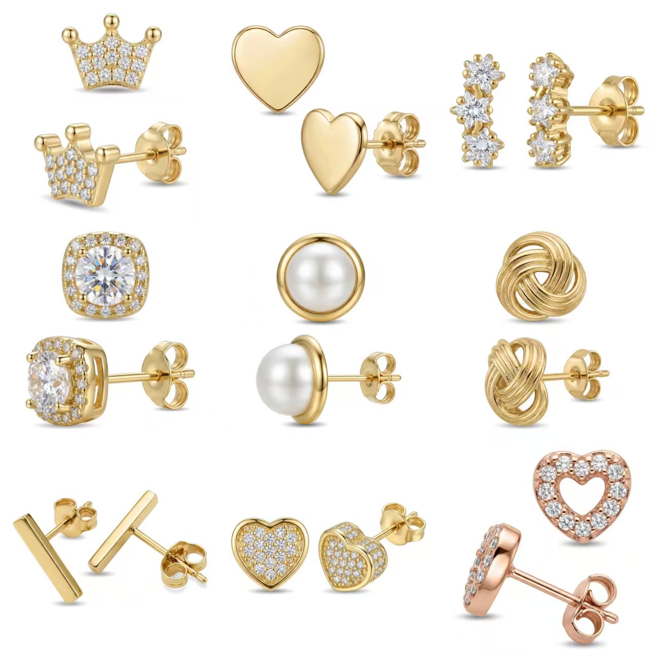 欧美铜材质微镶不规则几何形耳钉女ins时尚金属潮人耳环饰品
